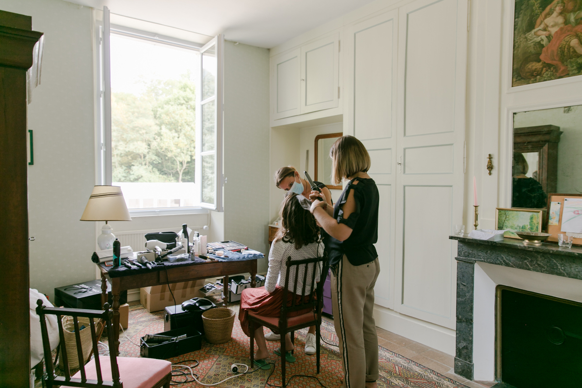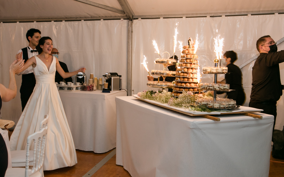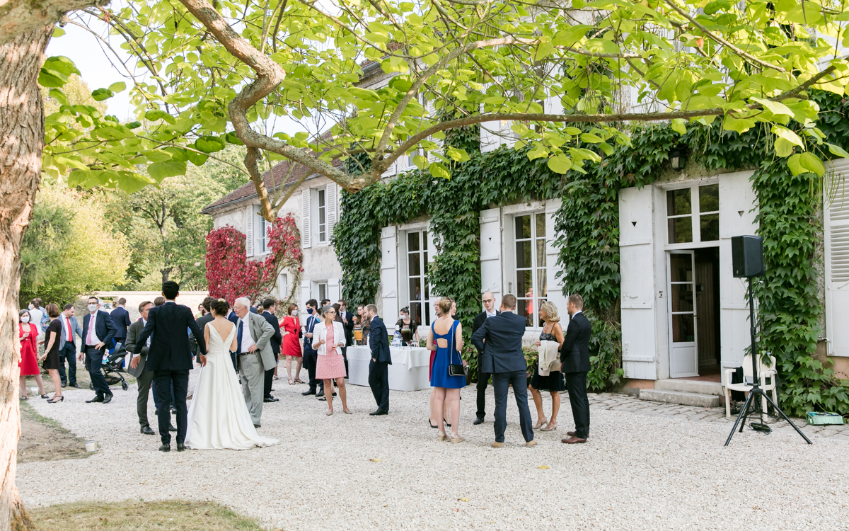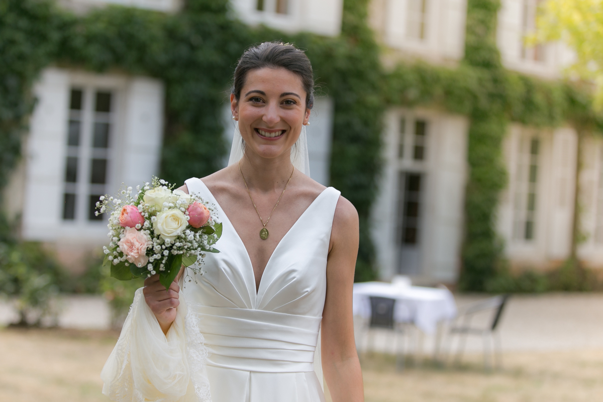 Ré-organiser tout leur mariage de A à Z, voilà le défi qu’ont dû relever Audrey & Guillaume, Covid et faillite du traiteur obligent … Reporter la date, trouver un nouveau lieu de réception, de nouveaux prestataires (mis à part la photographe 😉 ); bref, un tour de force qu’ils ont réussi haut la main avec l’aide de la tante de la mariée, Christine Nottin, responsable de Univers Events, et qui avait transformé la somptueuse propriété familiale en un lieu de réception de rêve.