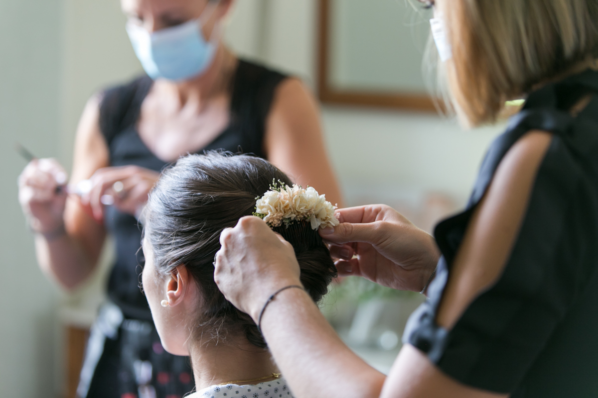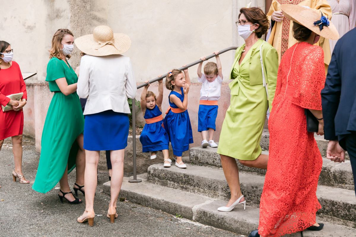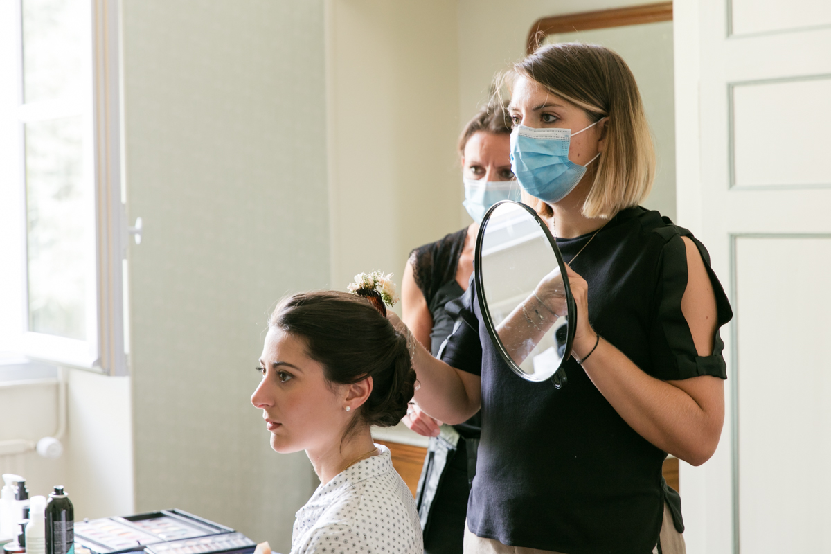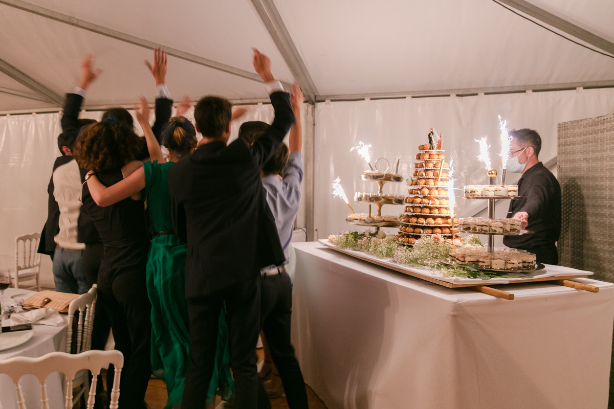 Ré-organiser tout leur mariage de A à Z, voilà le défi qu’ont dû relever Audrey & Guillaume, Covid et faillite du traiteur obligent … Reporter la date, trouver un nouveau lieu de réception, de nouveaux prestataires (mis à part la photographe 😉 ); bref, un tour de force qu’ils ont réussi haut la main avec l’aide de la tante de la mariée, Christine Nottin, responsable de Univers Events, et qui avait transformé la somptueuse propriété familiale en un lieu de réception de rêve.