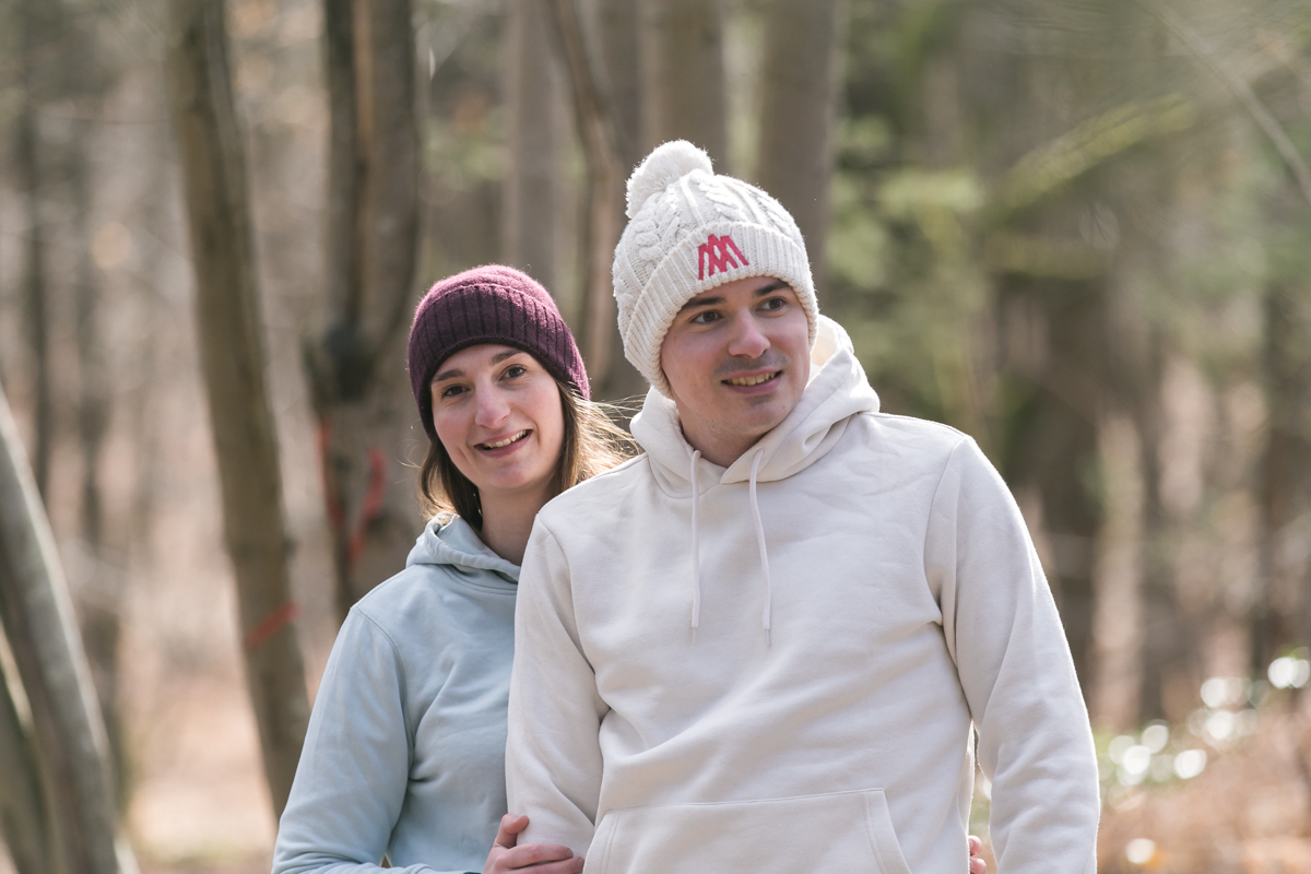 La neige n’était peut-être pas au rendez-vous comme les futurs mariés l’avaient souhaité initialement, mais le froid était bel et bien là en cette belle matinée hivernale. Les bonnets et chapkas qu’ils avaient apportés en clin d’œil à leur demande en mariage en Laponie étaient donc très utiles!