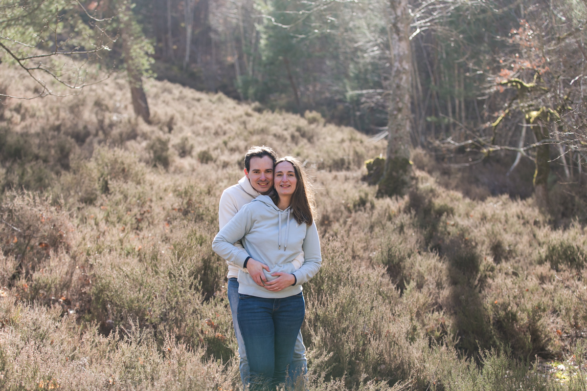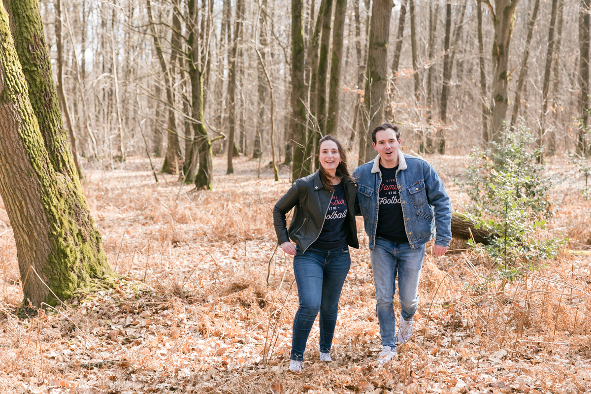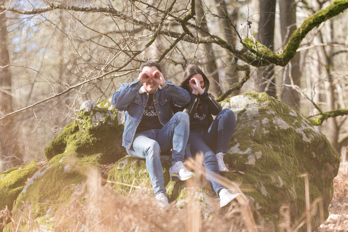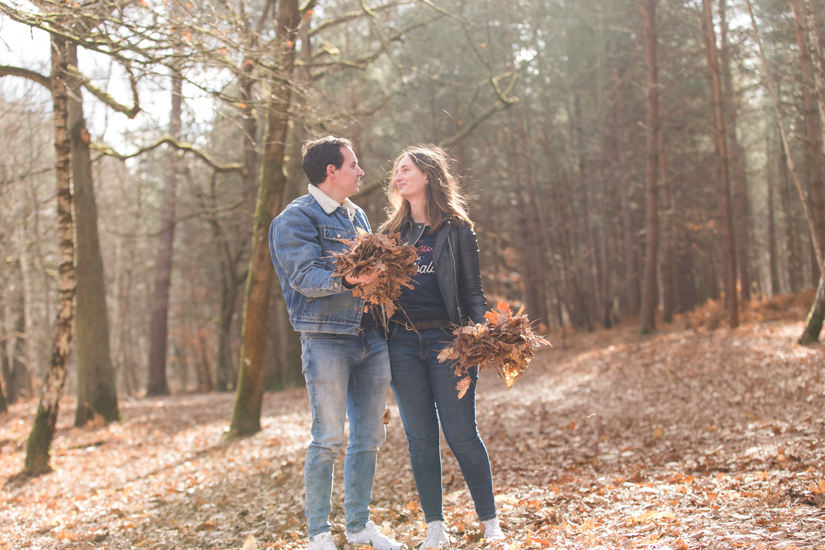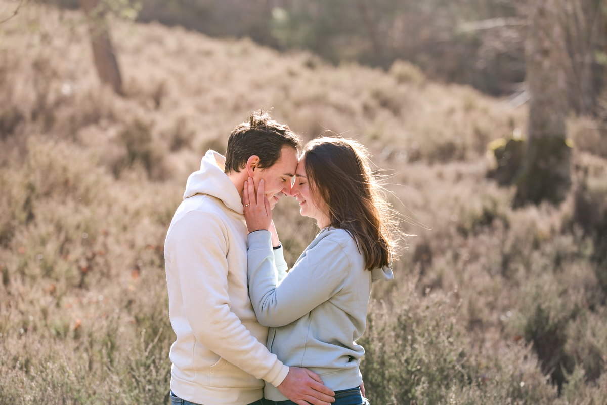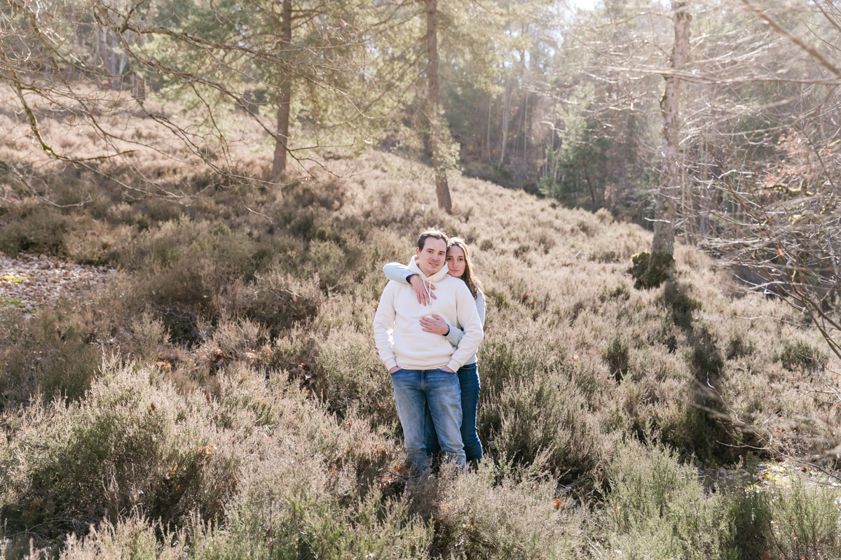 À quelques mois de leur mariage seulement, nous sous sommes donné rendez-vous dans la jolie forêt de La Roche Turpin pour une chouette balade à travers les fougères et la bruyère, dont les couleurs réchauffaient le paysage. Très rapidement la confiance s’est installée, leur spontanéité et espièglerie malgré le grand froid ont fait le reste!