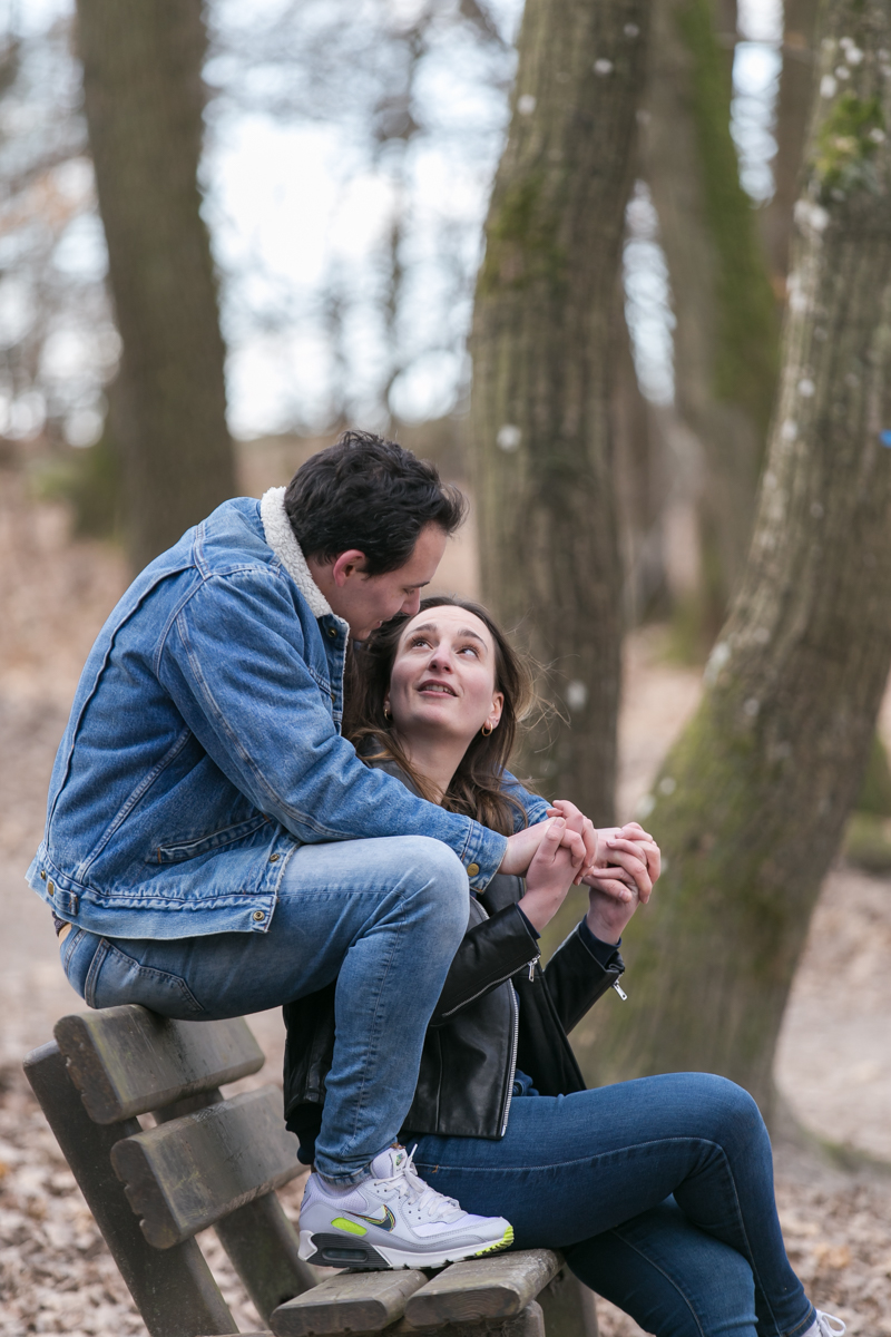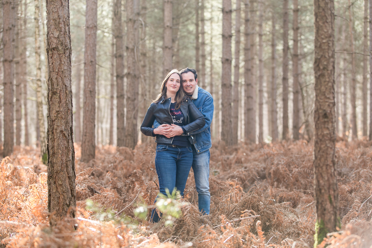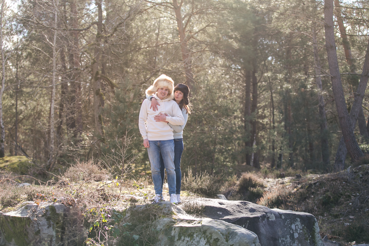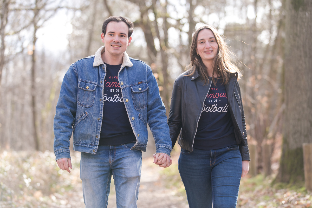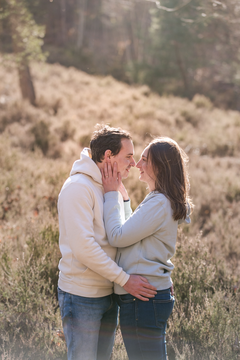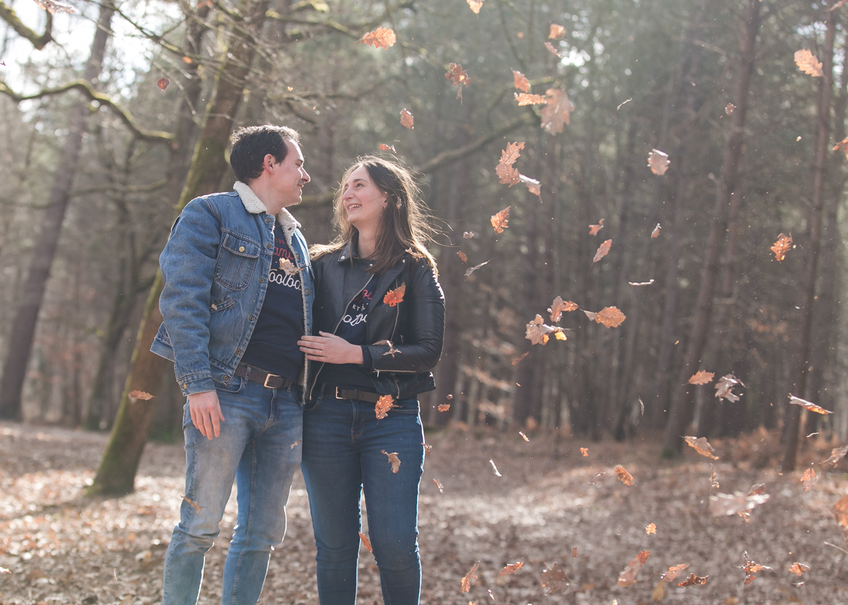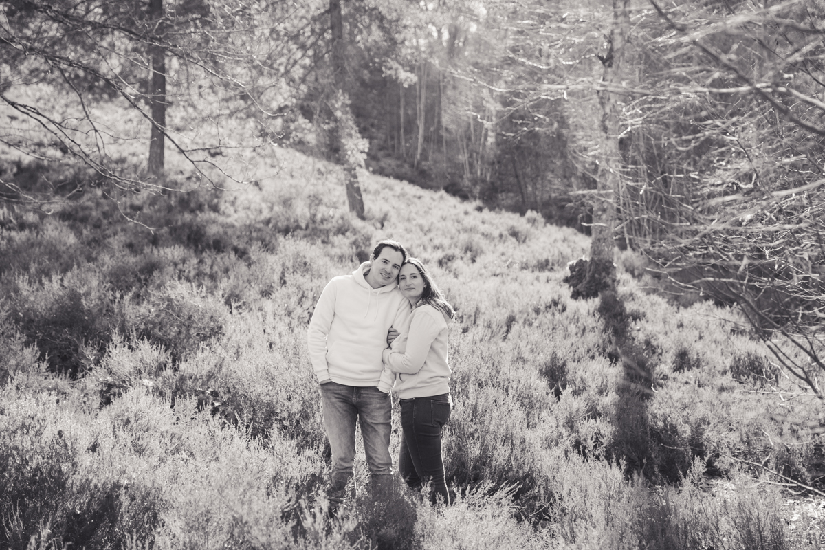 À quelques mois de leur mariage seulement, nous sous sommes donné rendez-vous dans la jolie forêt de La Roche Turpin pour une chouette balade à travers les fougères et la bruyère, dont les couleurs réchauffaient le paysage. Très rapidement la confiance s’est installée, leur spontanéité et espièglerie malgré le grand froid ont fait le reste!