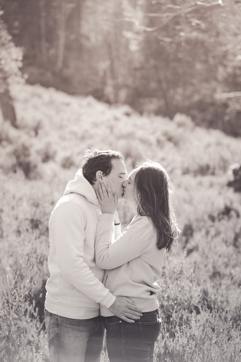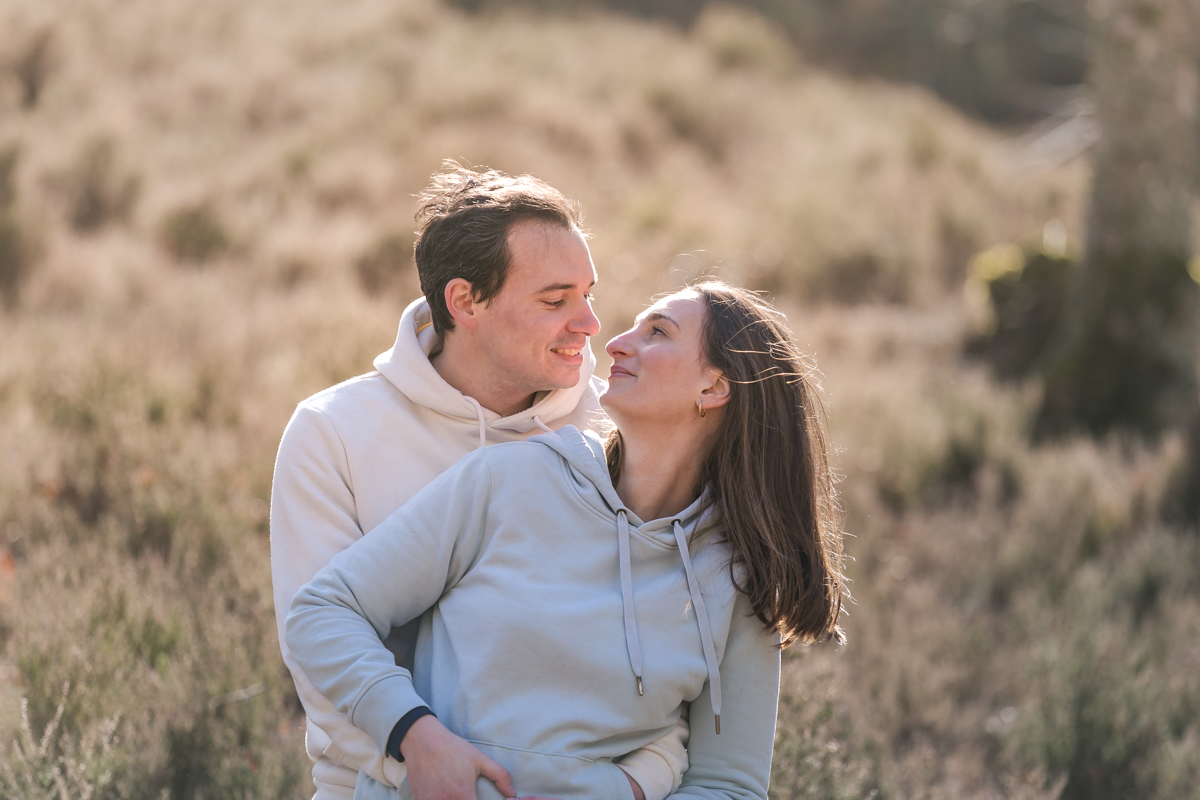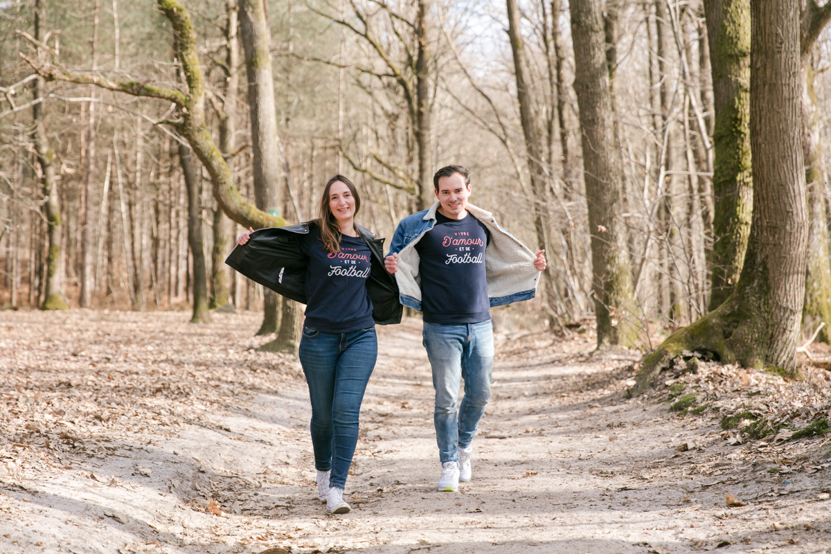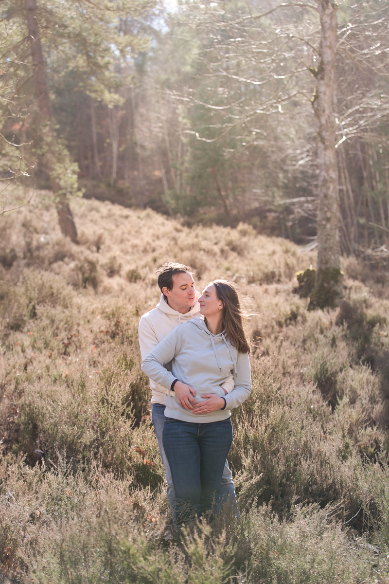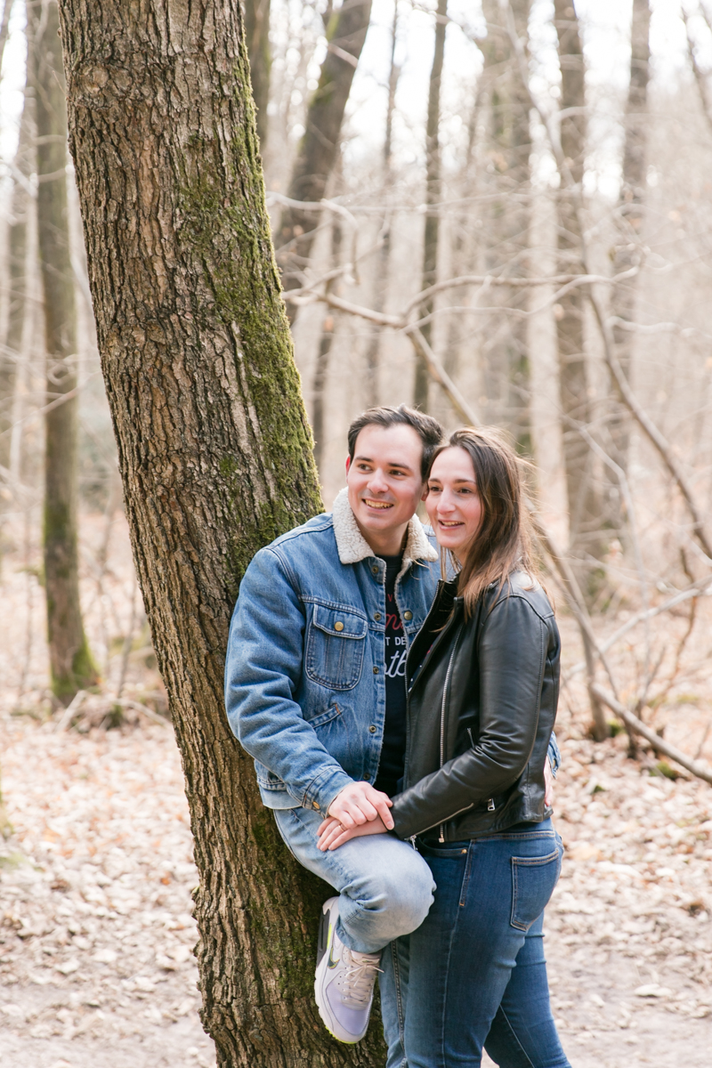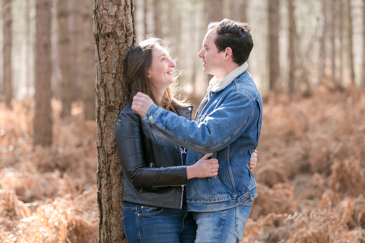 À quelques mois de leur mariage seulement, nous sous sommes donné rendez-vous dans la jolie forêt de La Roche Turpin pour une chouette balade à travers les fougères et la bruyère, dont les couleurs réchauffaient le paysage. Très rapidement la confiance s’est installée, leur spontanéité et espièglerie malgré le grand froid ont fait le reste!