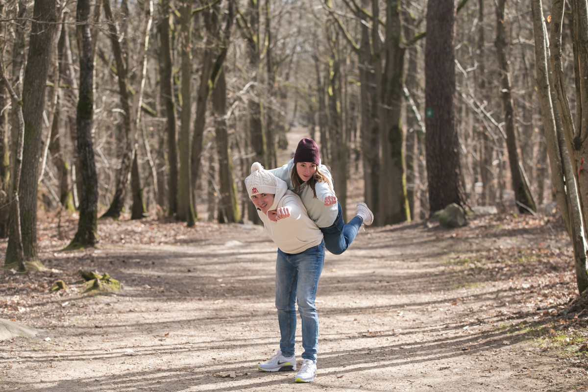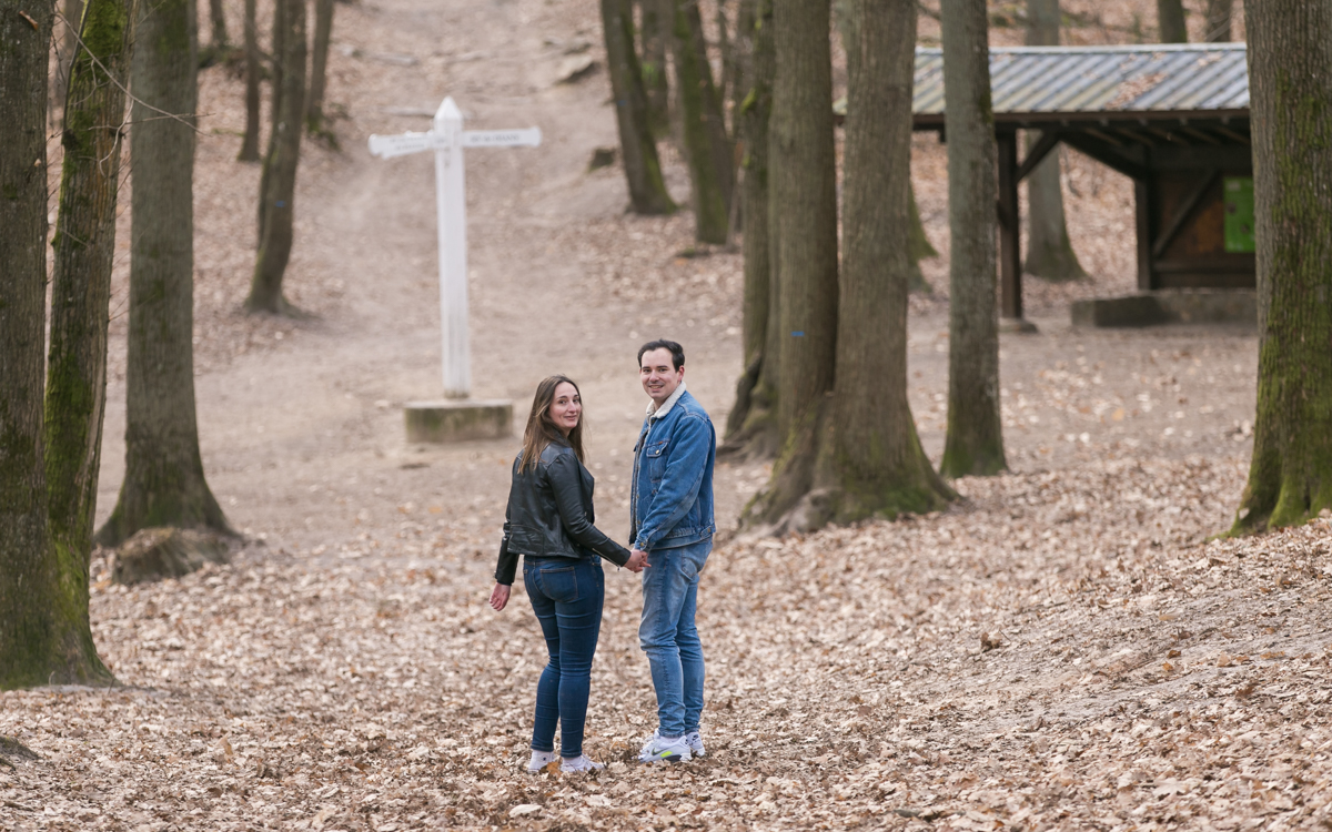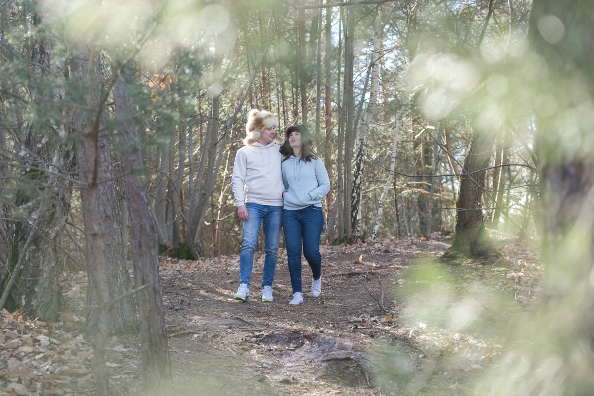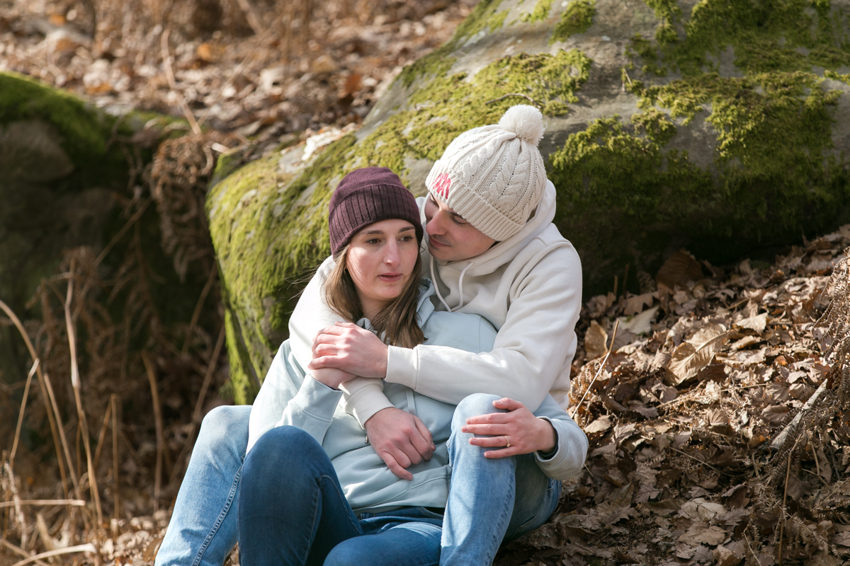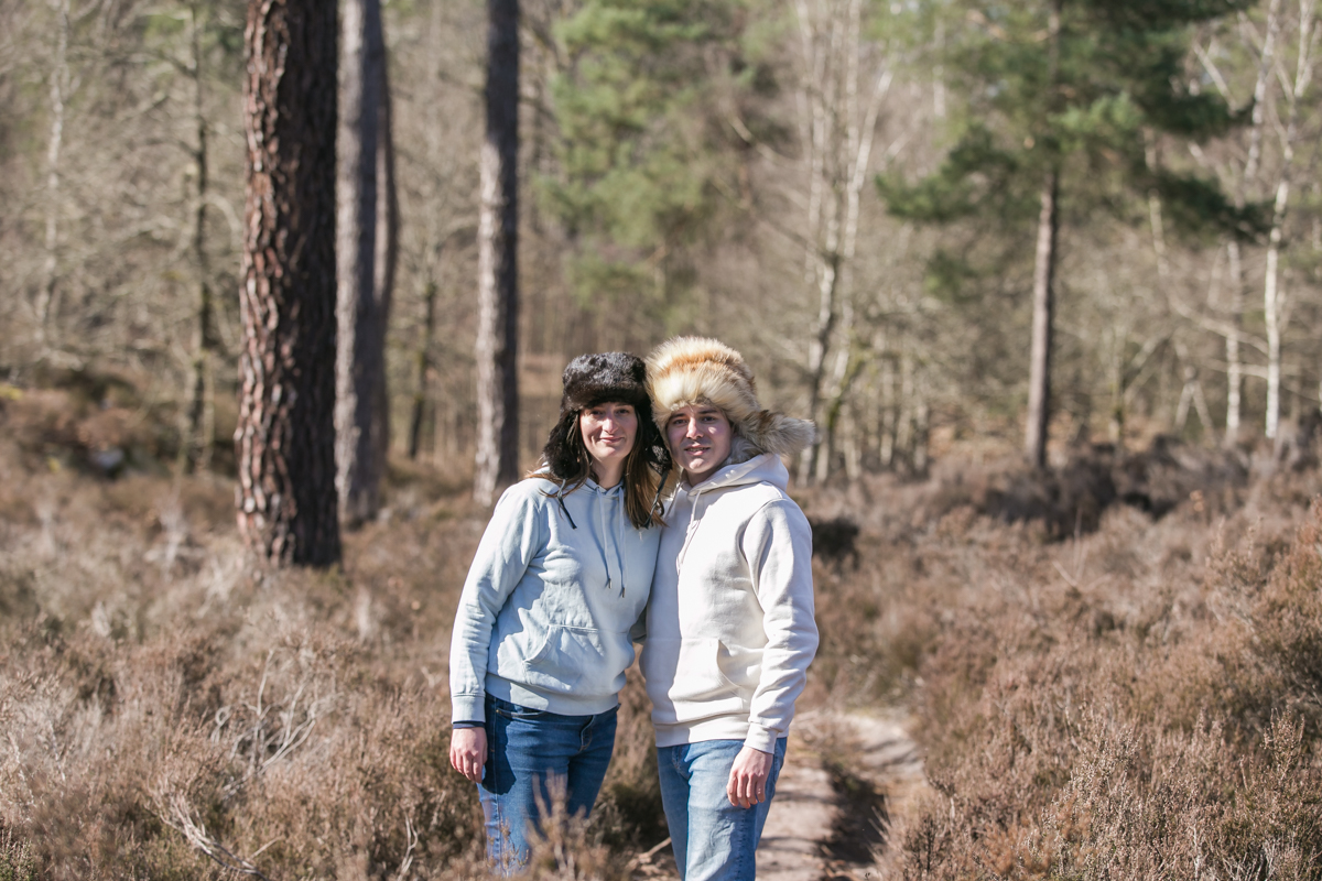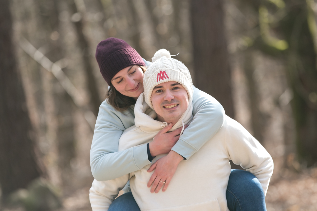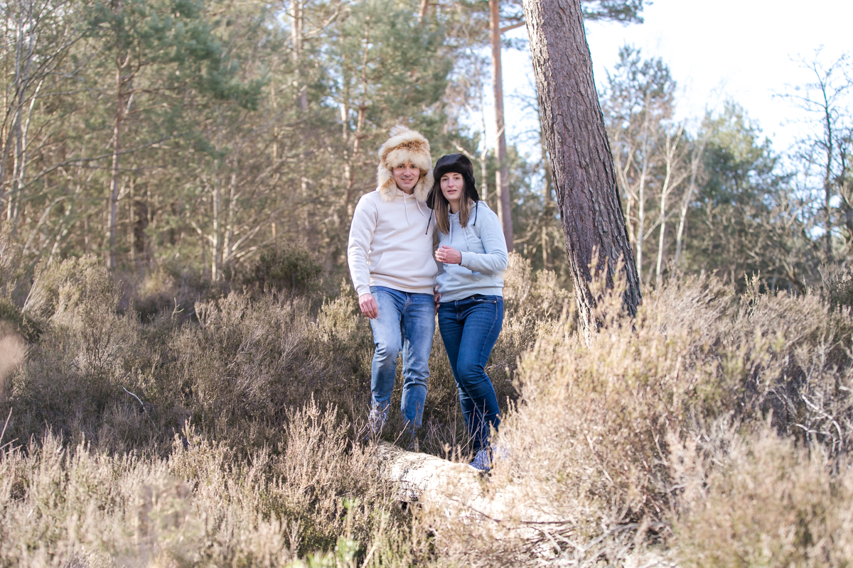 À quelques mois de leur mariage seulement, nous sous sommes donné rendez-vous dans la jolie forêt de La Roche Turpin pour une chouette balade à travers les fougères et la bruyère, dont les couleurs réchauffaient le paysage. Très rapidement la confiance s’est installée, leur spontanéité et espièglerie malgré le grand froid ont fait le reste!