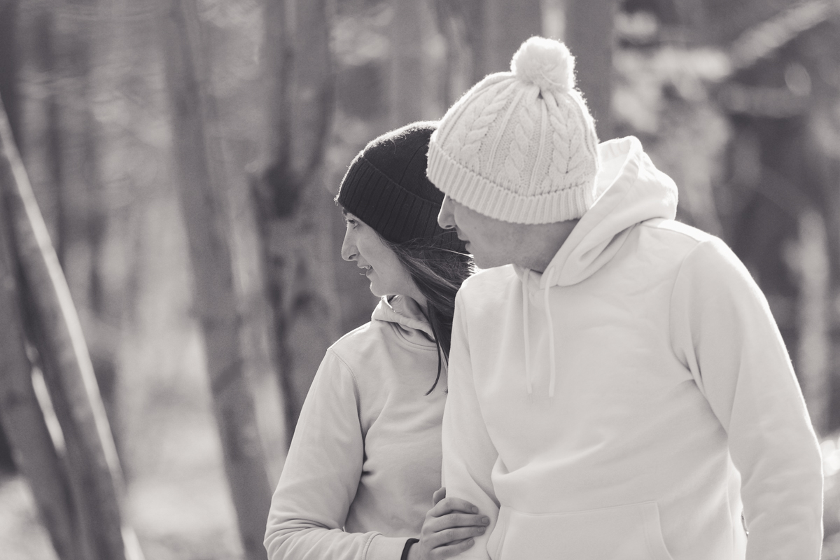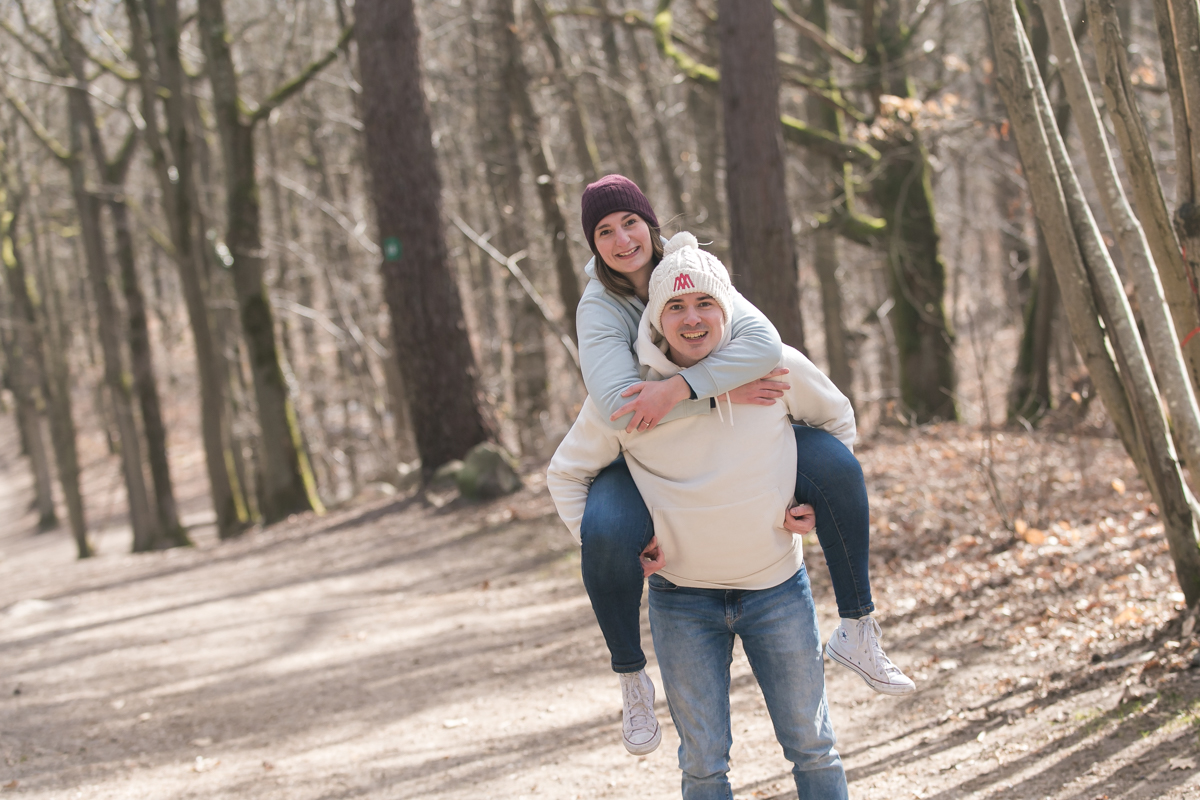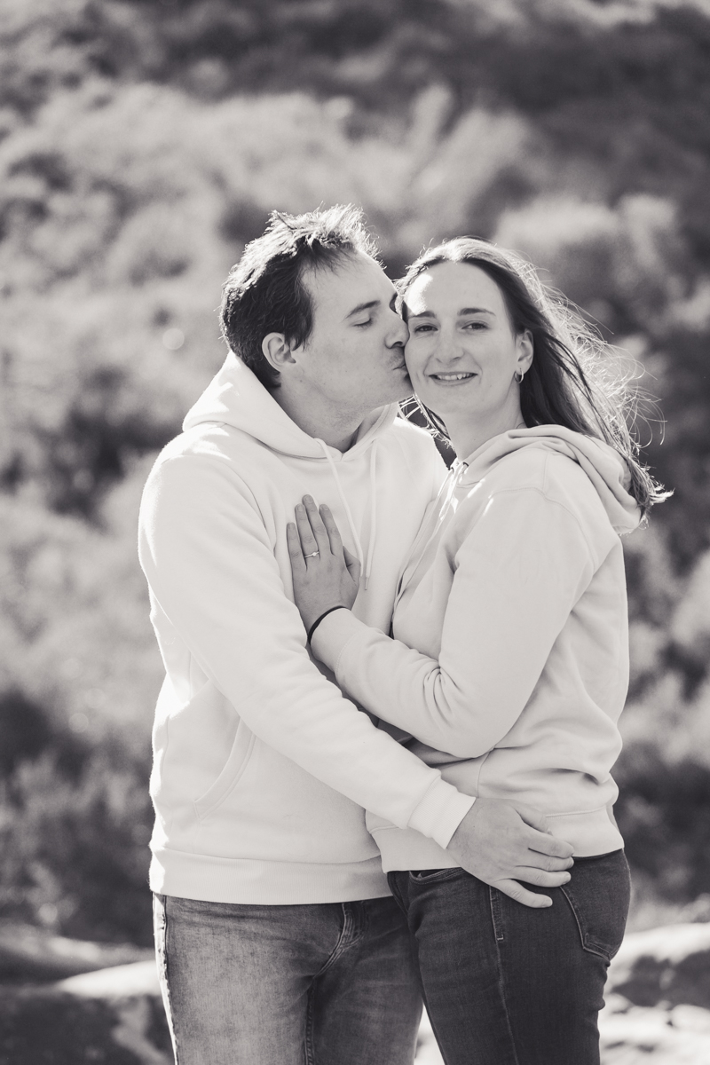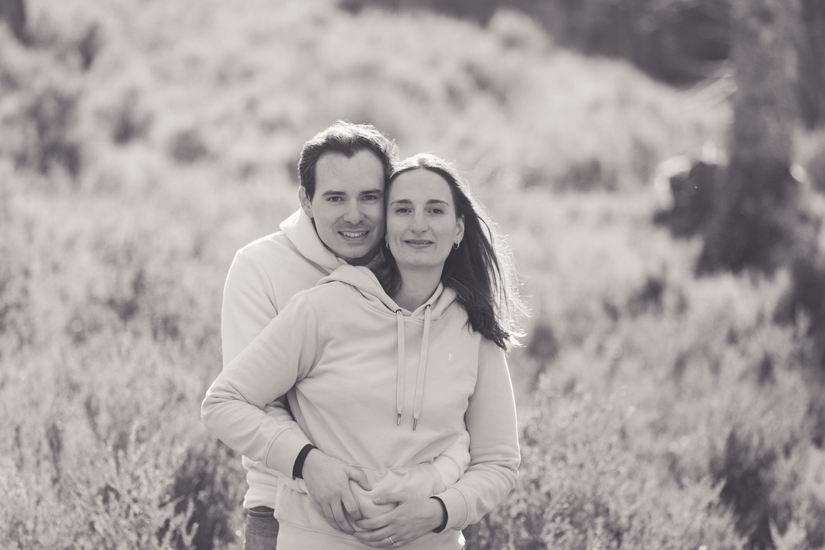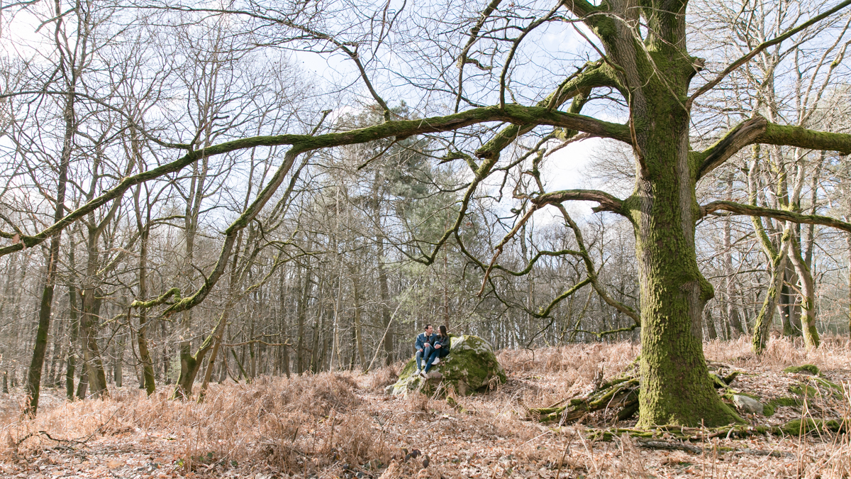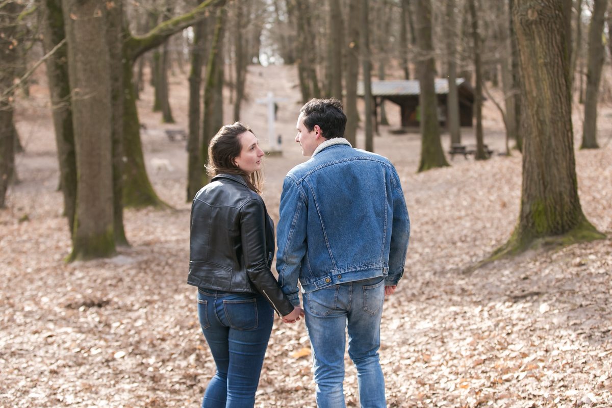 À quelques mois de leur mariage seulement, nous sous sommes donné rendez-vous dans la jolie forêt de La Roche Turpin pour une chouette balade à travers les fougères et la bruyère, dont les couleurs réchauffaient le paysage. Très rapidement la confiance s’est installée, leur spontanéité et espièglerie malgré le grand froid ont fait le reste!