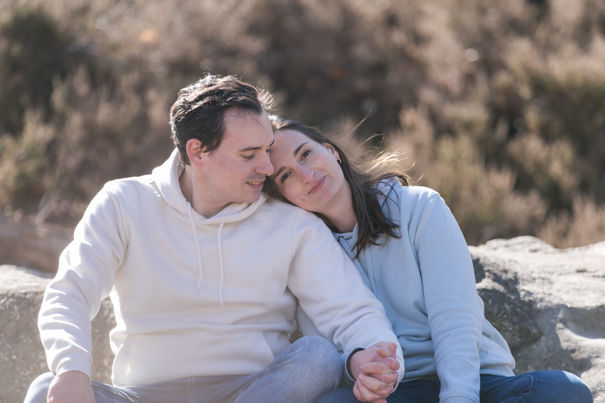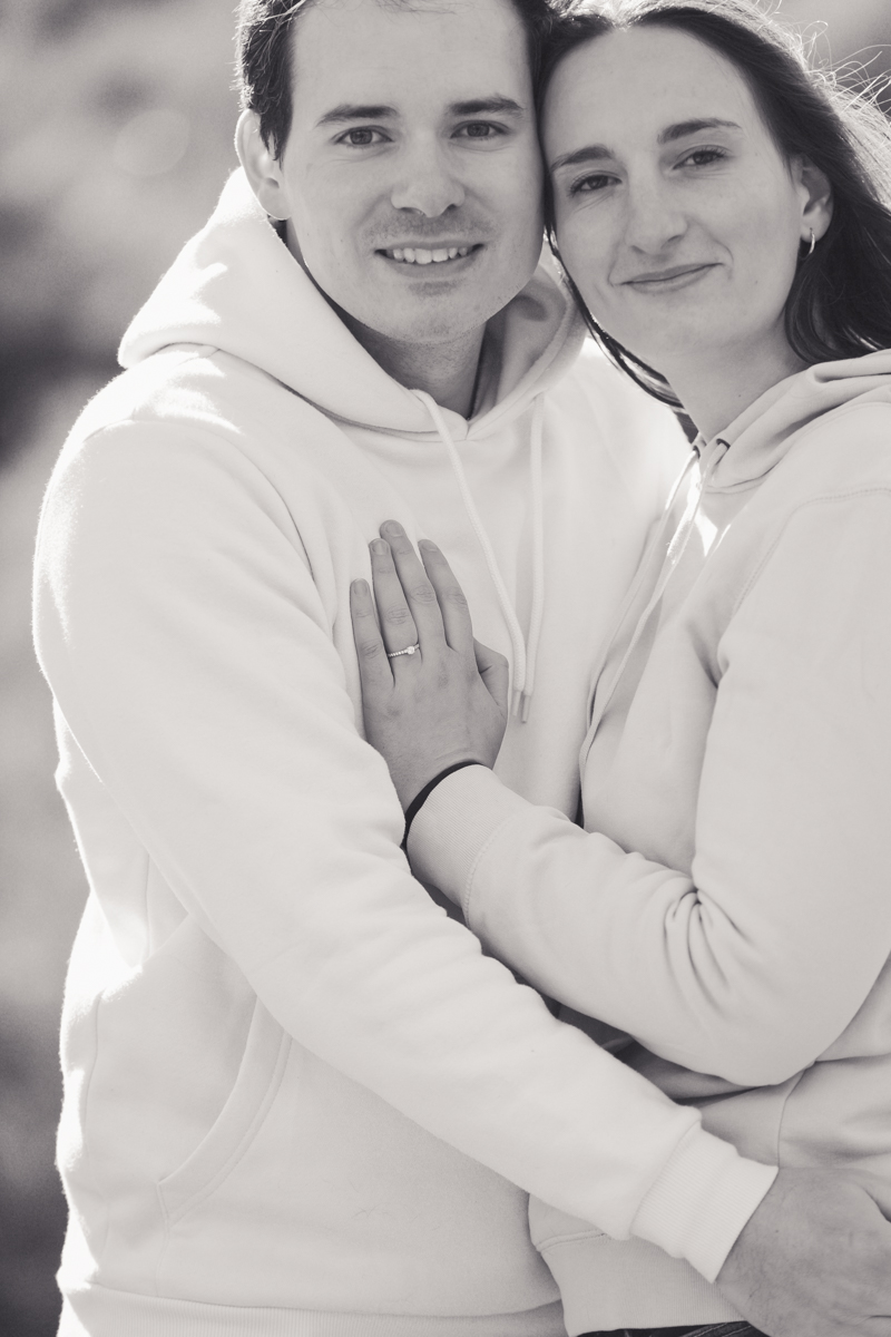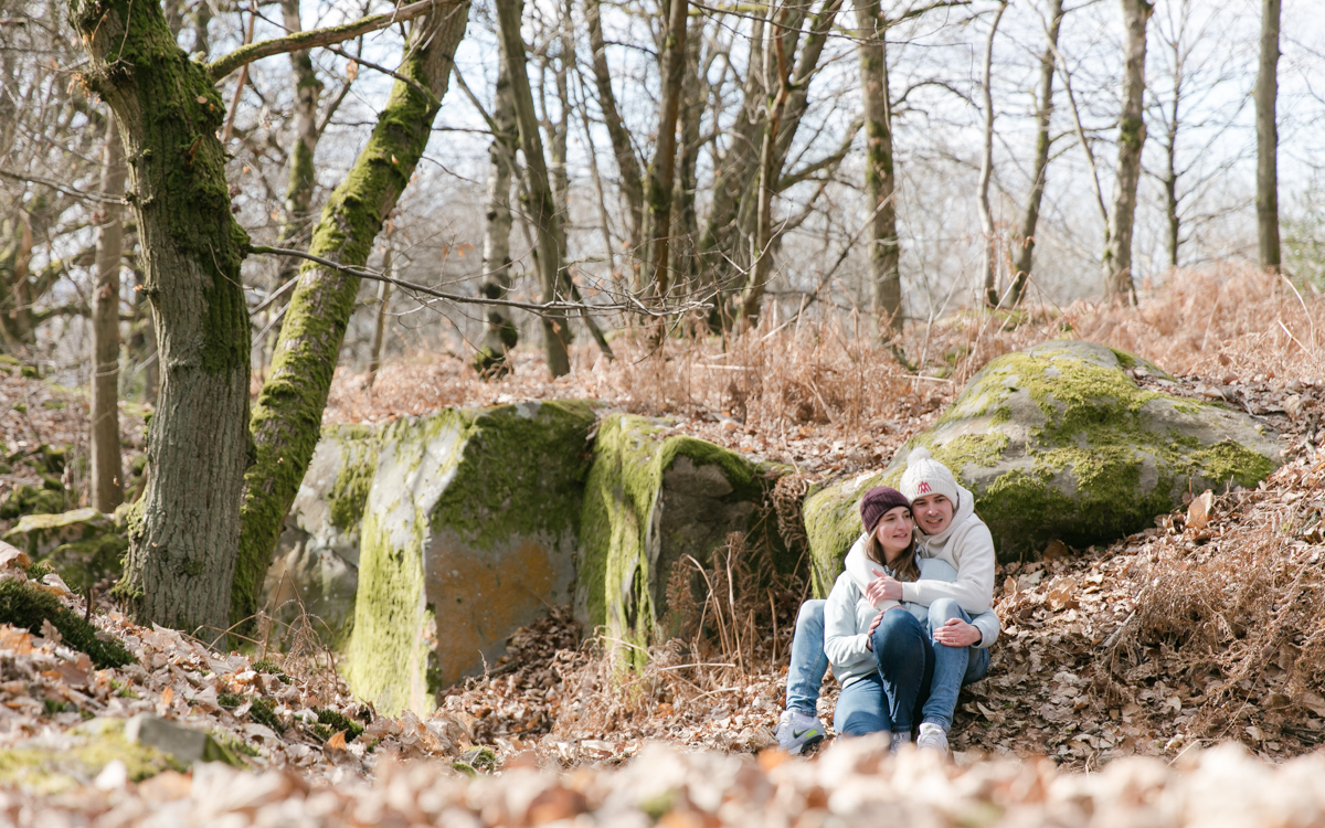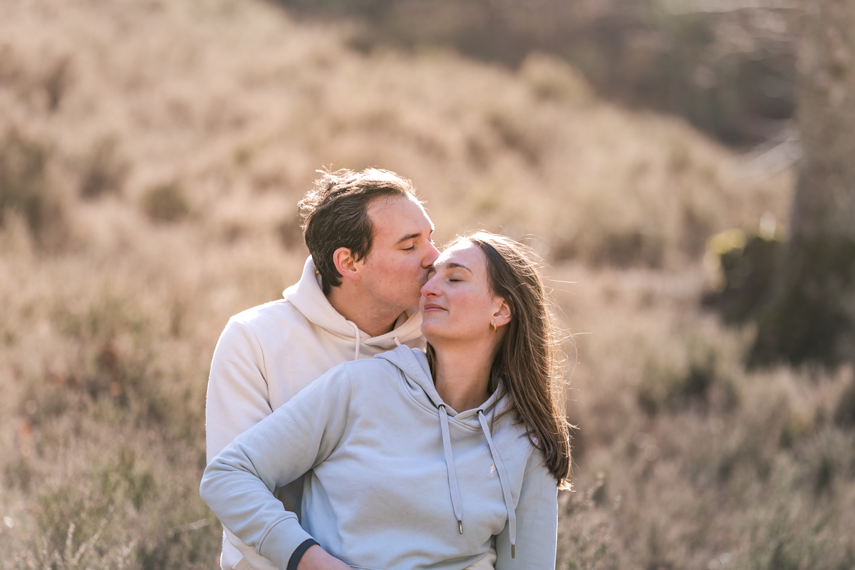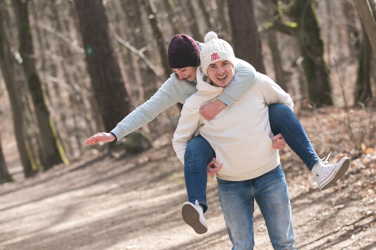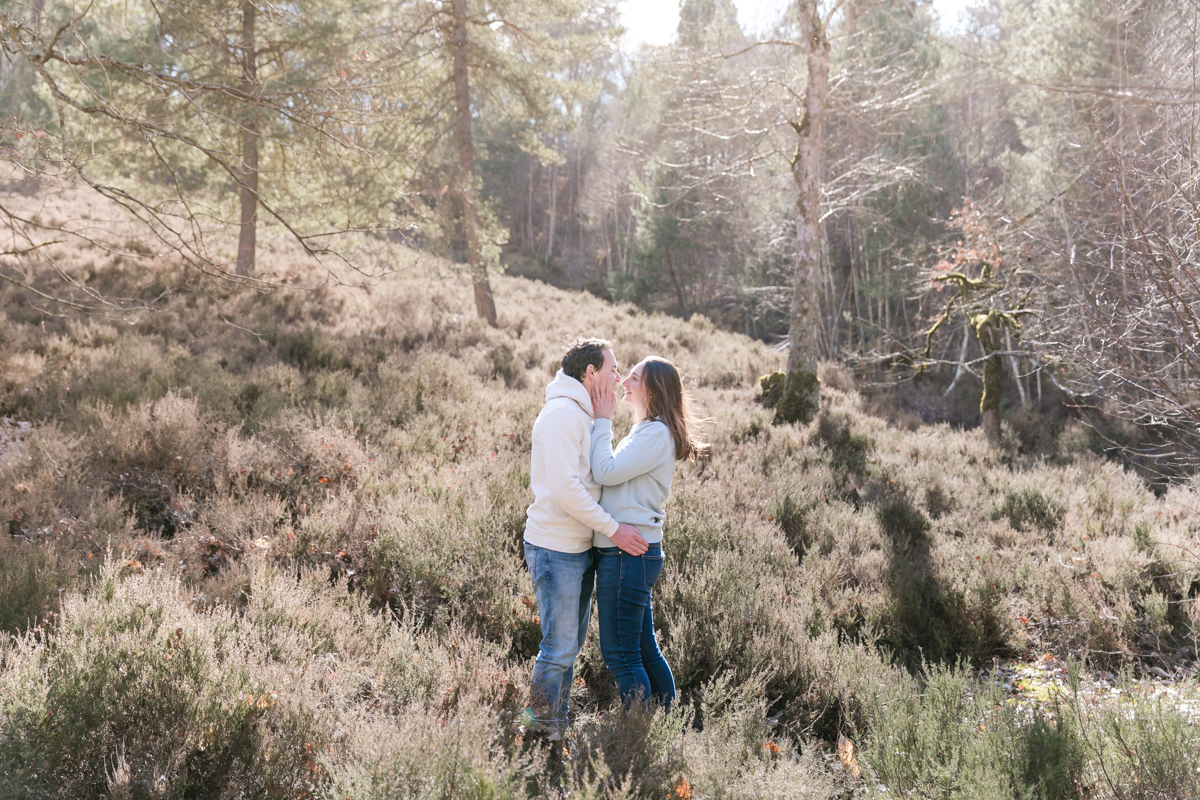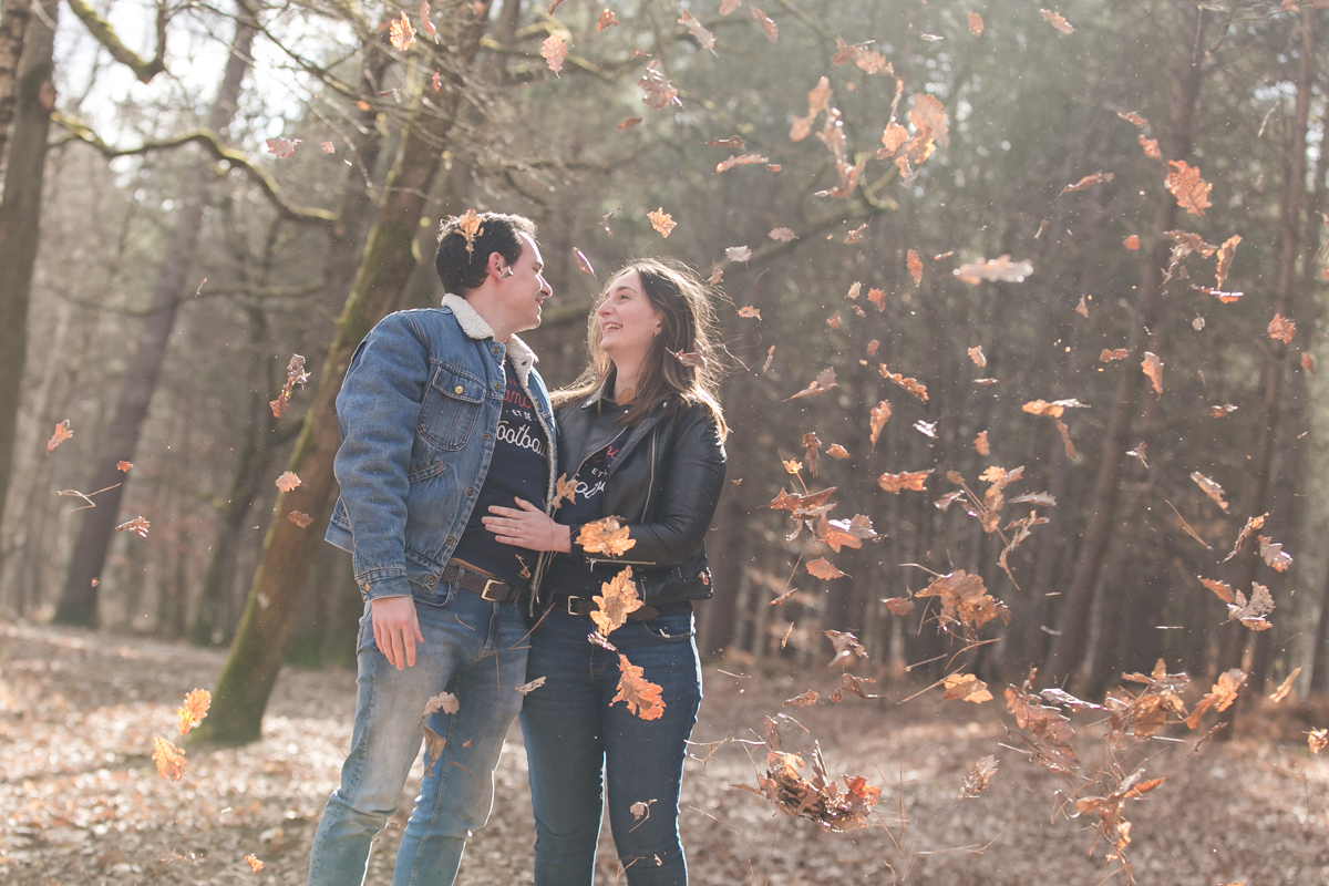 À quelques mois de leur mariage seulement, nous sous sommes donné rendez-vous dans la jolie forêt de La Roche Turpin pour une chouette balade à travers les fougères et la bruyère, dont les couleurs réchauffaient le paysage. Très rapidement la confiance s’est installée, leur spontanéité et espièglerie malgré le grand froid ont fait le reste!