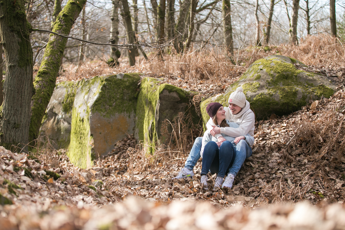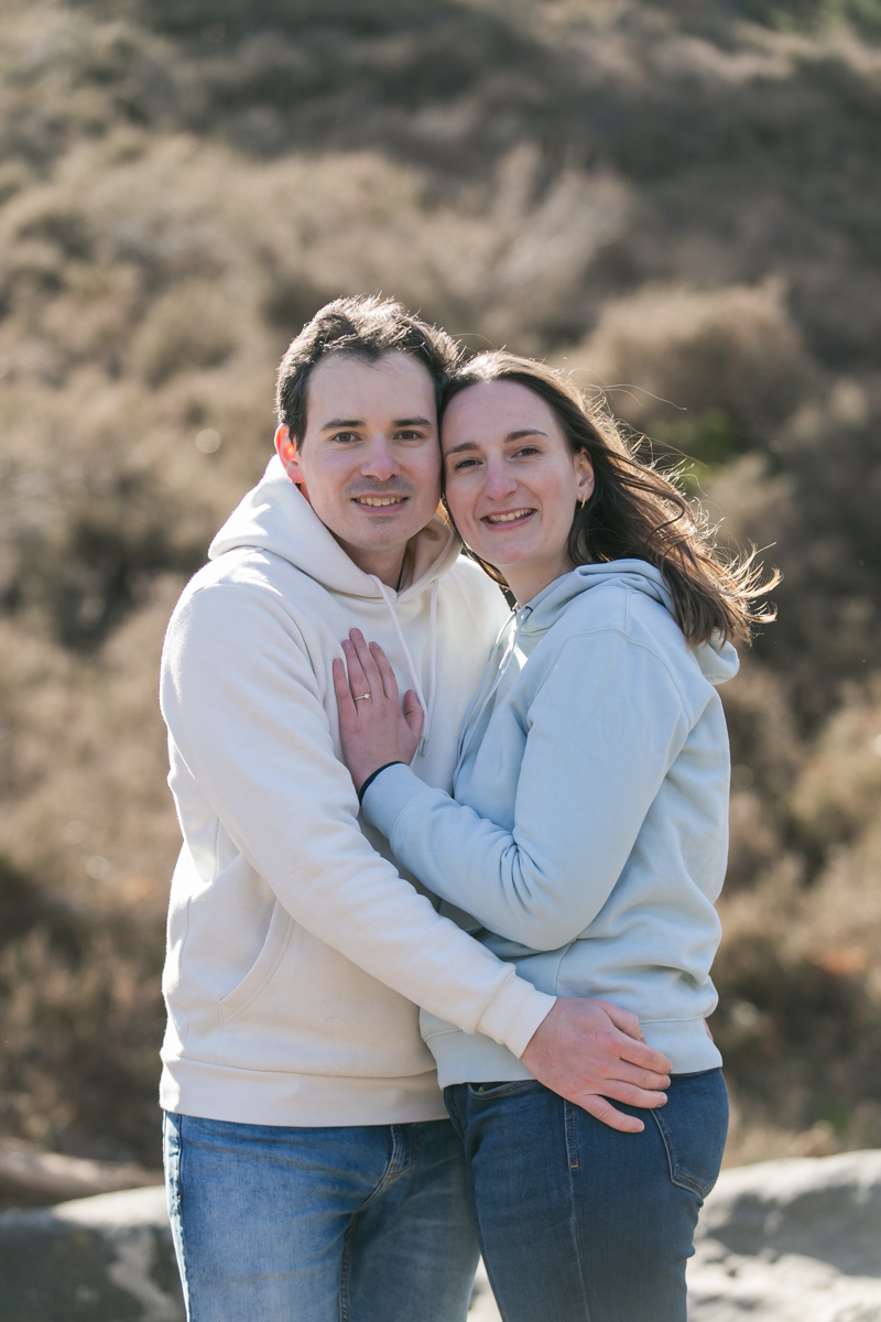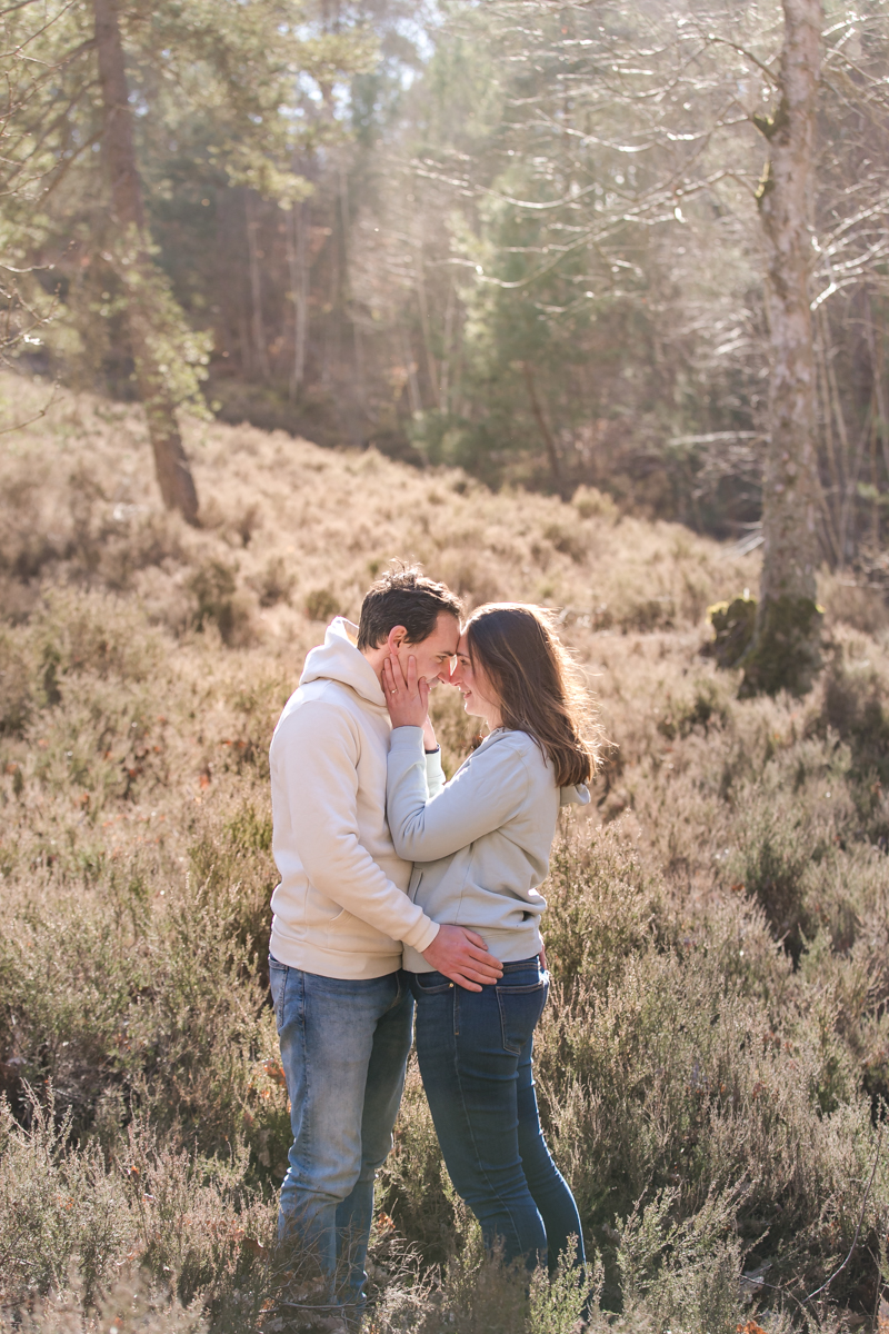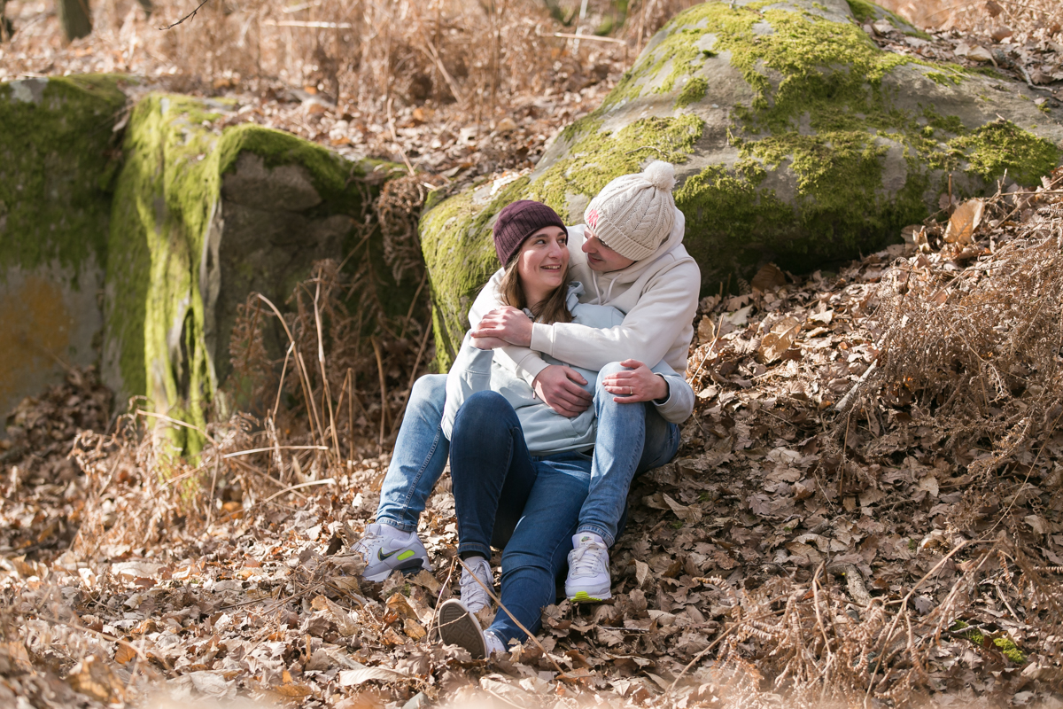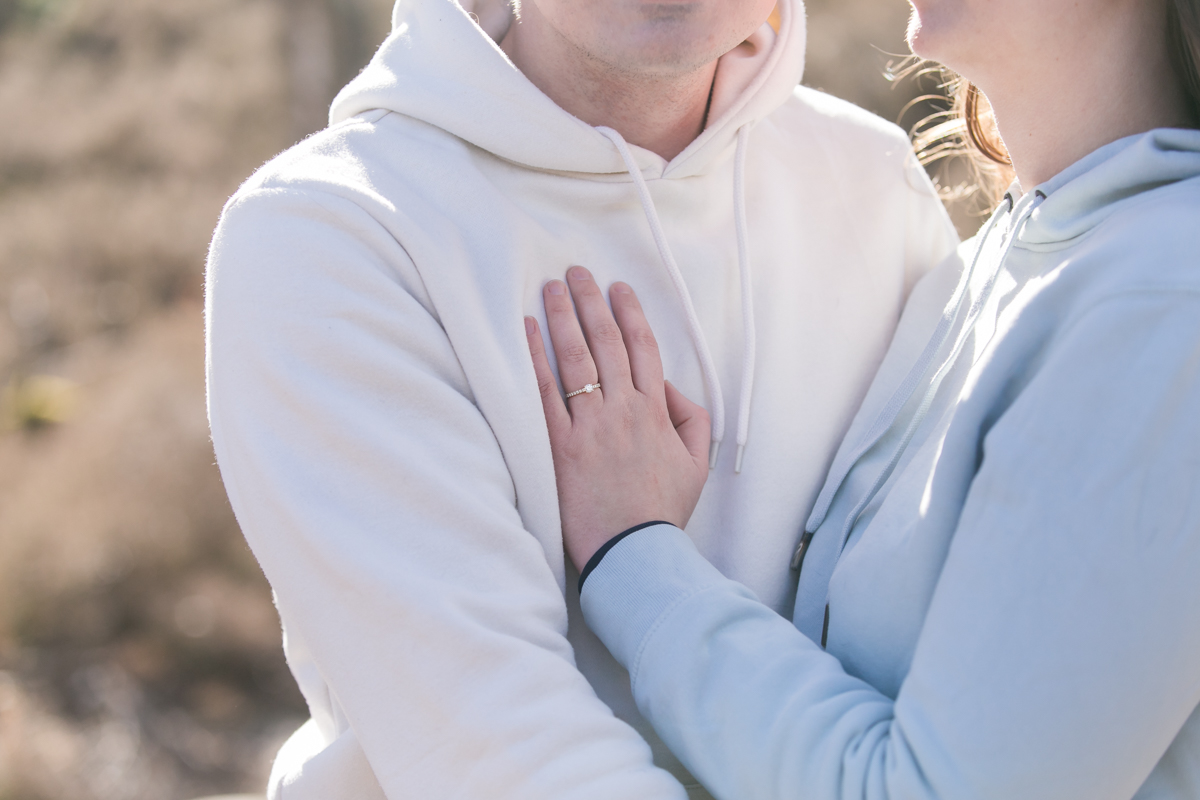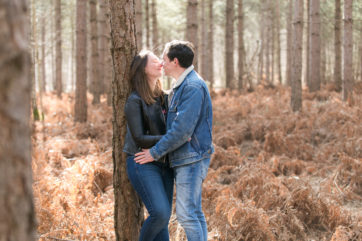 À quelques mois de leur mariage seulement, nous sous sommes donné rendez-vous dans la jolie forêt de La Roche Turpin pour une chouette balade à travers les fougères et la bruyère, dont les couleurs réchauffaient le paysage. Très rapidement la confiance s’est installée, leur spontanéité et espièglerie malgré le grand froid ont fait le reste!