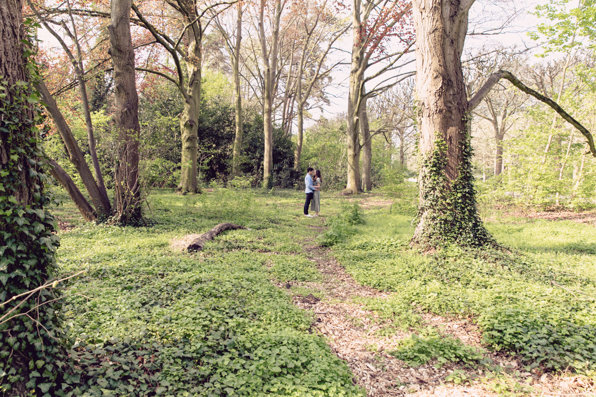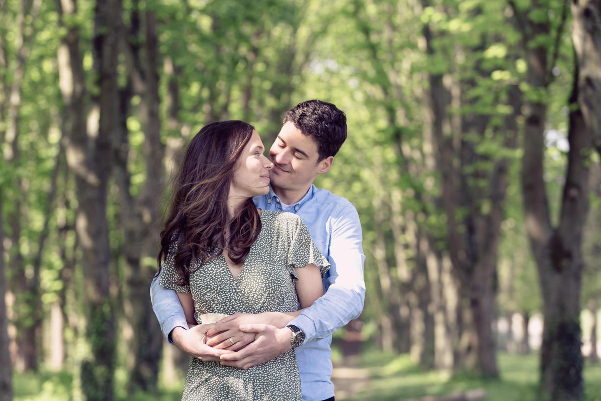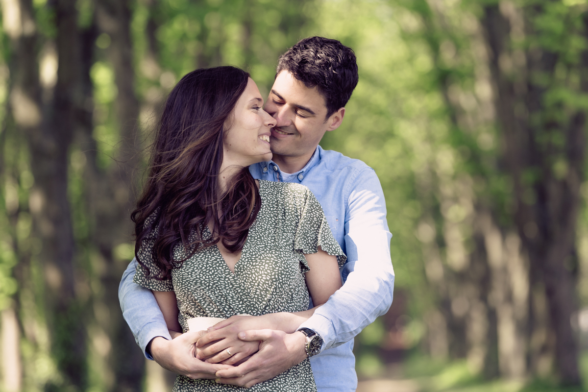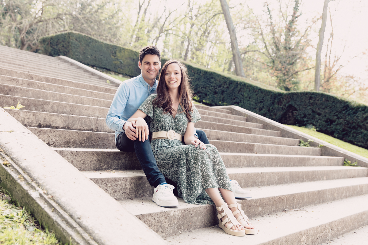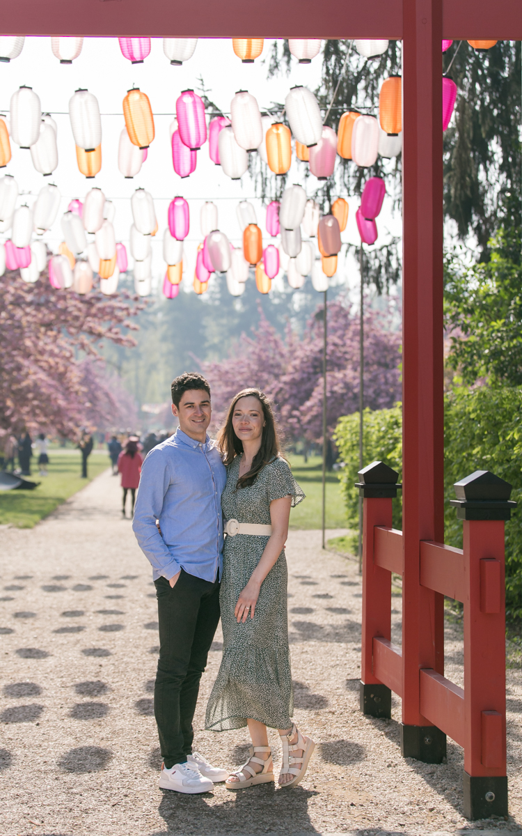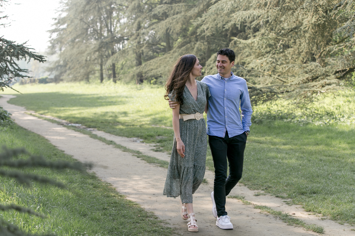 Chaque année la floraison des cerisiers attire des milliers de curieux vers le Parc de Sceaux, où les bosquets accueillent le plus grand rassemblement asiatique en l’honneur du Hanami. Le décor pour cette séance de couple était donc tout trouvé, encore fallait-il attendre le moment où les cerisiers étaient tous en fleurs, la foule du weekend partie, et le soleil de sortie! Nous nous sommes donc retrouvés un jour de semaine par une matinée ensoleillée mais terriblement fraîche à cause du vent. Cela n’a nullement découragé mes futurs mariés, qui se sont prêtés avec grâce et tout en sourires à cette chouette séance.