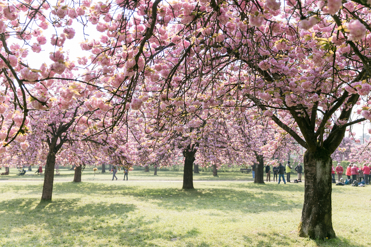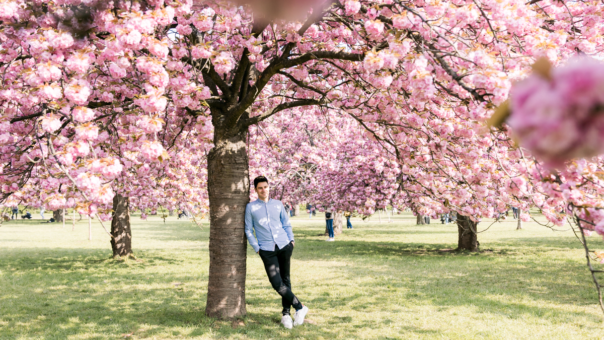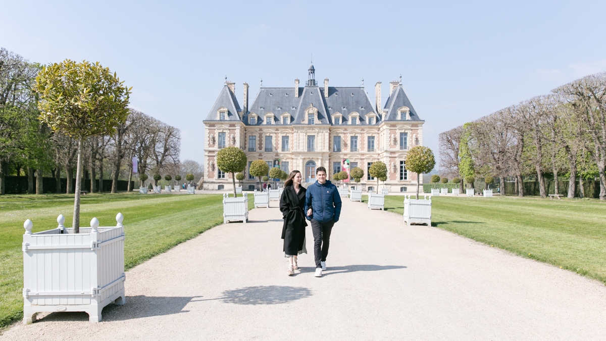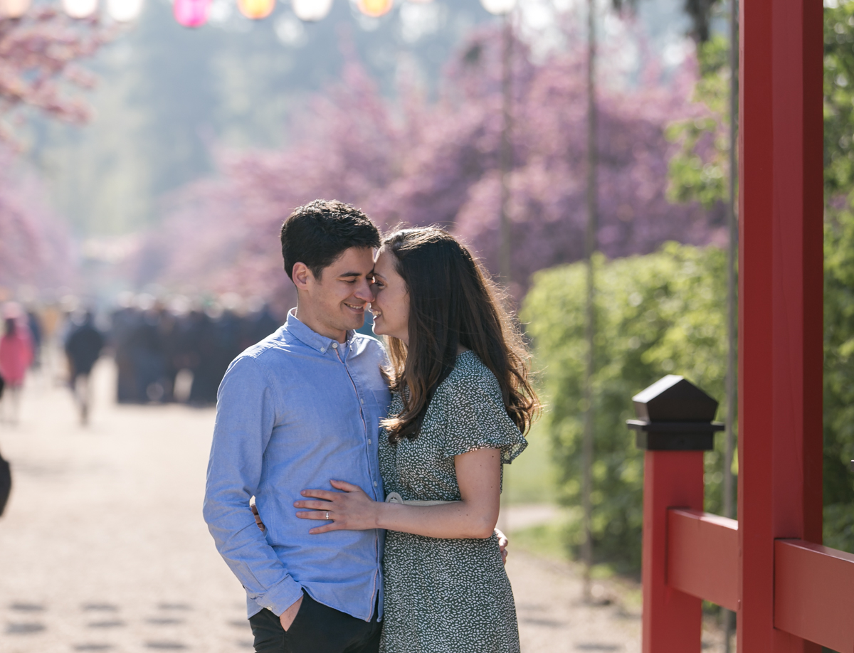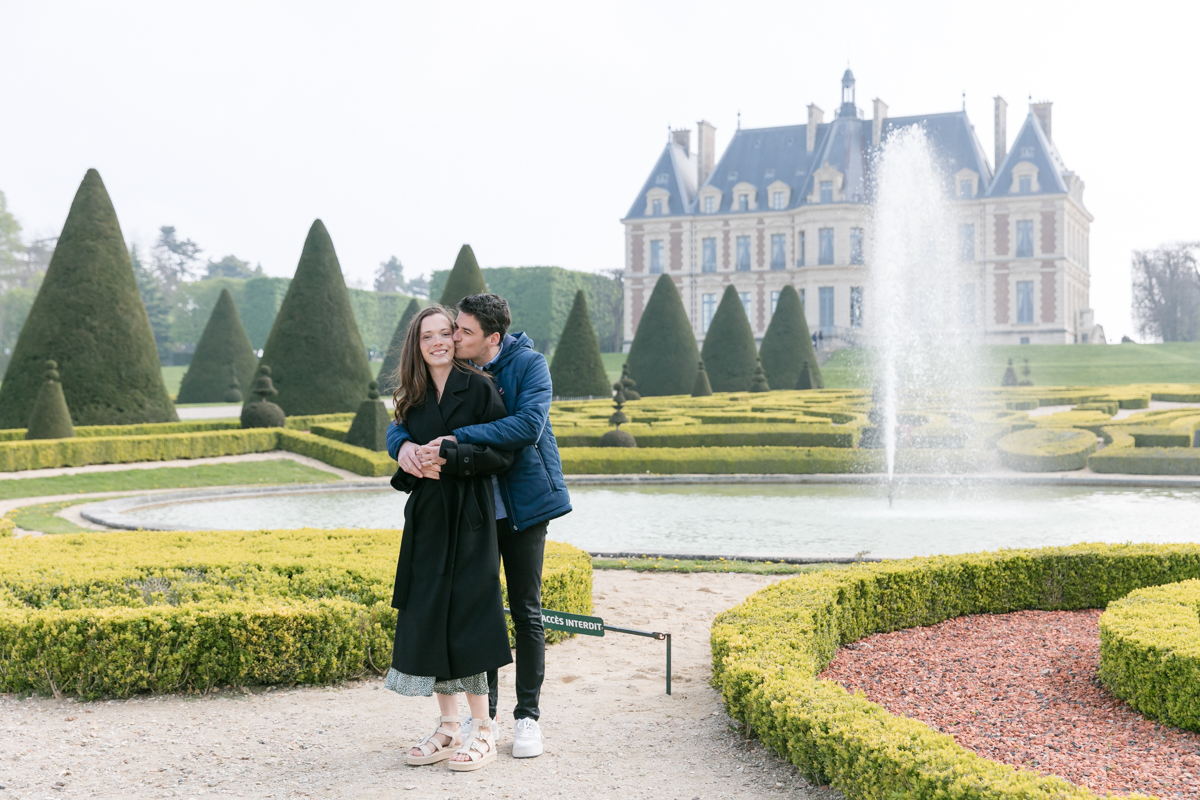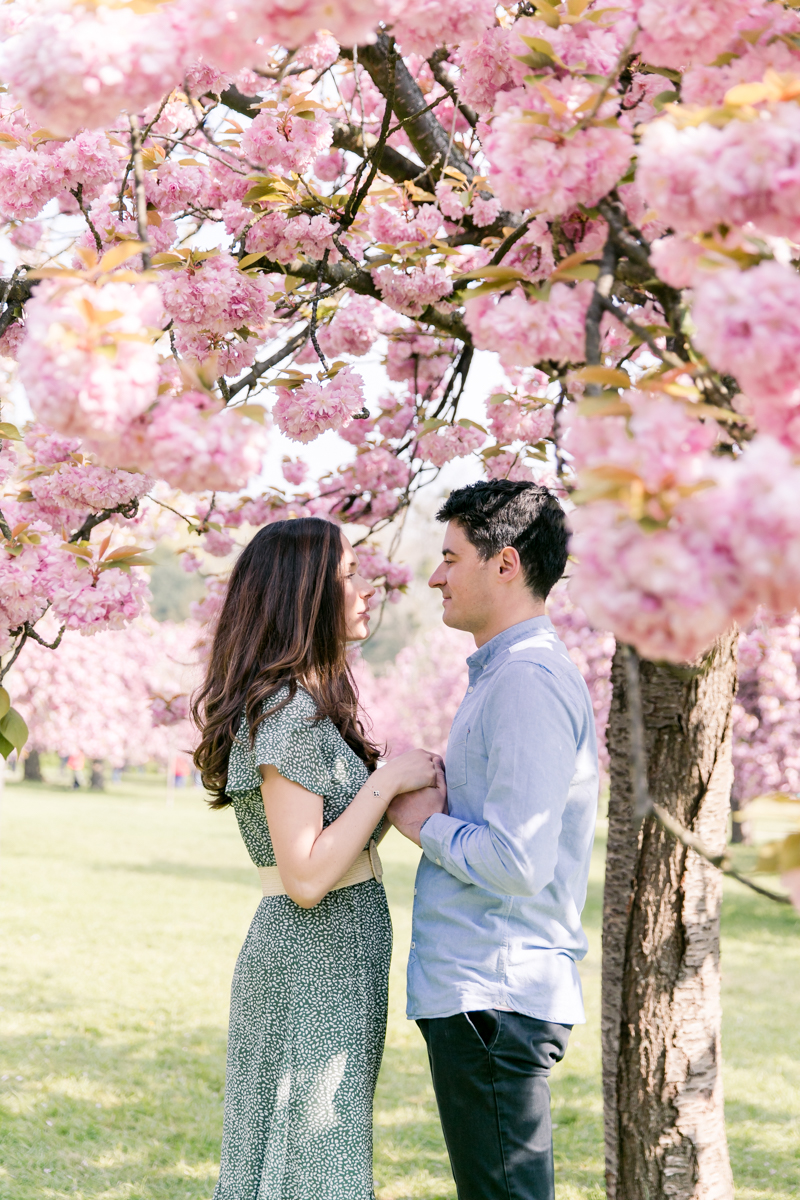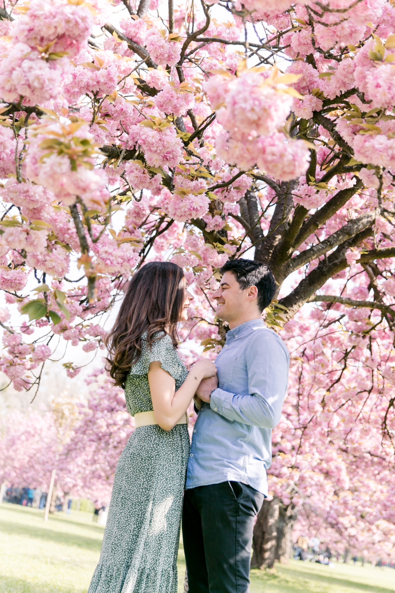 Chaque année la floraison des cerisiers attire des milliers de curieux vers le Parc de Sceaux, où les bosquets accueillent le plus grand rassemblement asiatique en l’honneur du Hanami. Le décor pour cette séance de couple était donc tout trouvé, encore fallait-il attendre le moment où les cerisiers étaient tous en fleurs, la foule du weekend partie, et le soleil de sortie! Nous nous sommes donc retrouvés un jour de semaine par une matinée ensoleillée mais terriblement fraîche à cause du vent. Cela n’a nullement découragé mes futurs mariés, qui se sont prêtés avec grâce et tout en sourires à cette chouette séance.
