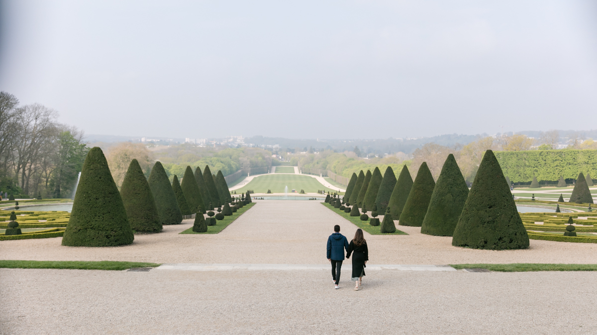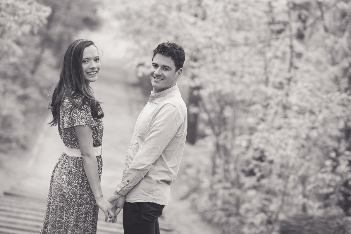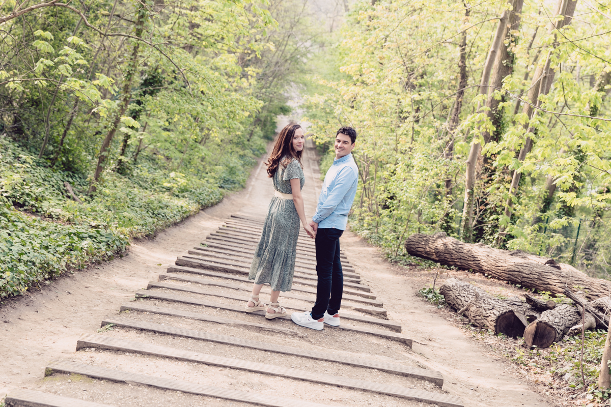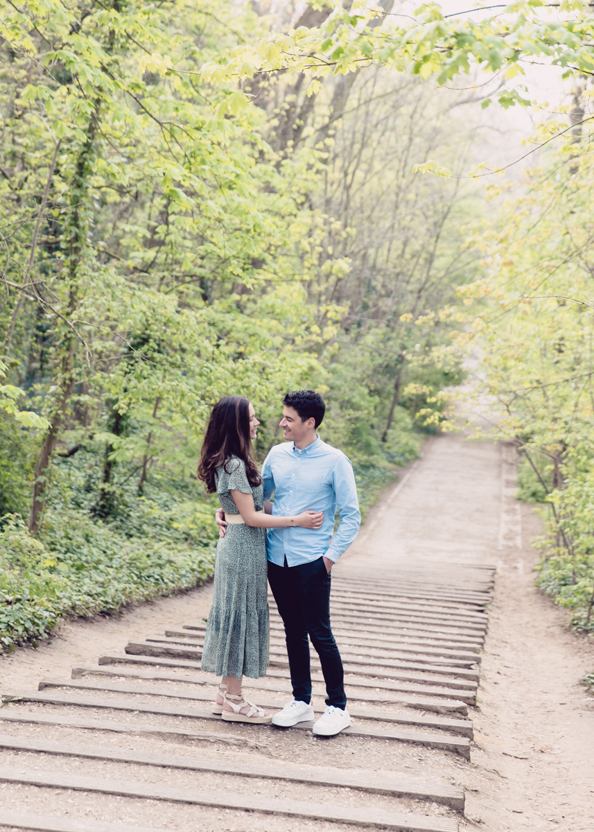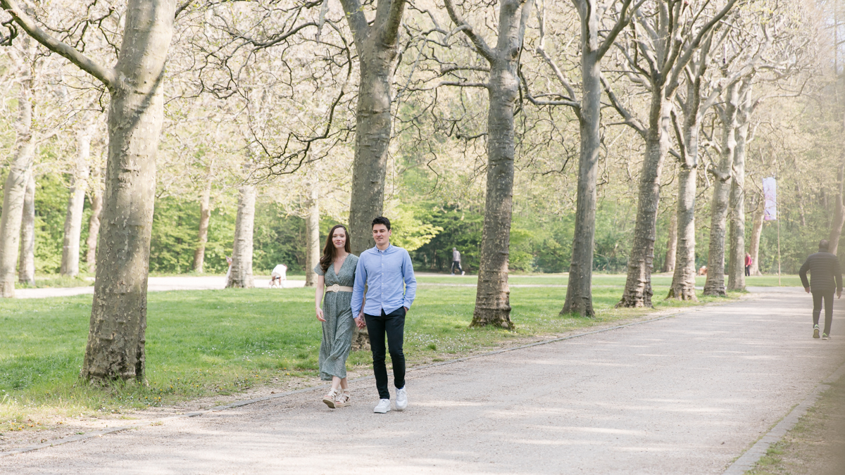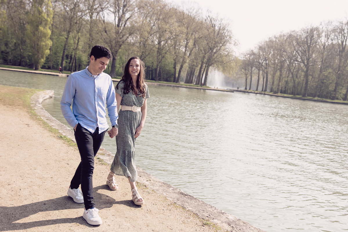 Chaque année la floraison des cerisiers attire des milliers de curieux vers le Parc de Sceaux, où les bosquets accueillent le plus grand rassemblement asiatique en l’honneur du Hanami. Le décor pour cette séance de couple était donc tout trouvé, encore fallait-il attendre le moment où les cerisiers étaient tous en fleurs, la foule du weekend partie, et le soleil de sortie! Nous nous sommes donc retrouvés un jour de semaine par une matinée ensoleillée mais terriblement fraîche à cause du vent. Cela n’a nullement découragé mes futurs mariés, qui se sont prêtés avec grâce et tout en sourires à cette chouette séance.