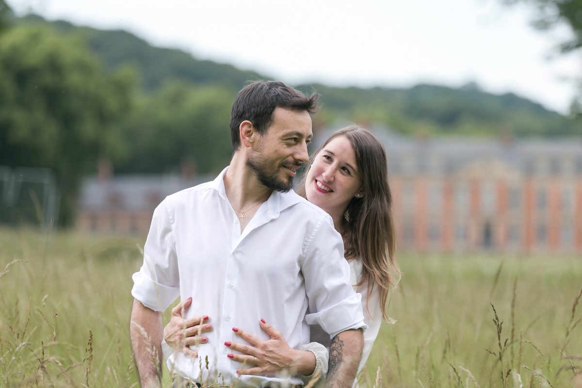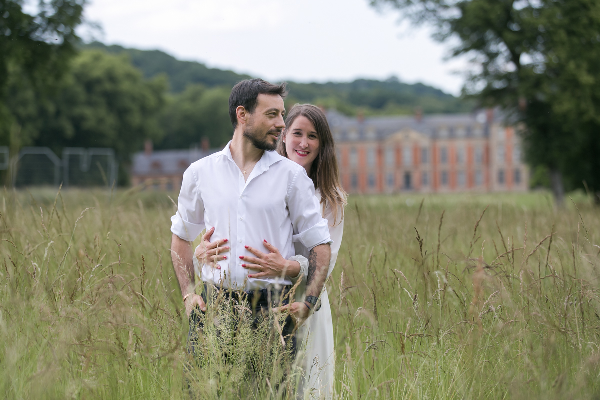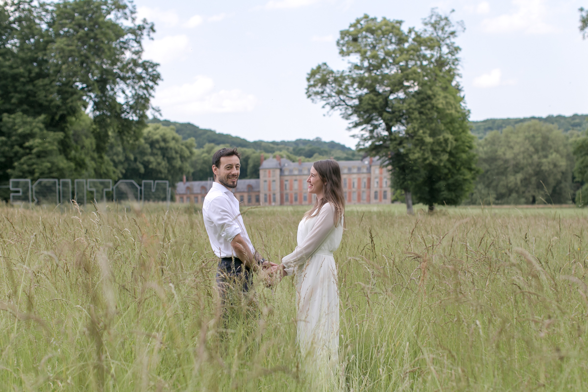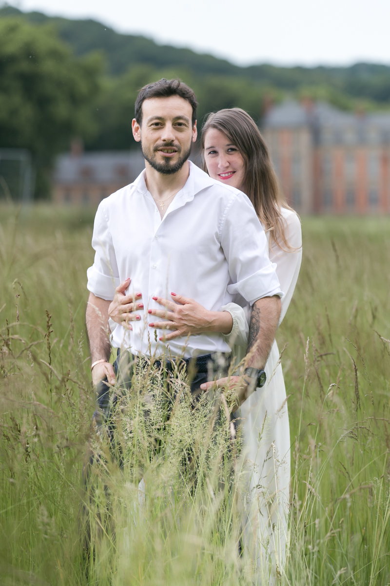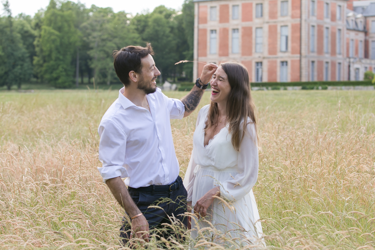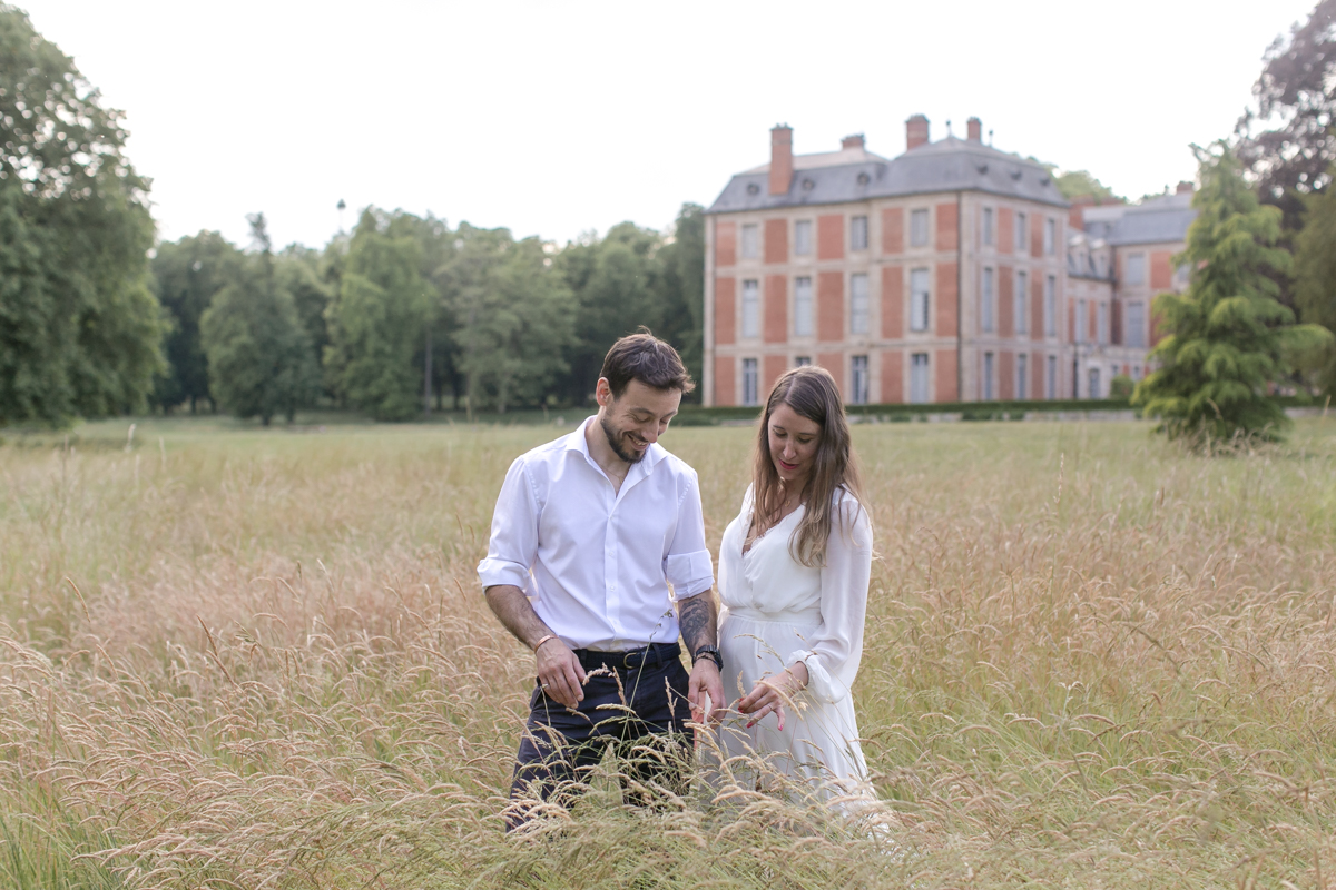 Pour leur séance de couple j’avais retrouvé les futurs amoureux au Domaine de Chamarande par une belle après-midi ensoleillée, à quelques semaines à peine de leur mariage. Le parc étant vaste et varié, il offrait de nombreux endroits photogéniques pour notre séance, et un calme absolu en semaine. Les tilleuls embaumaient l’air, les fleurs sauvages et les graminées poussaient dans les prés et offraient un cadre champêtre idéal pour cette séance!
