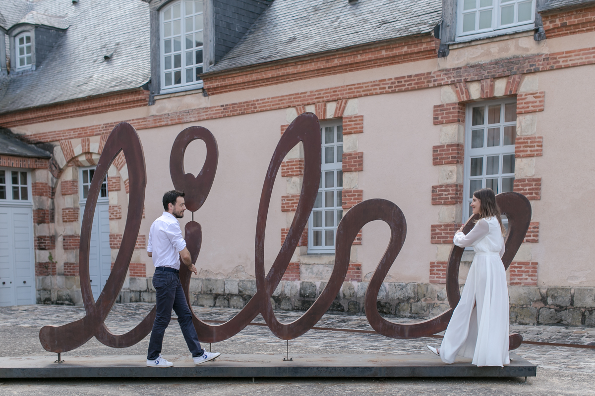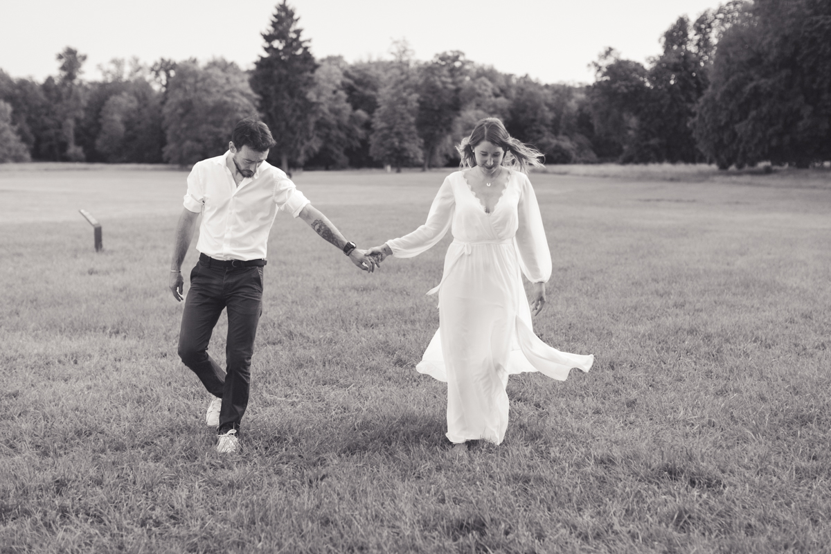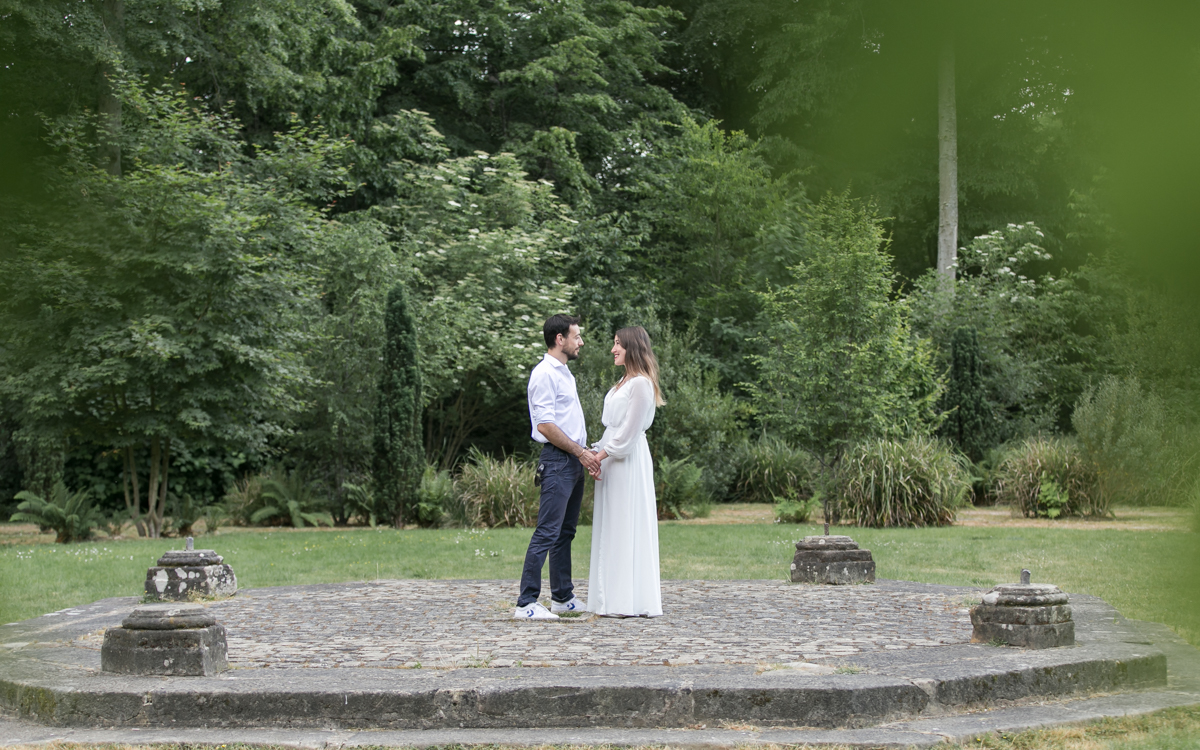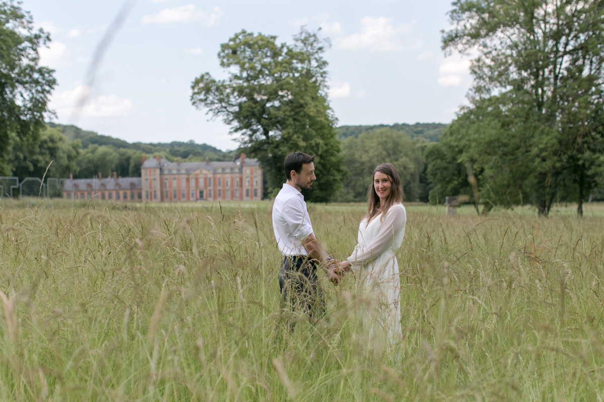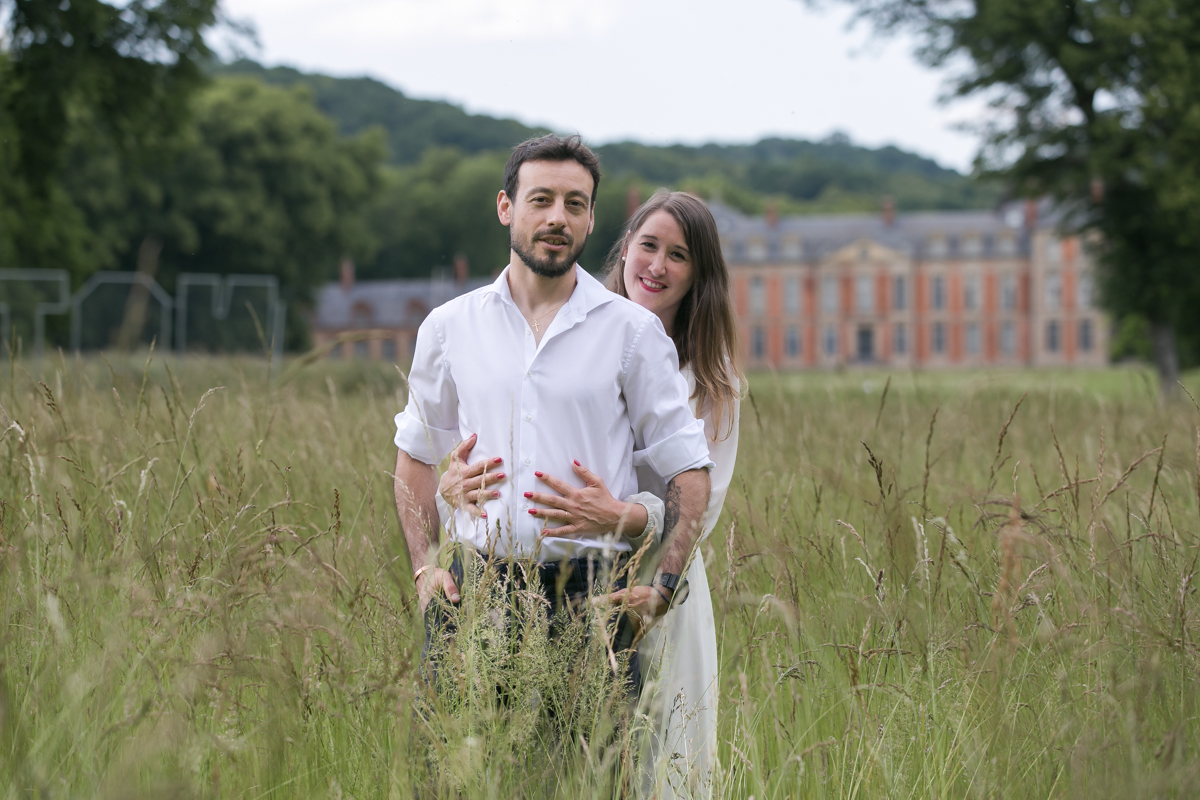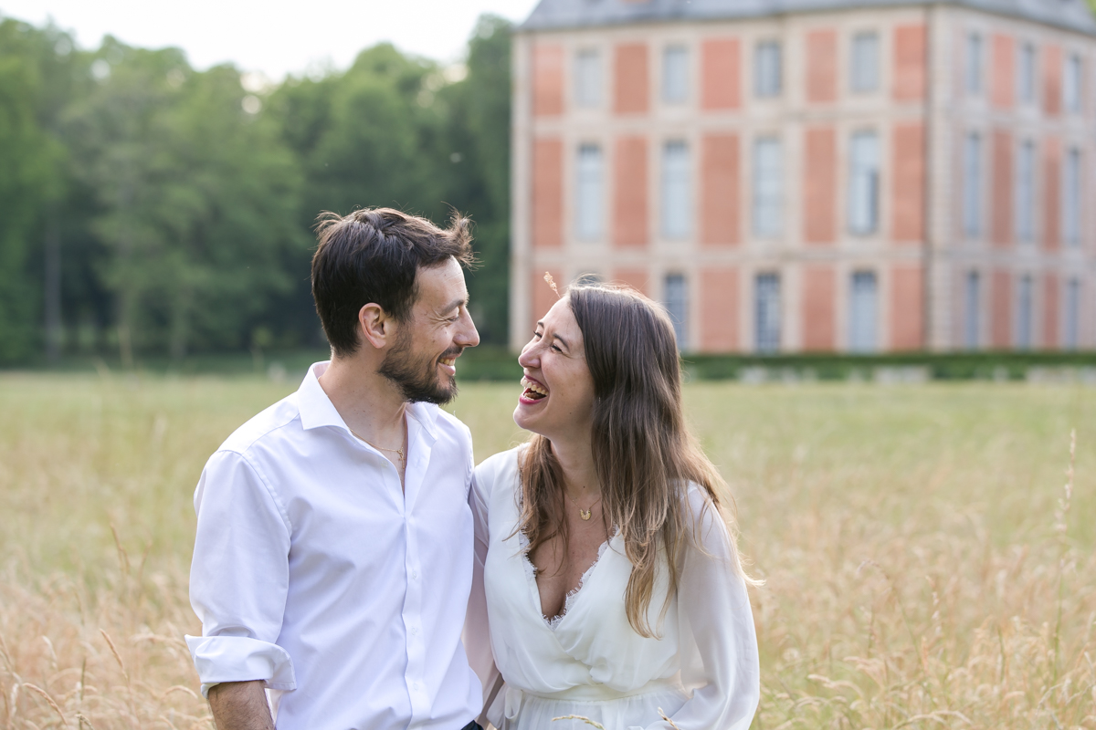 Pour leur séance de couple j’avais retrouvé les futurs amoureux au Domaine de Chamarande par une belle après-midi ensoleillée, à quelques semaines à peine de leur mariage. Le parc étant vaste et varié, il offrait de nombreux endroits photogéniques pour notre séance, et un calme absolu en semaine. Les tilleuls embaumaient l’air, les fleurs sauvages et les graminées poussaient dans les prés et offraient un cadre champêtre idéal pour cette séance!
