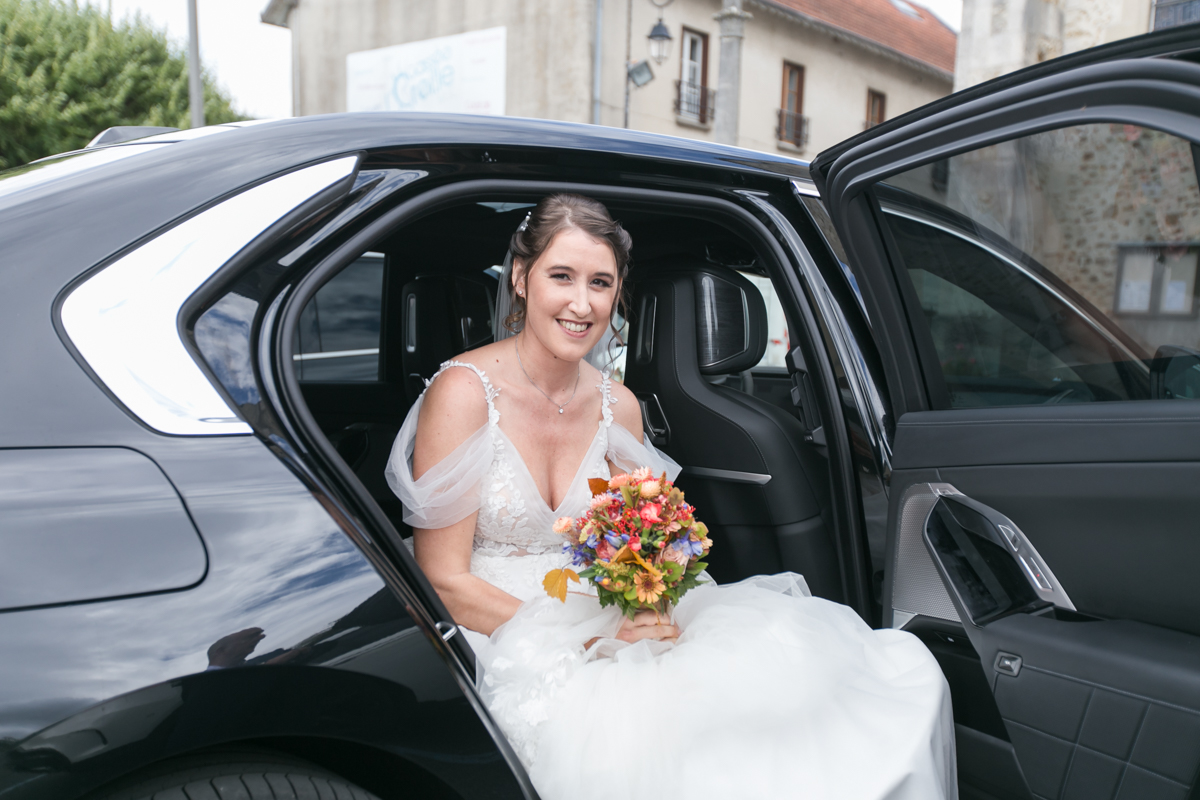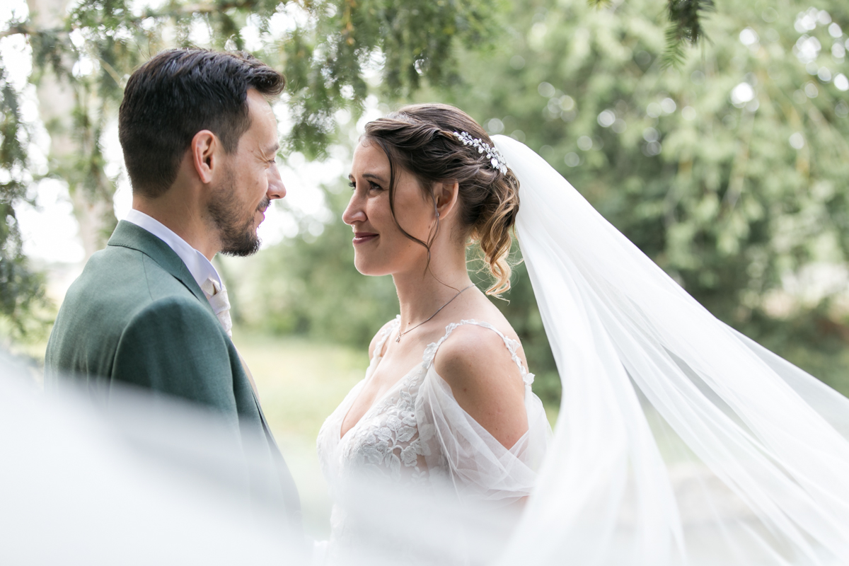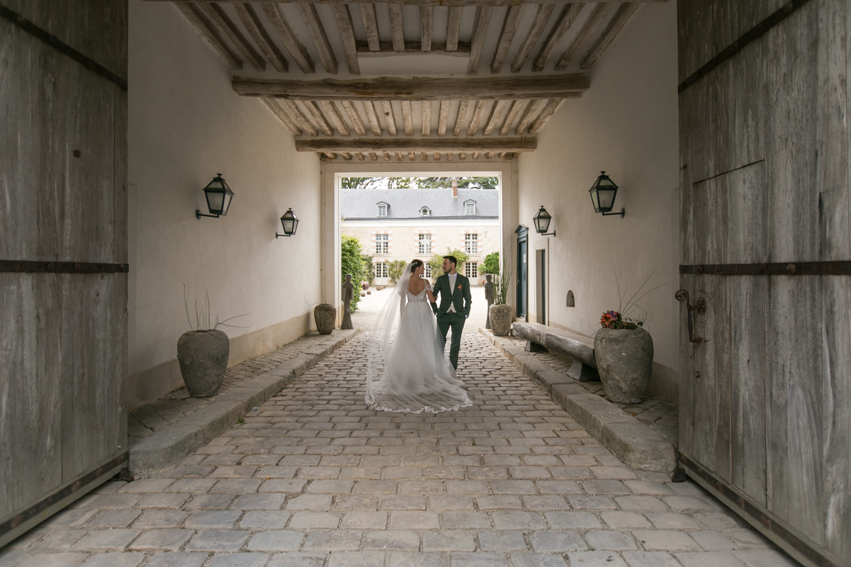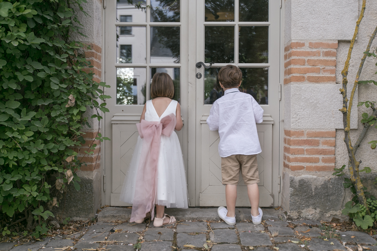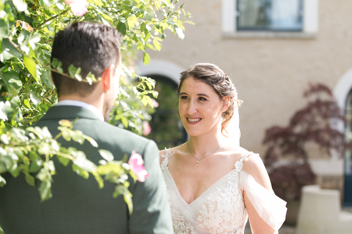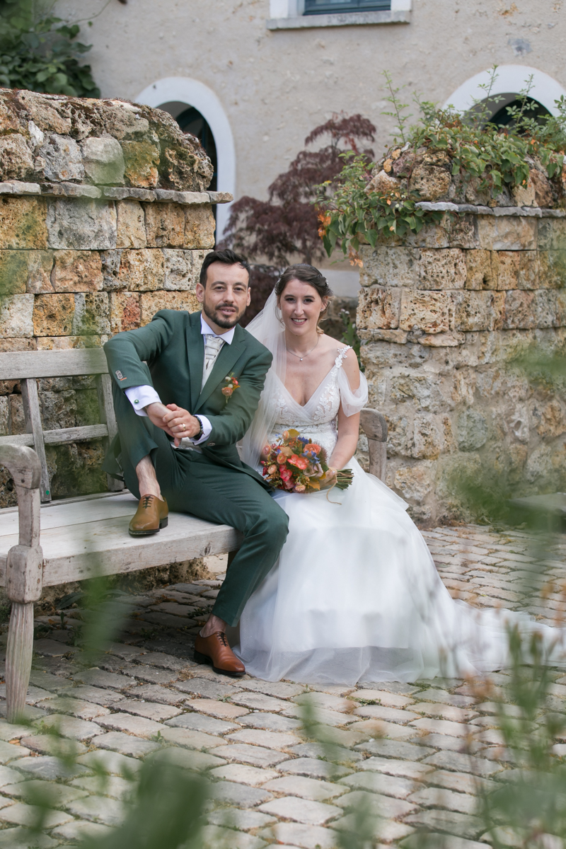 Vive le vent, vive le vent… qui chasse les nuages et la pluie pour faire place à un beau ciel bleu, et qui joue avec le joli voile de la mariée juste au moment des photos de couple, me permettant de faire de chouettes photos! La journée avait commencé plutôt grise et humide à l’église de Combs la Ville avec la cérémonie de mariage, où les enfants d’honneur, absolument craquants dans leur belles tenues, m’ont beaucoup amusée avec leurs pitreries. La suite des festivités s’est déroulée sous le soleil et dans la bonne humeur au Domaine de Quincampoix. Et pour clore cette mémorable journée les mariés ont fait leur entrée dans la jolie barque rouge devant leurs invités réjouis, éclairés par les derniers rayons de soleil – un moment magique toujours!