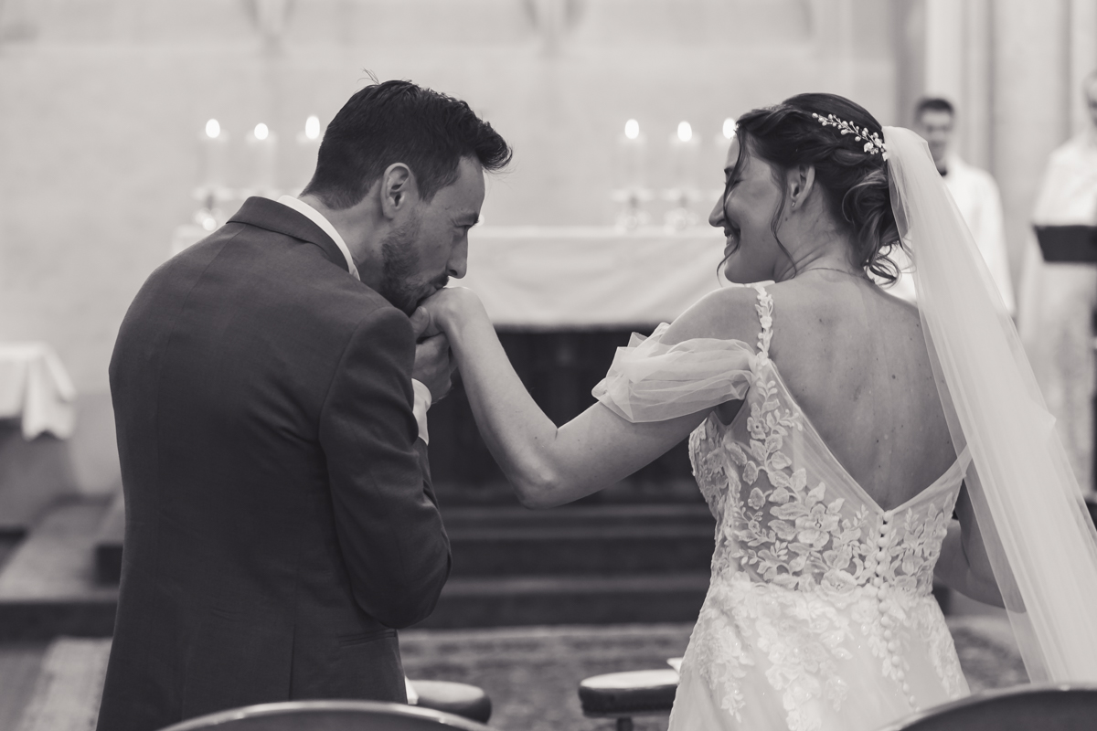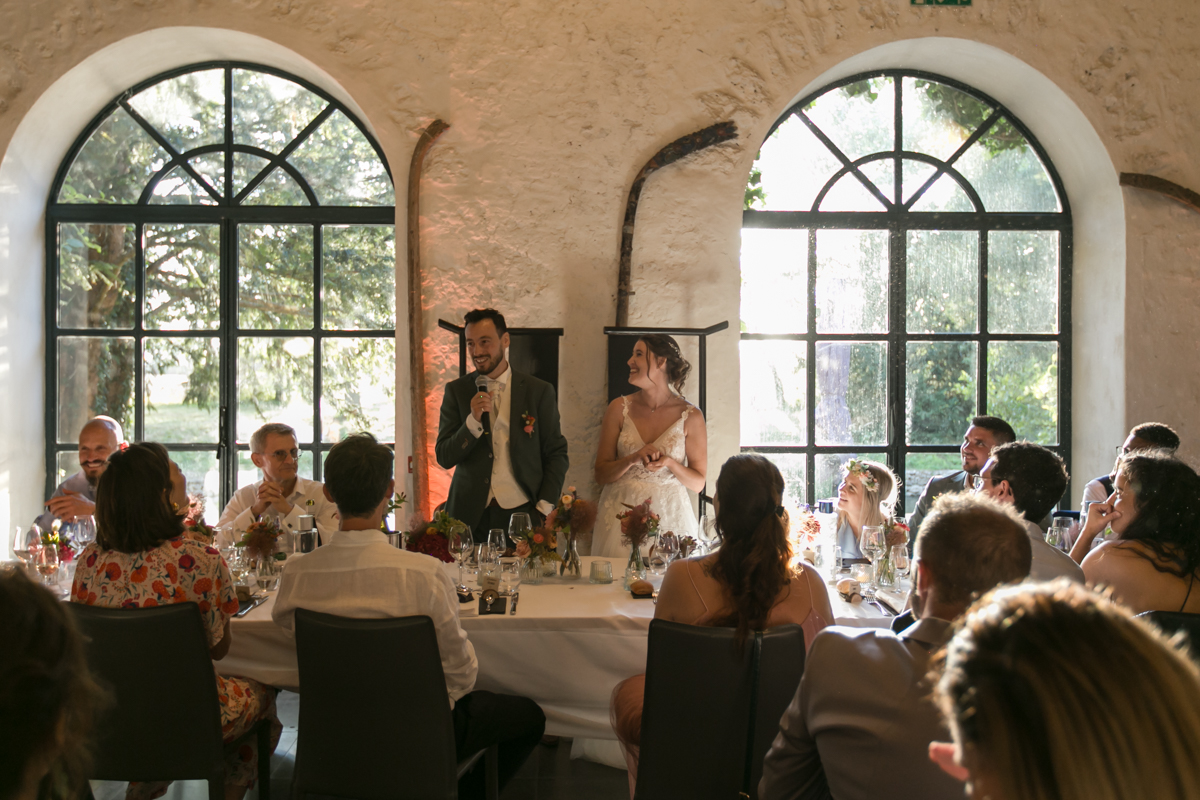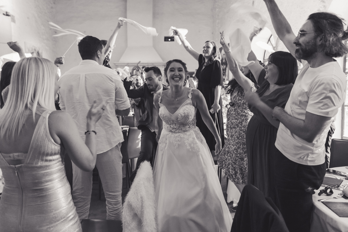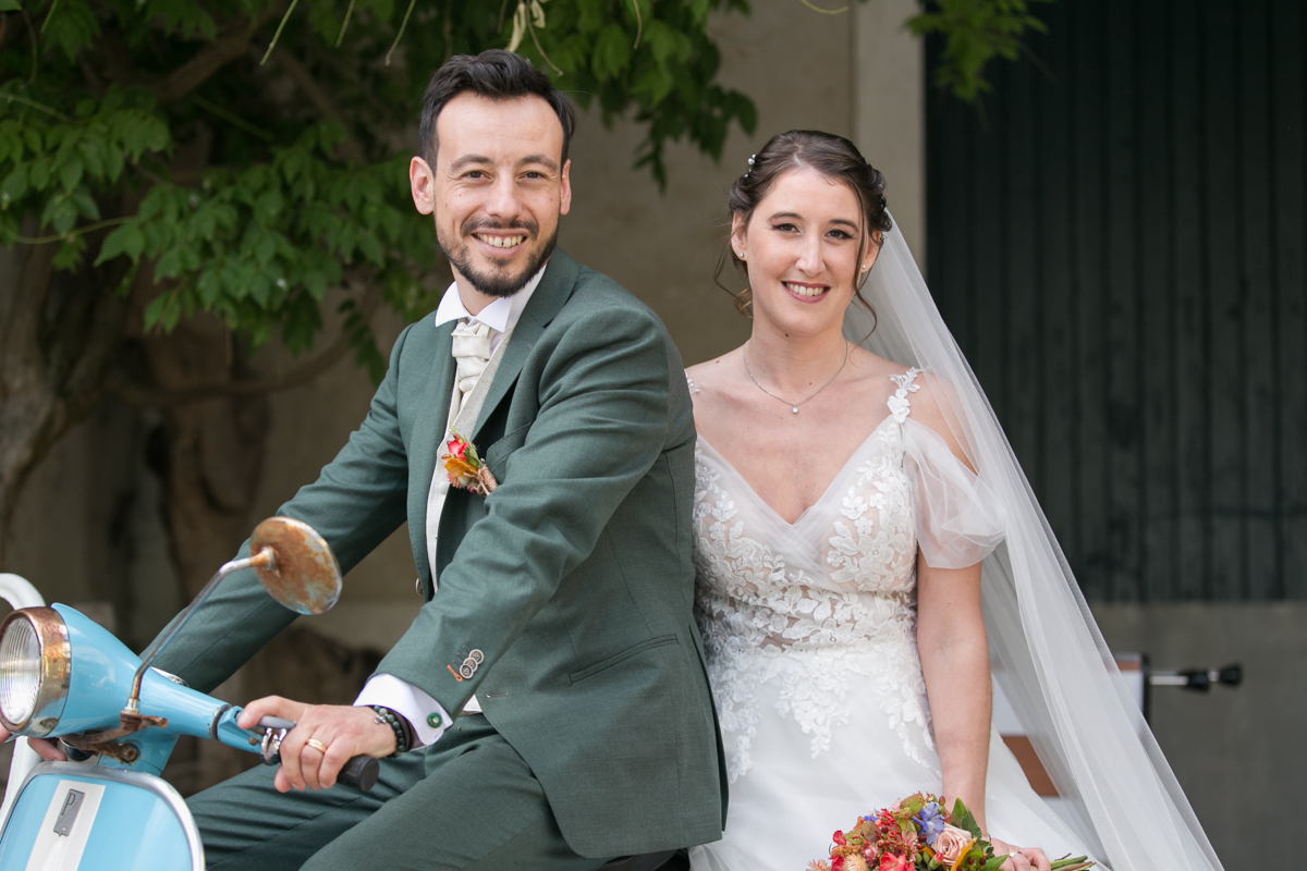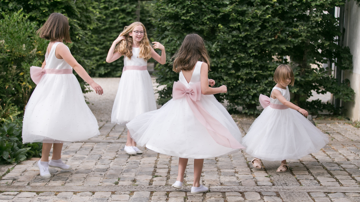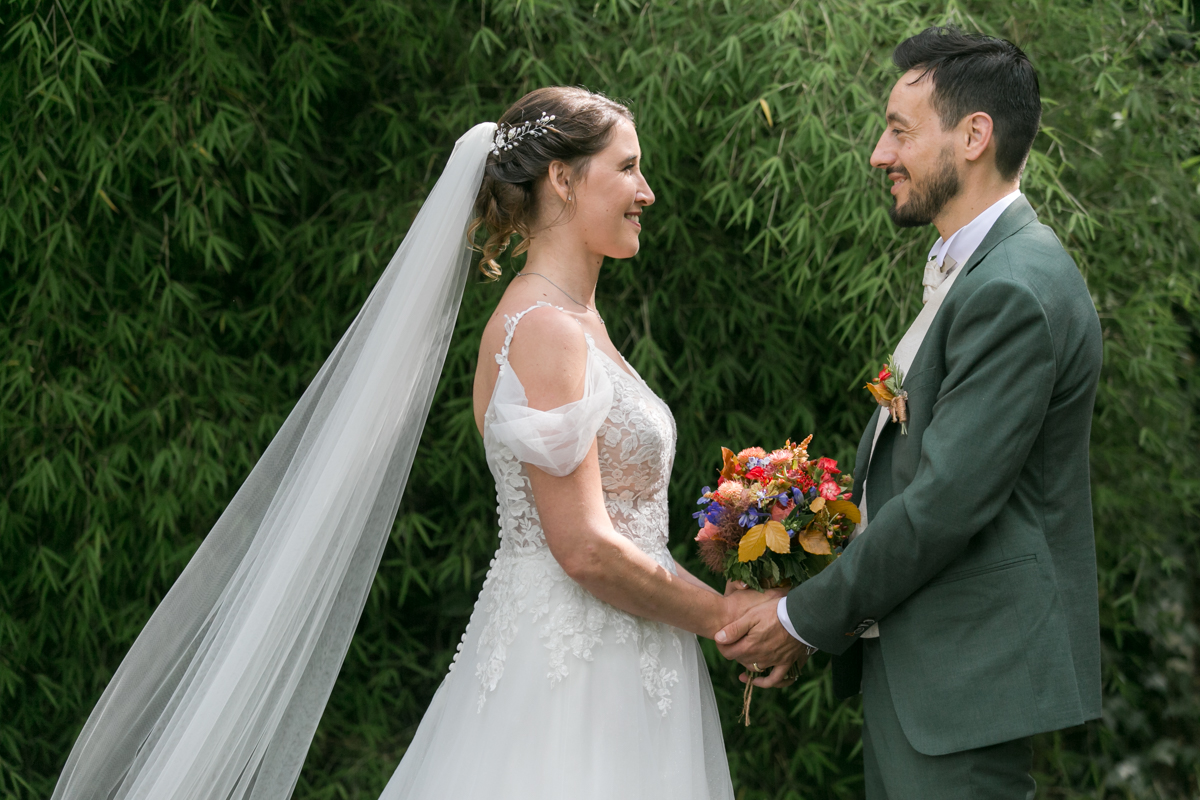 Vive le vent, vive le vent… qui chasse les nuages et la pluie pour faire place à un beau ciel bleu, et qui joue avec le joli voile de la mariée juste au moment des photos de couple, me permettant de faire de chouettes photos! La journée avait commencé plutôt grise et humide à l’église de Combs la Ville avec la cérémonie de mariage, où les enfants d’honneur, absolument craquants dans leur belles tenues, m’ont beaucoup amusée avec leurs pitreries. La suite des festivités s’est déroulée sous le soleil et dans la bonne humeur au Domaine de Quincampoix. Et pour clore cette mémorable journée les mariés ont fait leur entrée dans la jolie barque rouge devant leurs invités réjouis, éclairés par les derniers rayons de soleil – un moment magique toujours!