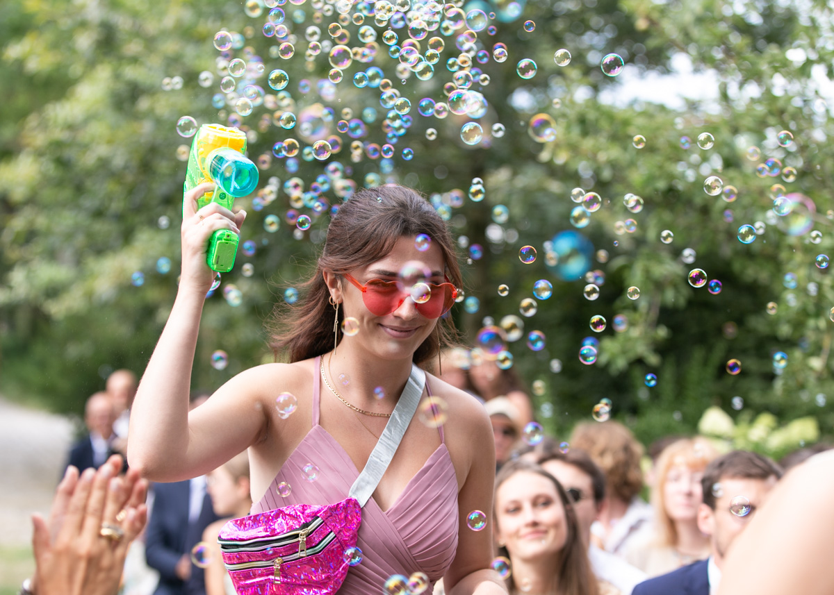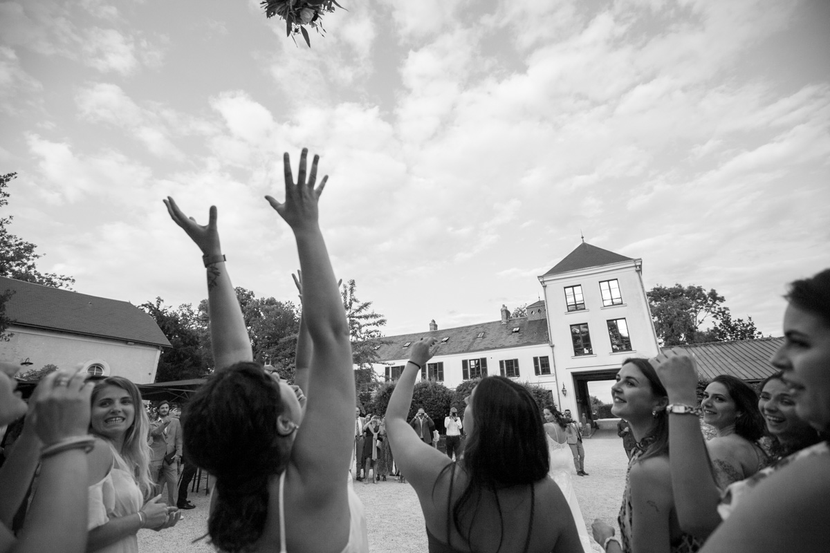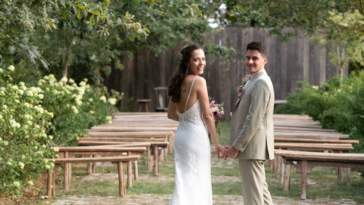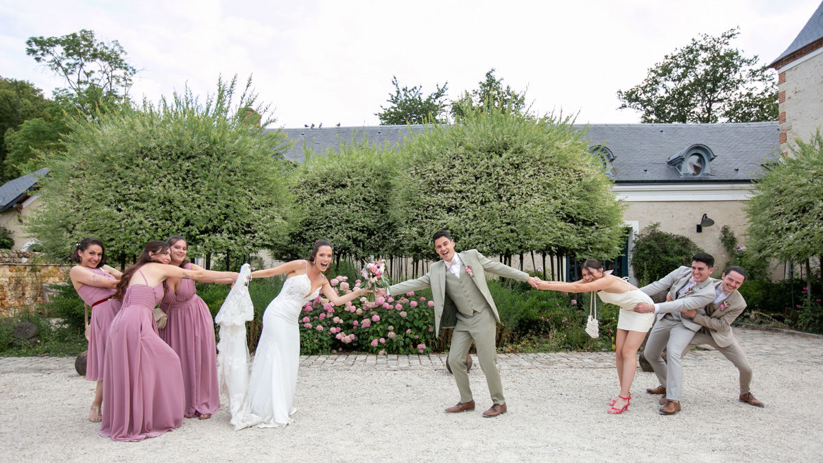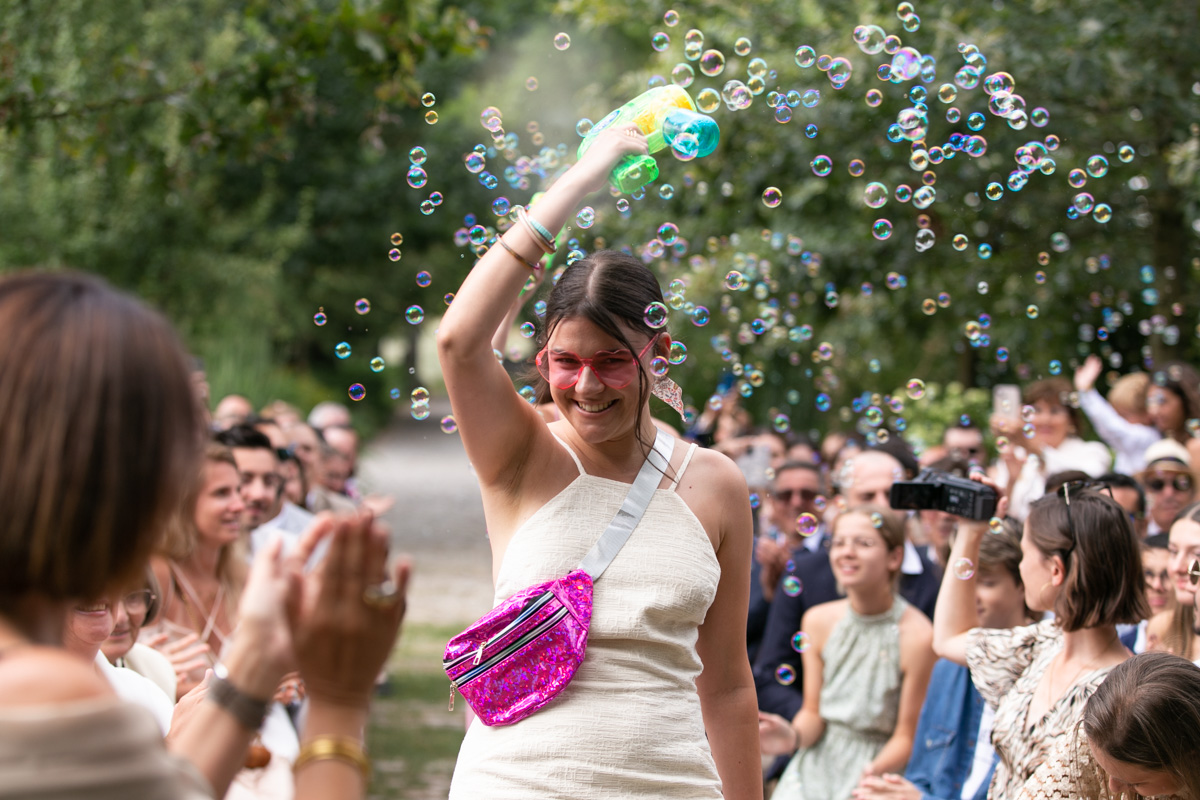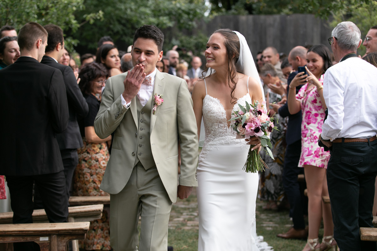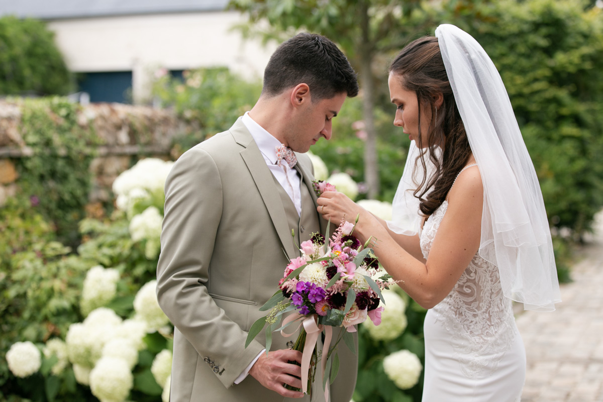 Combinaison blanche: Septem – Chaussures de mariée: Floredeasoka, Paris – Alliances: Robe de mariée Pronovias chez Confidence Mariage (Boulogne Billancourt)- Coiffeuse: Valérie Burg- Maquilleuse: Eva Gelly – Costume gris: Issac – Costume vert sur mesure: Samson – Chaussures marié: Pierre Cardin – Fleurs: Le Fleuriste du Coin – Saxophoniste: Eric Saxe – Papeterie: faireparterie.fr – Marque-places: Lilas.etc – lilasetc.fr – Pistolets à bulles: Amazon – Traiteur: Fantaisy Traiteur – DJ Marko – Lieu de réception: Domaine de Quincampoix