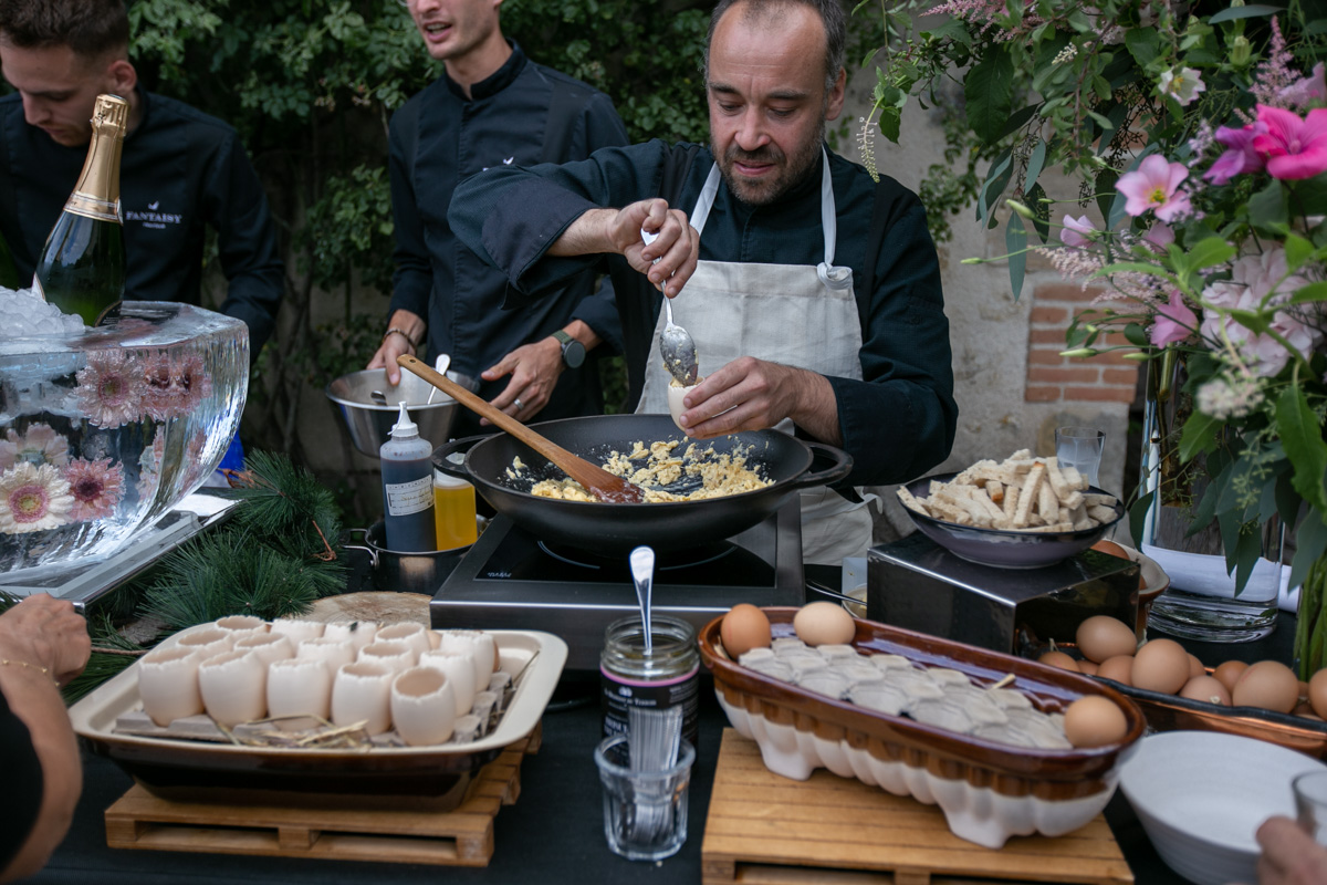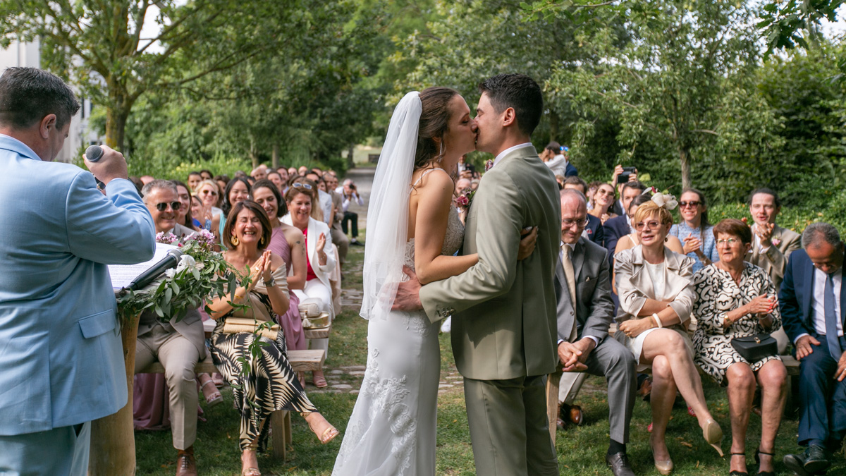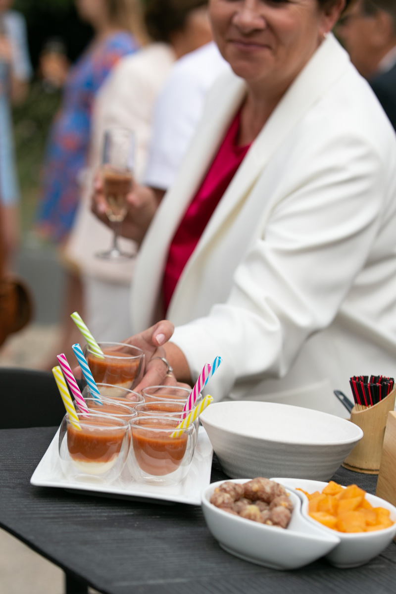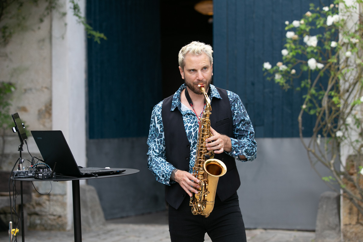 Après la mairie les mariés se sont changés pour la cérémonie laïque, conduite par l’oncle de Quentin, et égayée par des témoins en pleine forme. Ensuite une ambiance musicale lounge, soignée par le saxophoniste et flûtiste Eric Sax, attendait les invités au vin d’honneur, où les superbes sculptures de glace façonnées par un ami attiraient tous les regards.