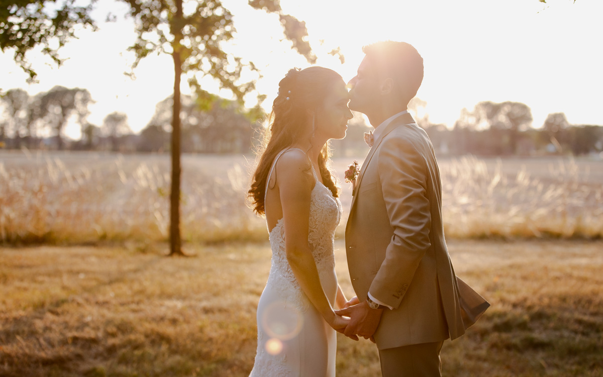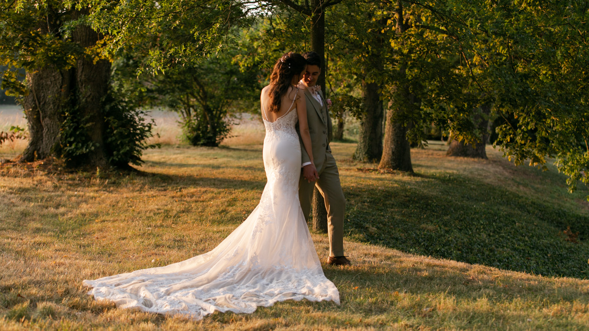 Lorsque les invités rejoignaient la salle pour le dîner, les mariés se sont éclipsés avec moi pour une séance de photo au coucher du soleil, un véritable moment de grâce et de calme!