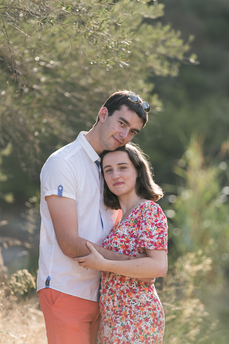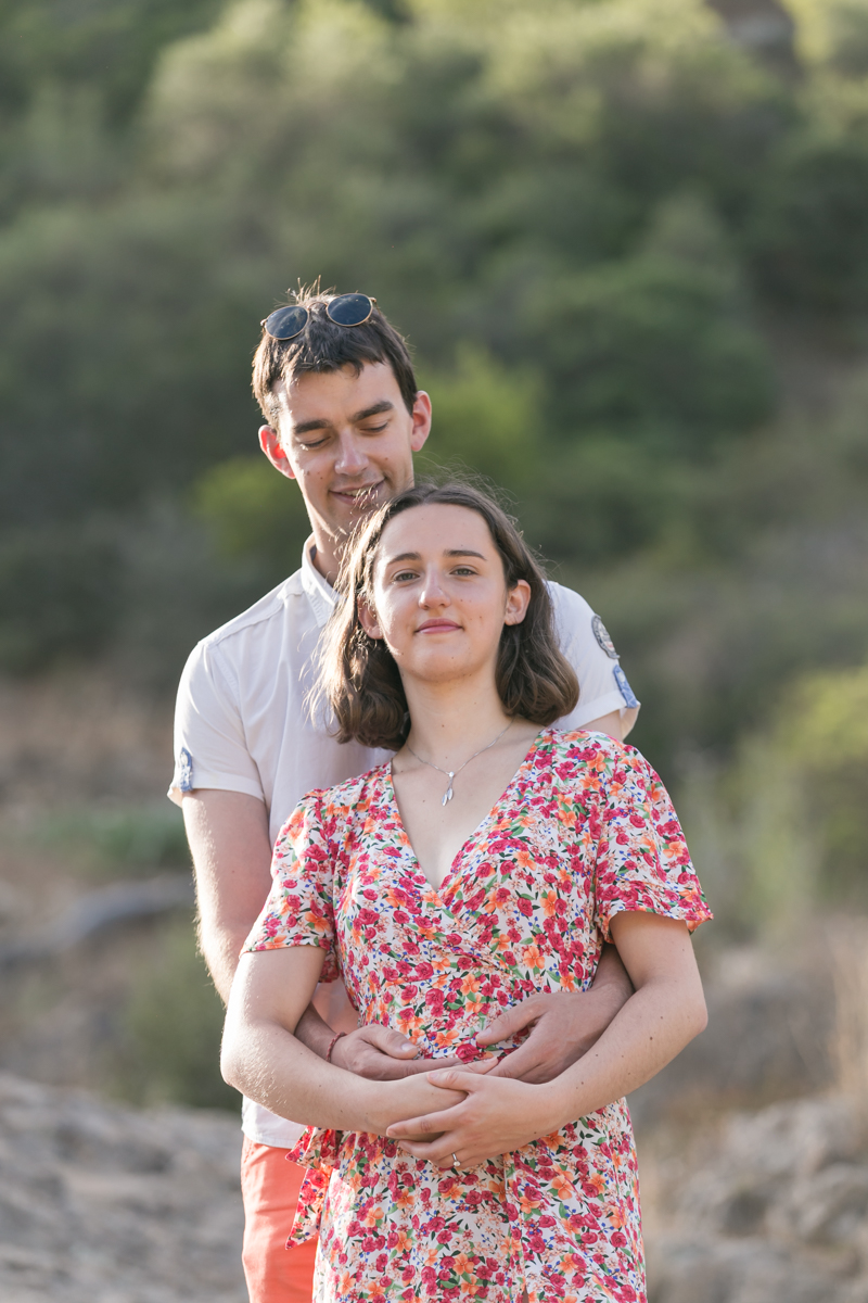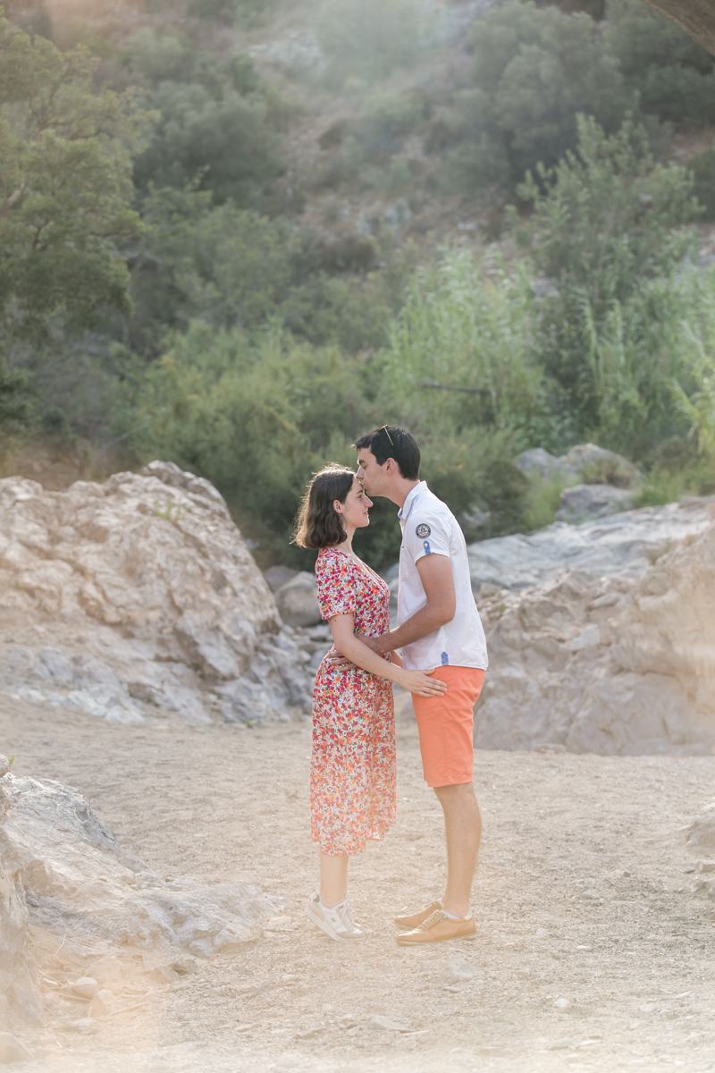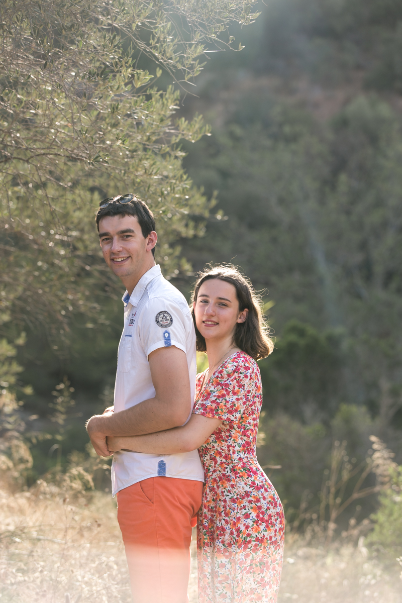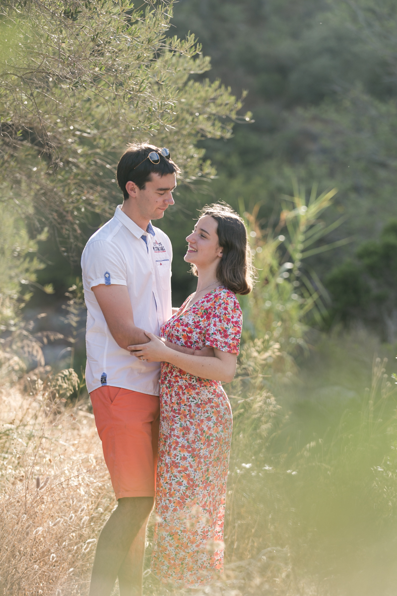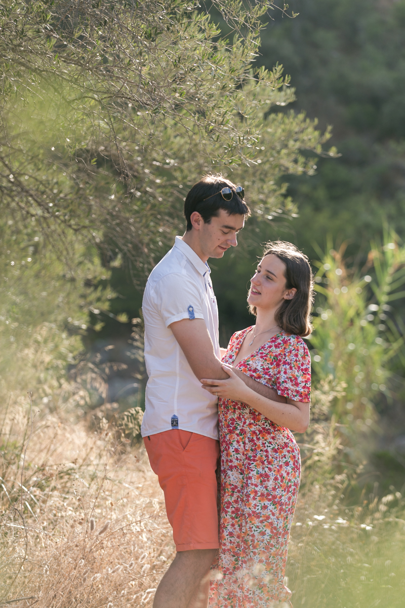 J’ai connu les parents de Baptiste lors de nos vacances familiales à Grimaud alors qu’il avait environ 12 ans, et depuis je l’ai vu grandir quasiment d’année en année. Aujourd’hui c’est un jeune homme heureux et amoureux que je retrouve à l’occasion de sa séance de couple avec Camille, sa future épouse, leur mariage étant prévu l’année prochaine. Puisque nous nous sommes retrouvés à Grimaud, il fallait que je les emmène au Pont des Fées, ce sublime vallon encore authentique et sauvage, au milieu duquel surgit un magnifique pont de pierre, et qui constitue un but de promenade très agréable, surtout pendant la golden hour. C’est un endroit que j’affectionne particulièrement, et dans lequel j’avais toujours voulu photographier des amoureux voire des mariés, c’est maintenant chose faite!