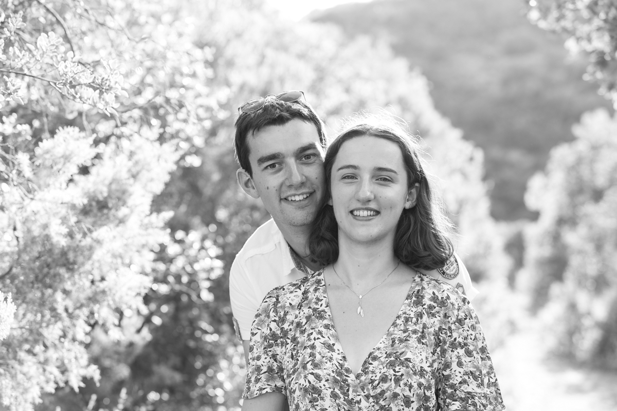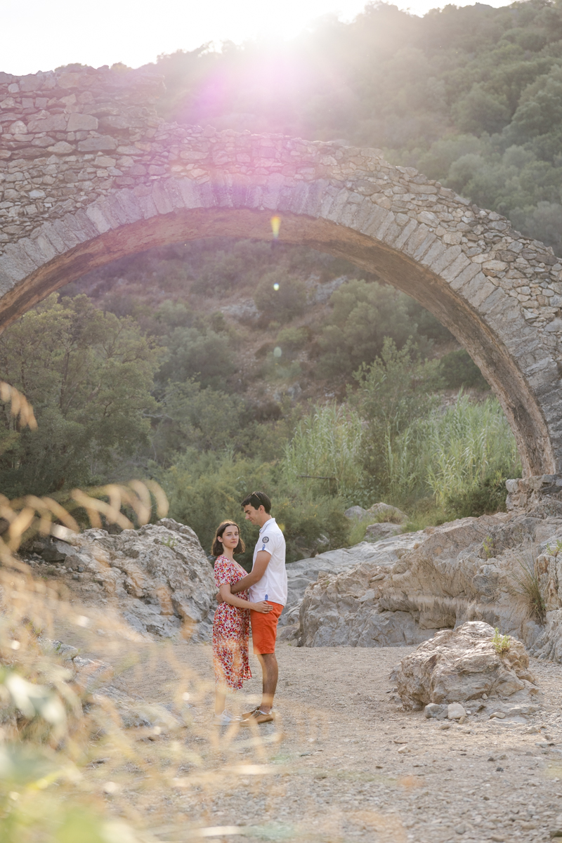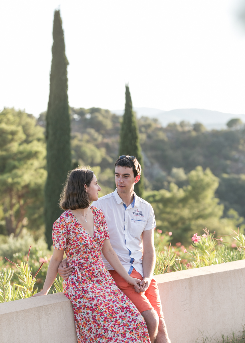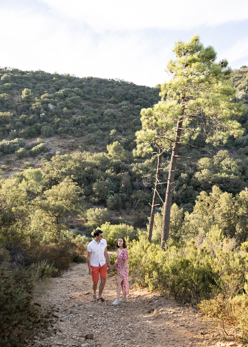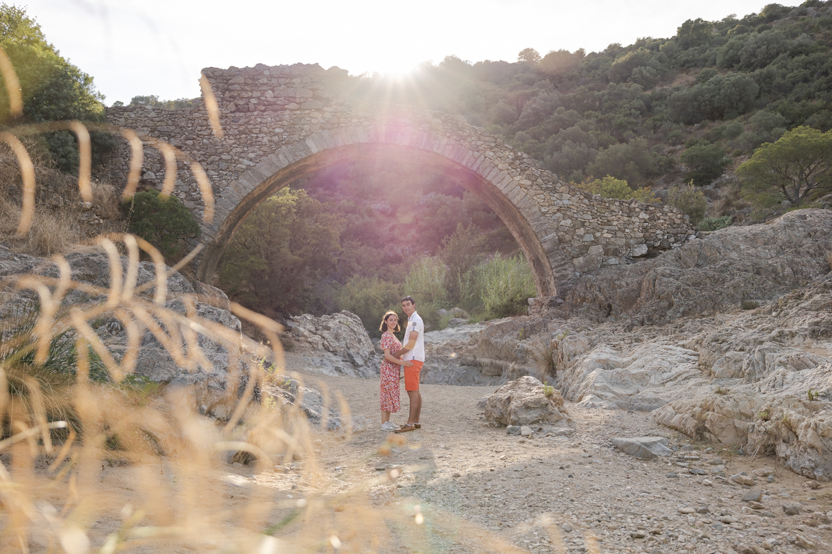 J’ai connu les parents de Baptiste lors de nos vacances familiales à Grimaud alors qu’il avait environ 12 ans, et depuis je l’ai vu grandir quasiment d’année en année. Aujourd’hui c’est un jeune homme heureux et amoureux que je retrouve à l’occasion de sa séance de couple avec Camille, sa future épouse, leur mariage étant prévu l’année prochaine. Puisque nous nous sommes retrouvés à Grimaud, il fallait que je les emmène au Pont des Fées, ce sublime vallon encore authentique et sauvage, au milieu duquel surgit un magnifique pont de pierre, et qui constitue un but de promenade très agréable, surtout pendant la golden hour. C’est un endroit que j’affectionne particulièrement, et dans lequel j’avais toujours voulu photographier des amoureux voire des mariés, c’est maintenant chose faite!