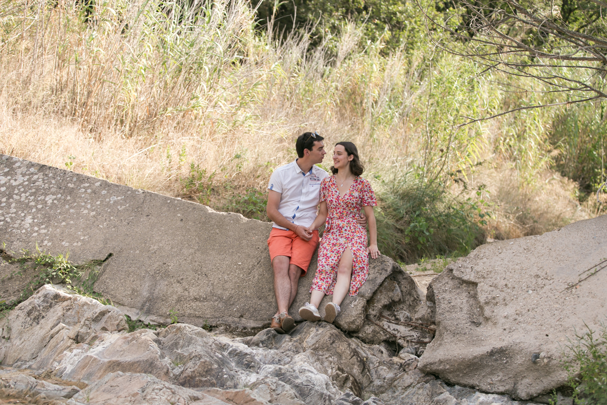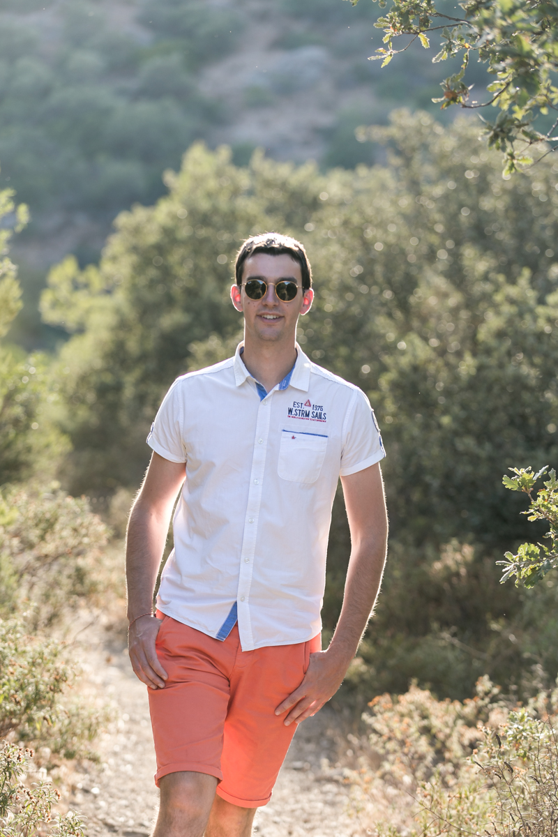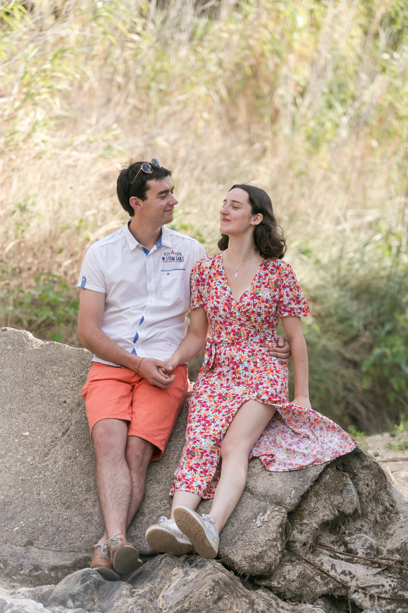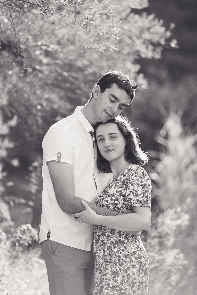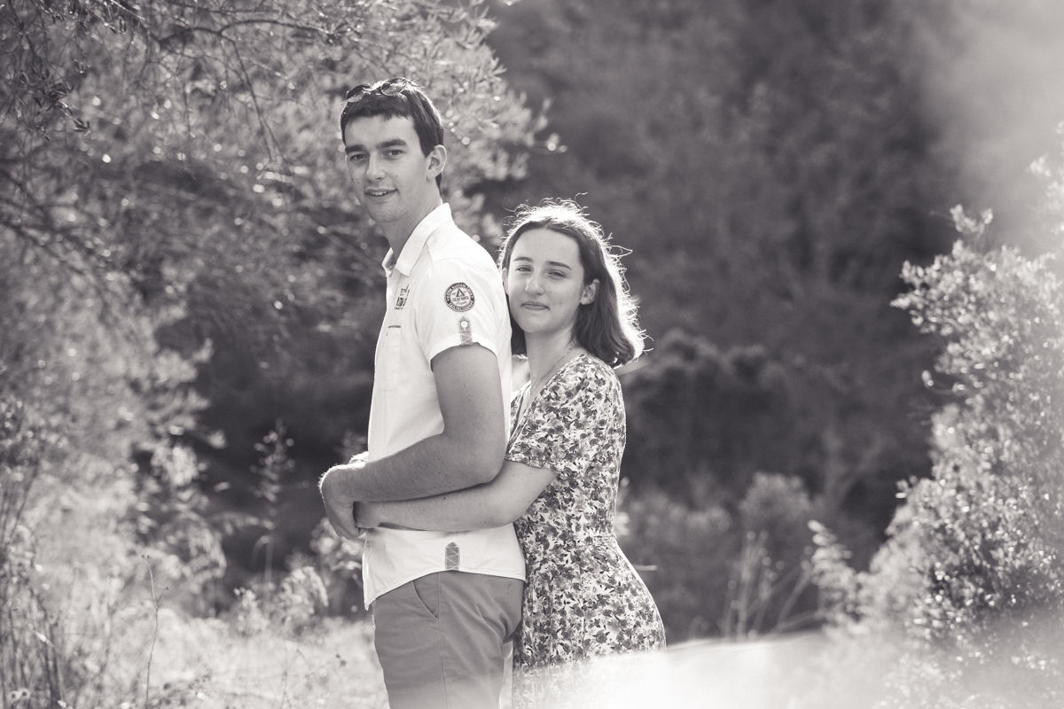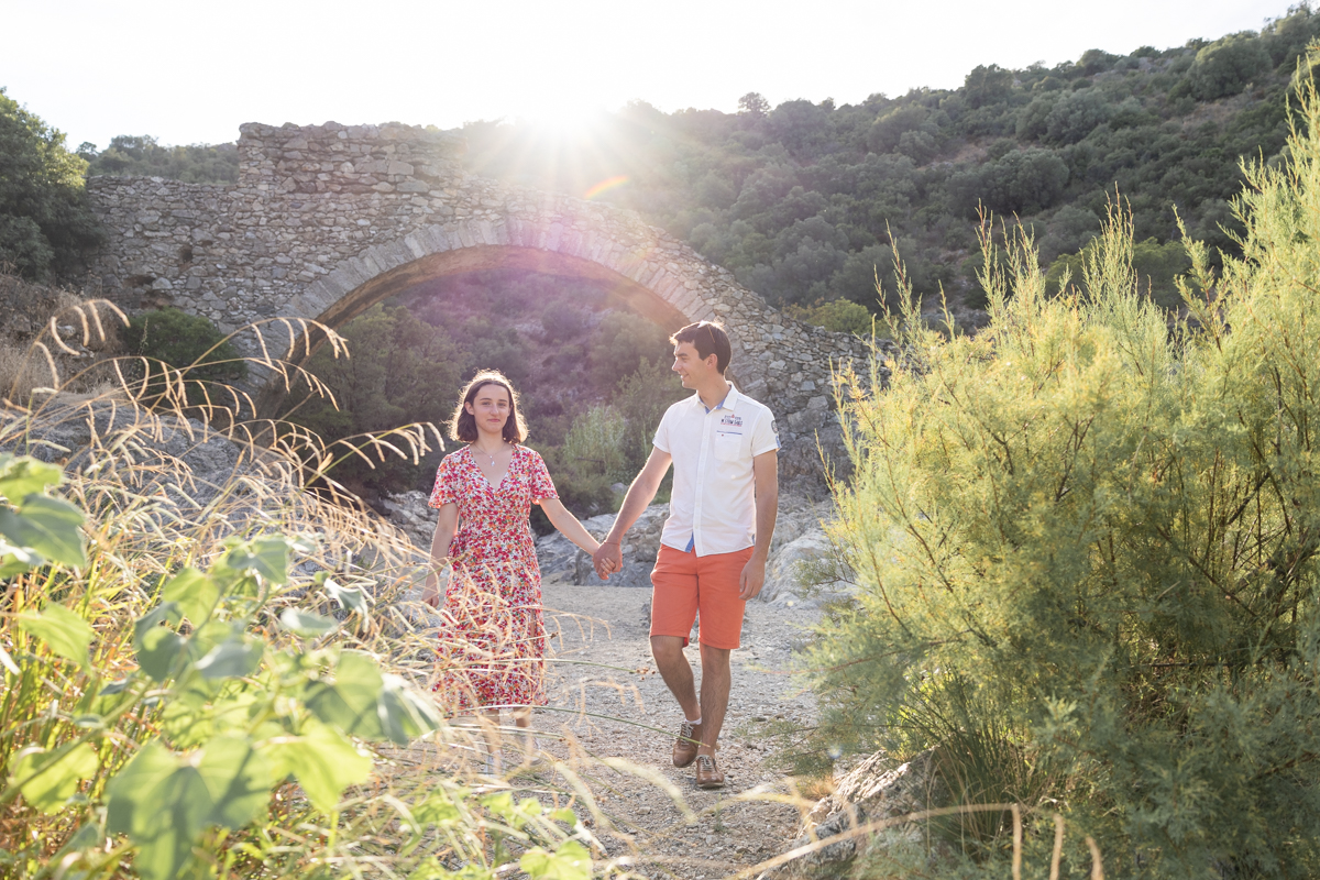 J’ai connu les parents de Baptiste lors de nos vacances familiales à Grimaud alors qu’il avait environ 12 ans, et depuis je l’ai vu grandir quasiment d’année en année. Aujourd’hui c’est un jeune homme heureux et amoureux que je retrouve à l’occasion de sa séance de couple avec Camille, sa future épouse, leur mariage étant prévu l’année prochaine. Puisque nous nous sommes retrouvés à Grimaud, il fallait que je les emmène au Pont des Fées, ce sublime vallon encore authentique et sauvage, au milieu duquel surgit un magnifique pont de pierre, et qui constitue un but de promenade très agréable, surtout pendant la golden hour. C’est un endroit que j’affectionne particulièrement, et dans lequel j’avais toujours voulu photographier des amoureux voire des mariés, c’est maintenant chose faite!