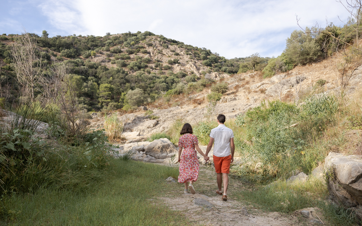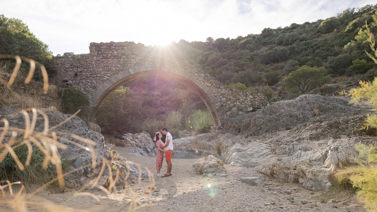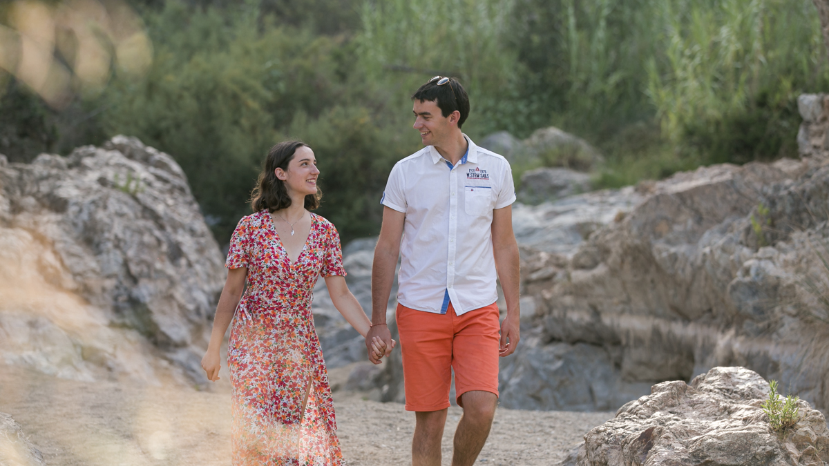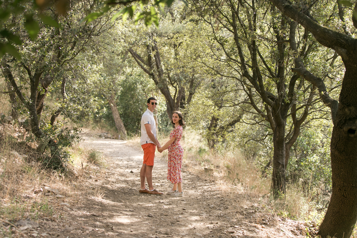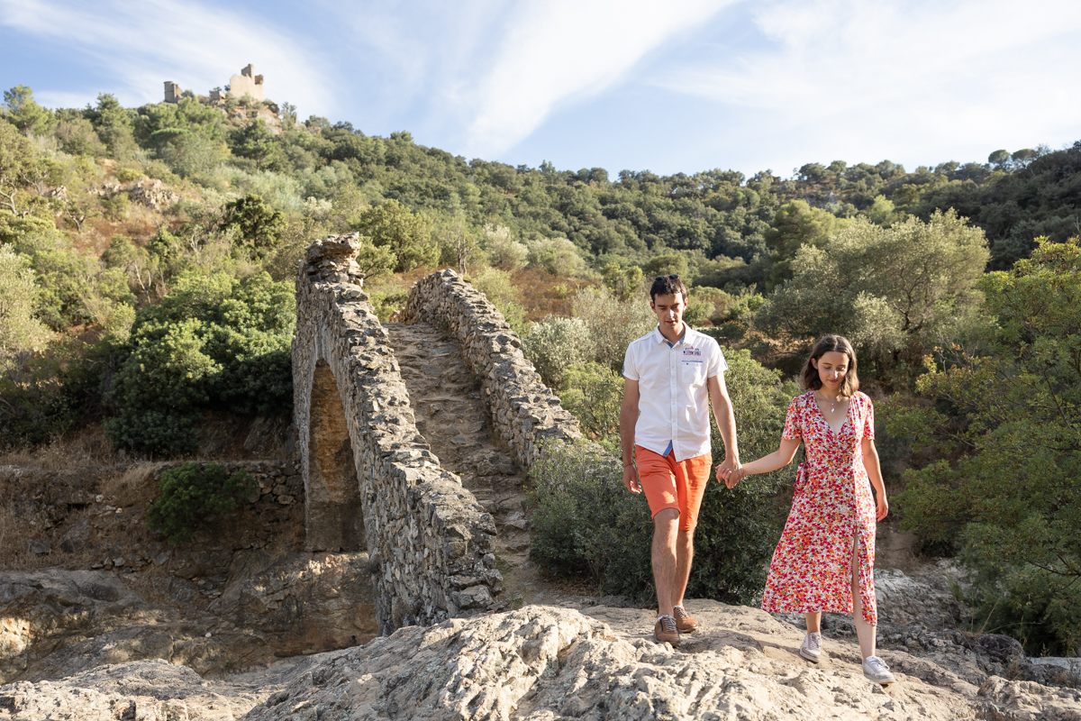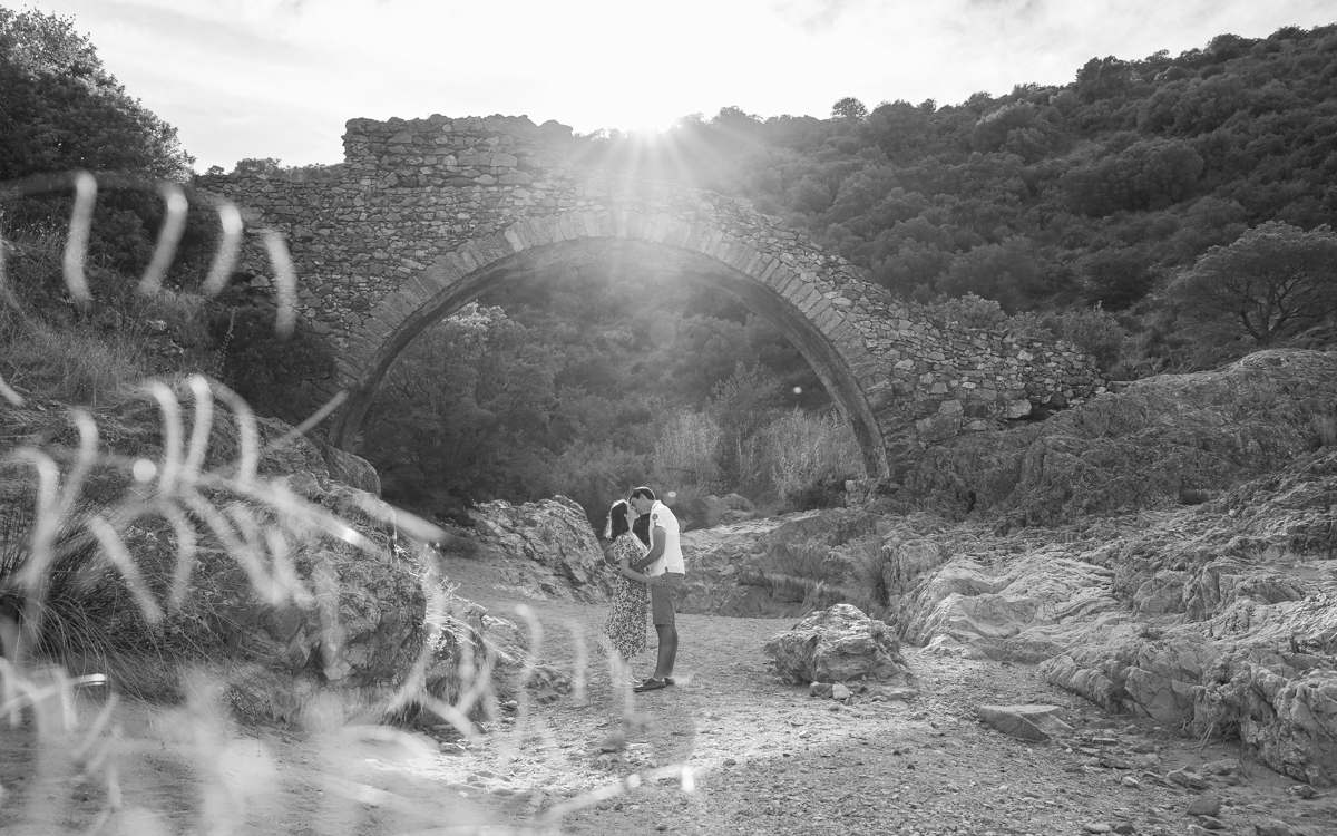 J’ai connu les parents de Baptiste lors de nos vacances familiales à Grimaud alors qu’il avait environ 12 ans, et depuis je l’ai vu grandir quasiment d’année en année. Aujourd’hui c’est un jeune homme heureux et amoureux que je retrouve à l’occasion de sa séance de couple avec Camille, sa future épouse, leur mariage étant prévu l’année prochaine. Puisque nous nous sommes retrouvés à Grimaud, il fallait que je les emmène au Pont des Fées, ce sublime vallon encore authentique et sauvage, au milieu duquel surgit un magnifique pont de pierre, et qui constitue un but de promenade très agréable, surtout pendant la golden hour. C’est un endroit que j’affectionne particulièrement, et dans lequel j’avais toujours voulu photographier des amoureux voire des mariés, c’est maintenant chose faite!