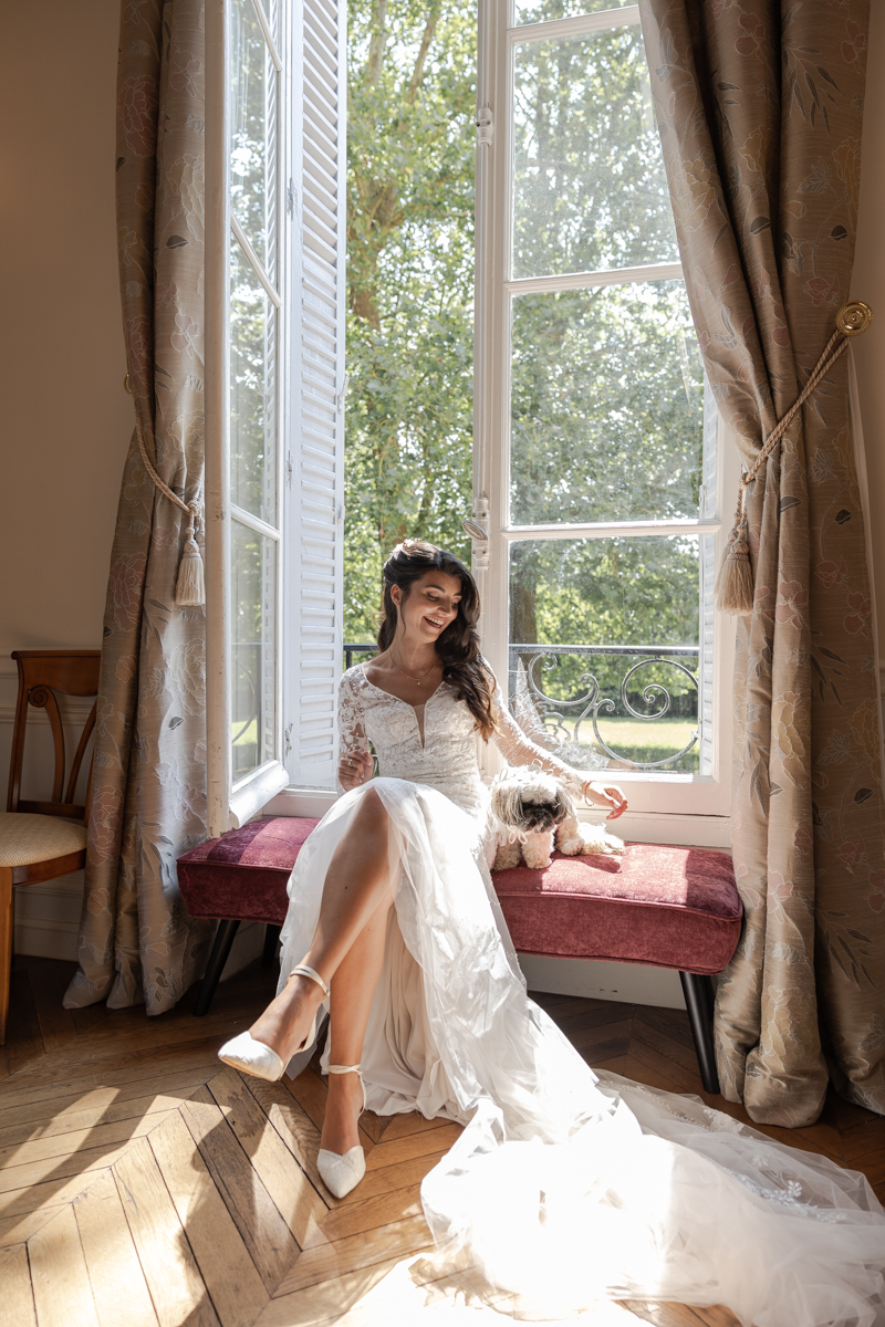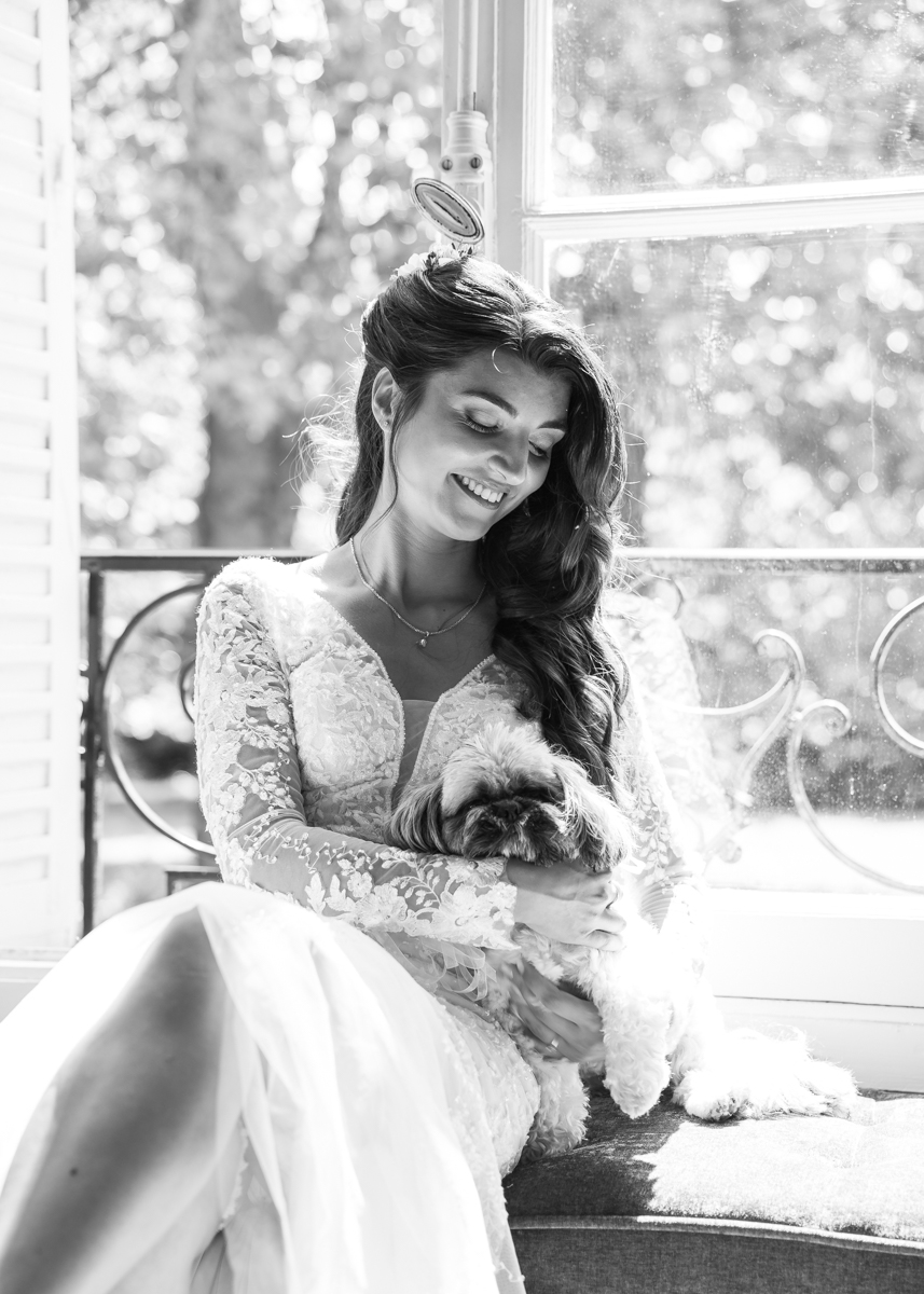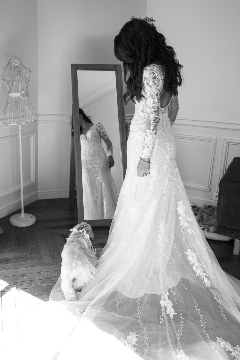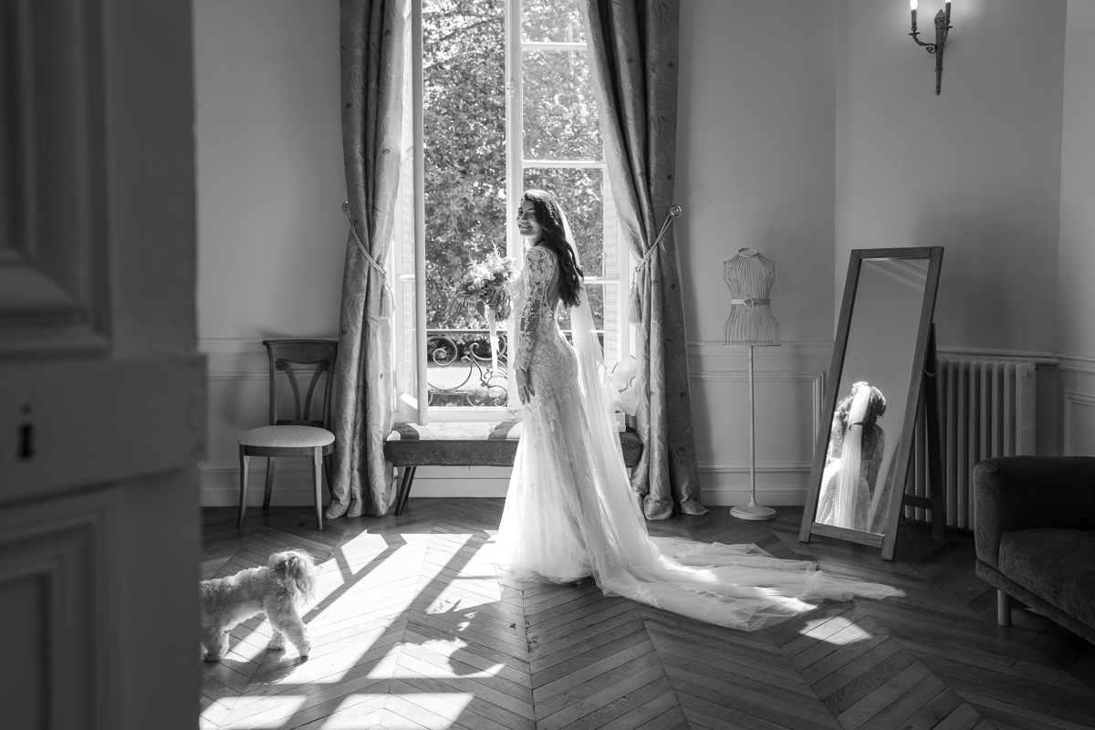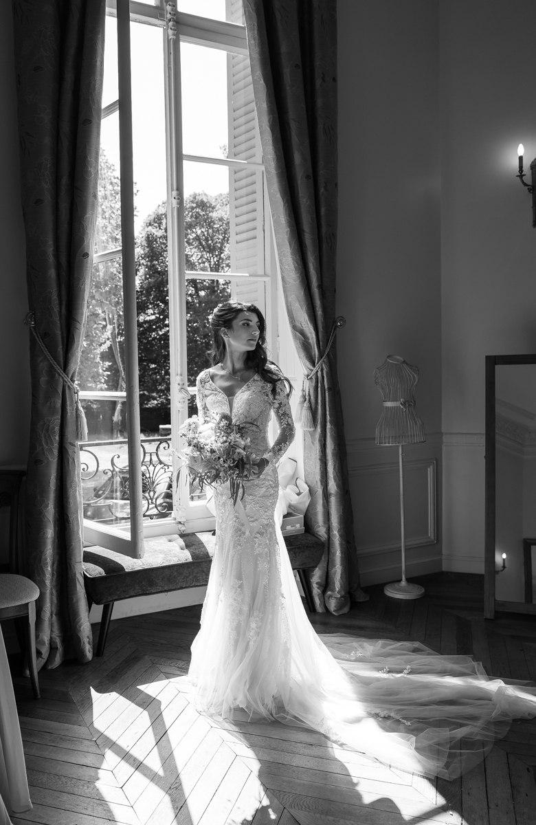 Le temps a passé, et puis, « comme une évidence » selon ses propres dires – elle m’a demandé d’immortaliser cette journée dont elle rêvait depuis tellement longtemps. Le très beau et lumineux Château de Santeny, prêté par son patron, constituait un décor de rêve pour celle qui y voit défiler des mariées et shootings toutes les semaines, tandis que le prêtre de l’église toute proche avait fait une cérémonie religieuse pleine de surprises. Bref, ce fut une journée inoubliable!