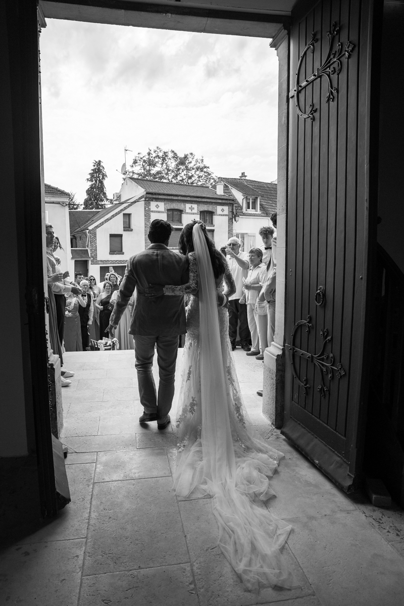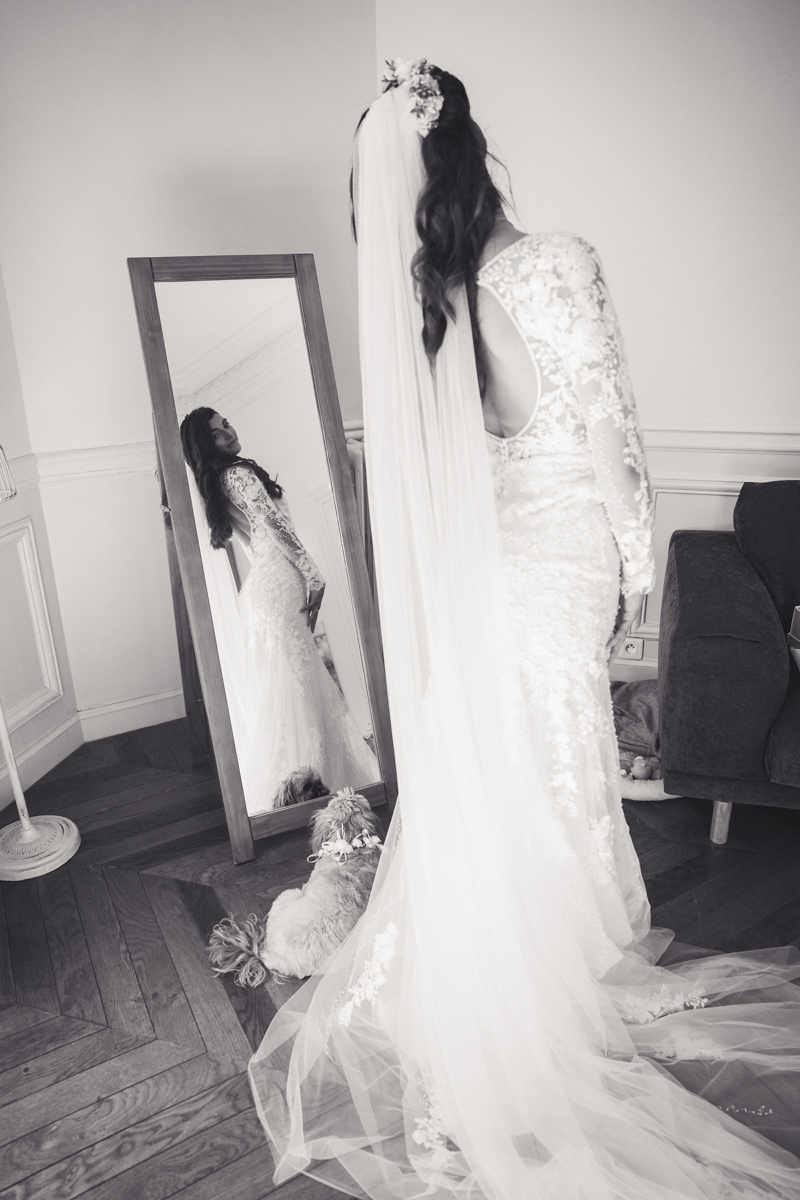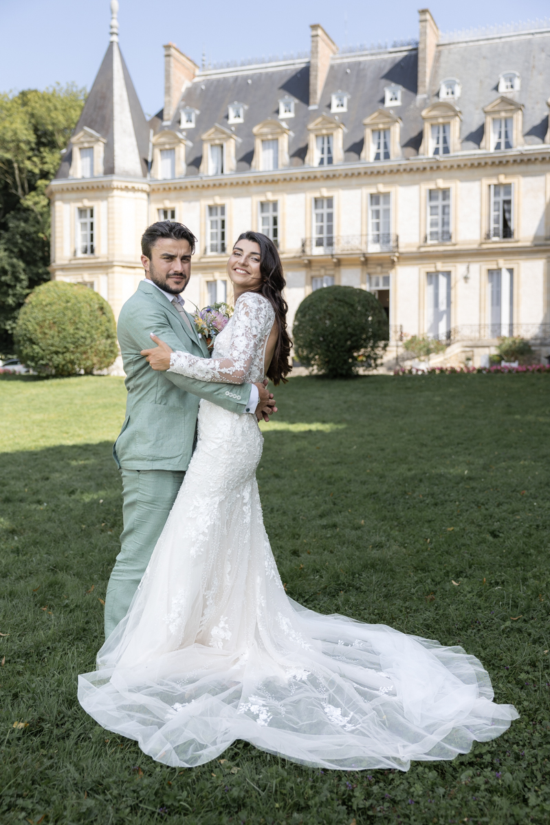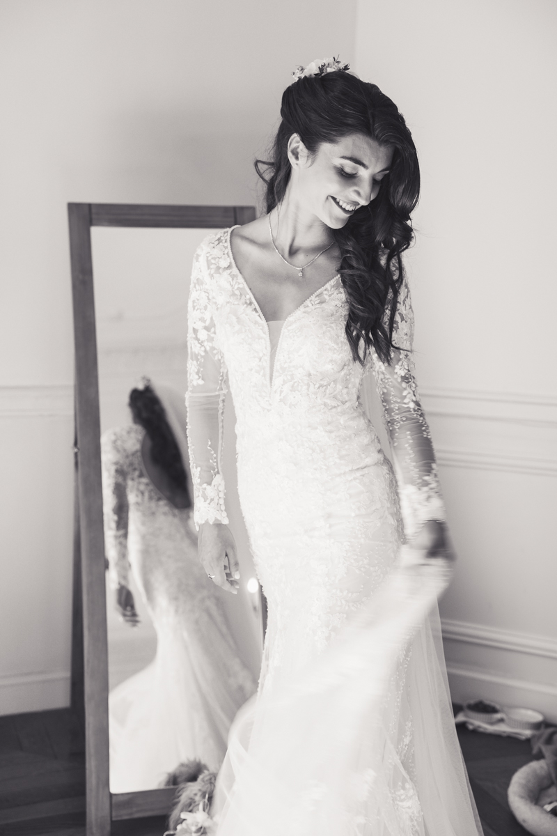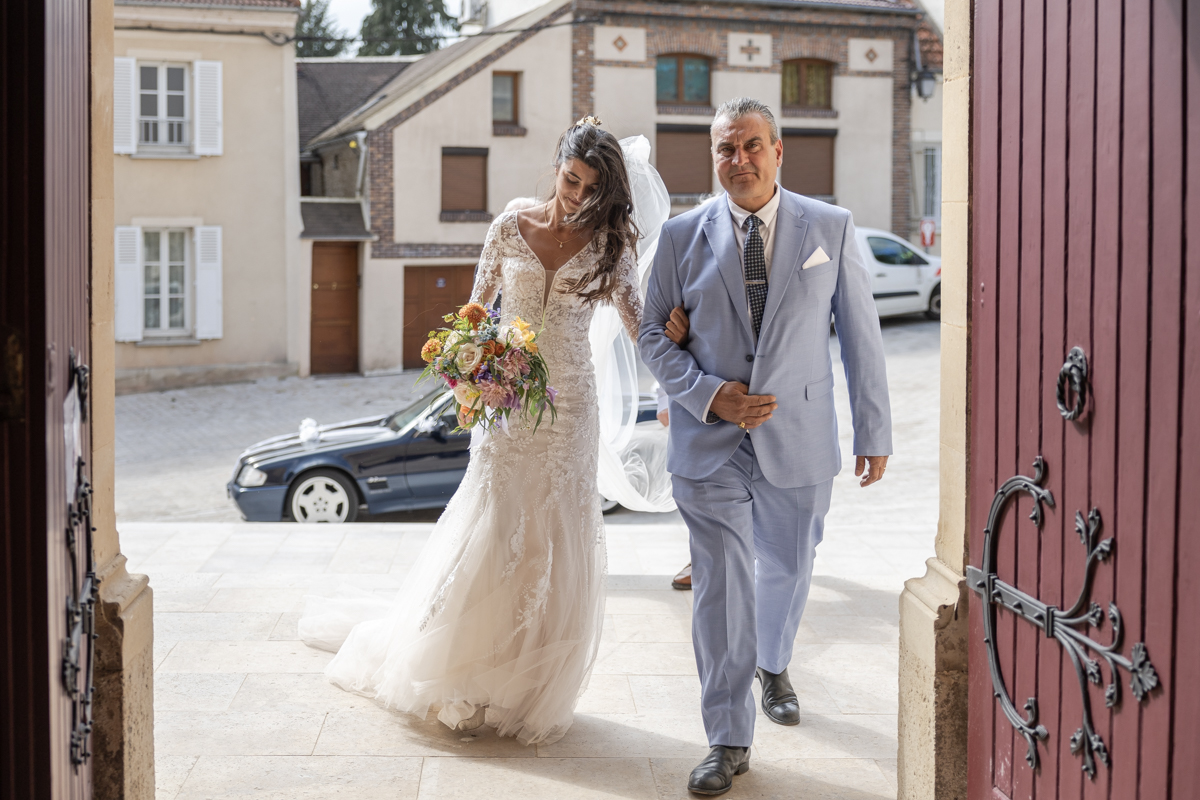 Le temps a passé, et puis, « comme une évidence » selon ses propres dires – elle m’a demandé d’immortaliser cette journée dont elle rêvait depuis tellement longtemps. Le très beau et lumineux Château de Santeny, prêté par son patron, constituait un décor de rêve pour celle qui y voit défiler des mariées et shootings toutes les semaines, tandis que le prêtre de l’église toute proche avait fait une cérémonie religieuse pleine de surprises. Bref, ce fut une journée inoubliable!