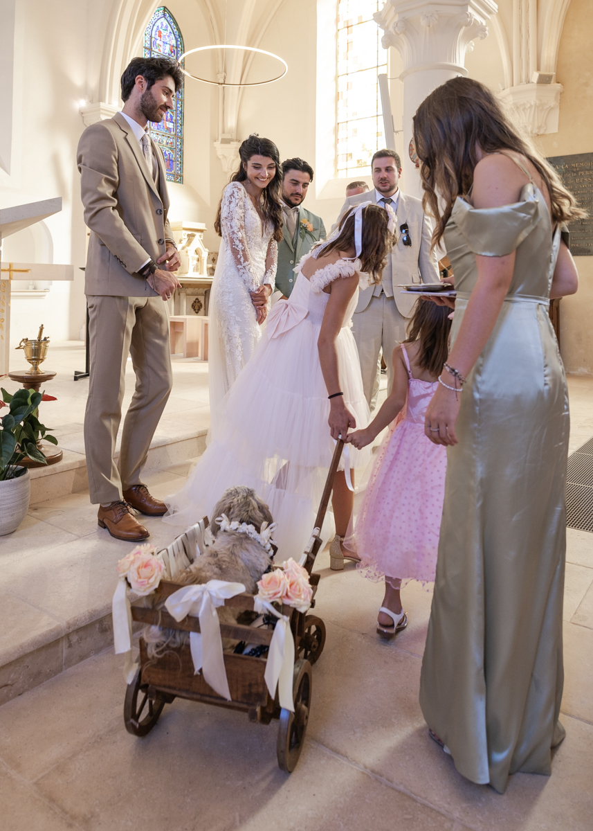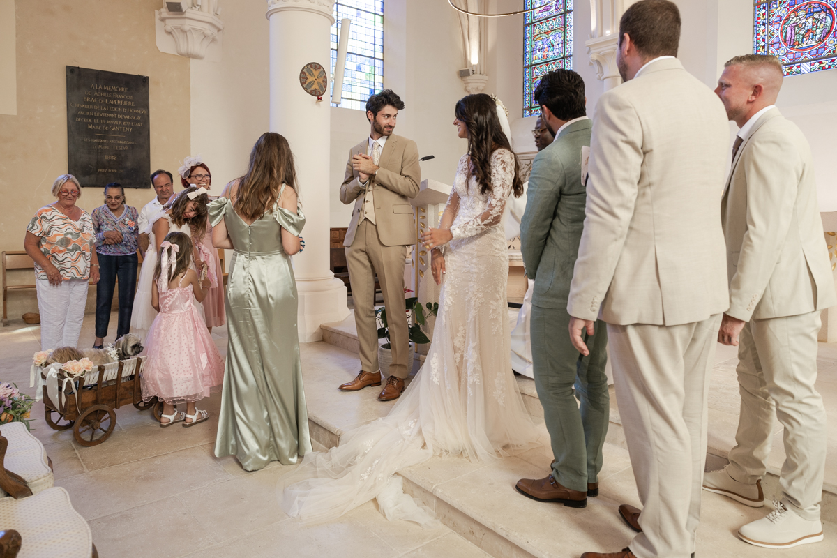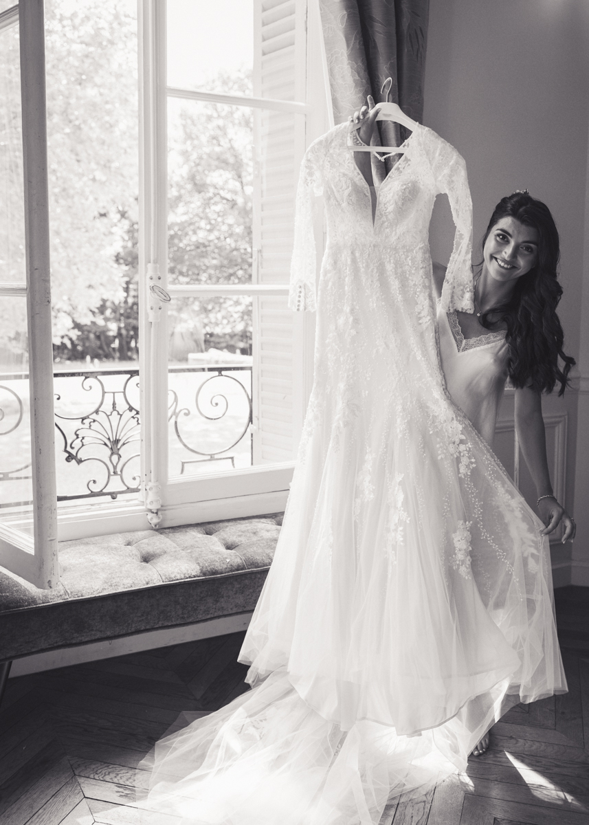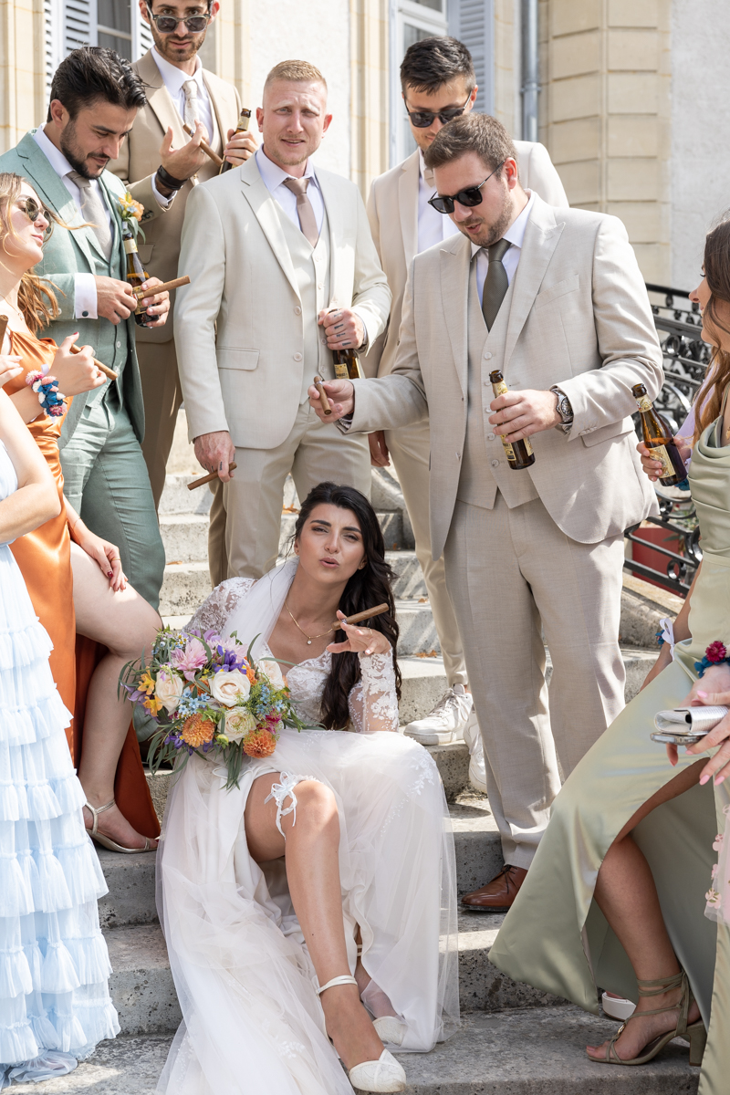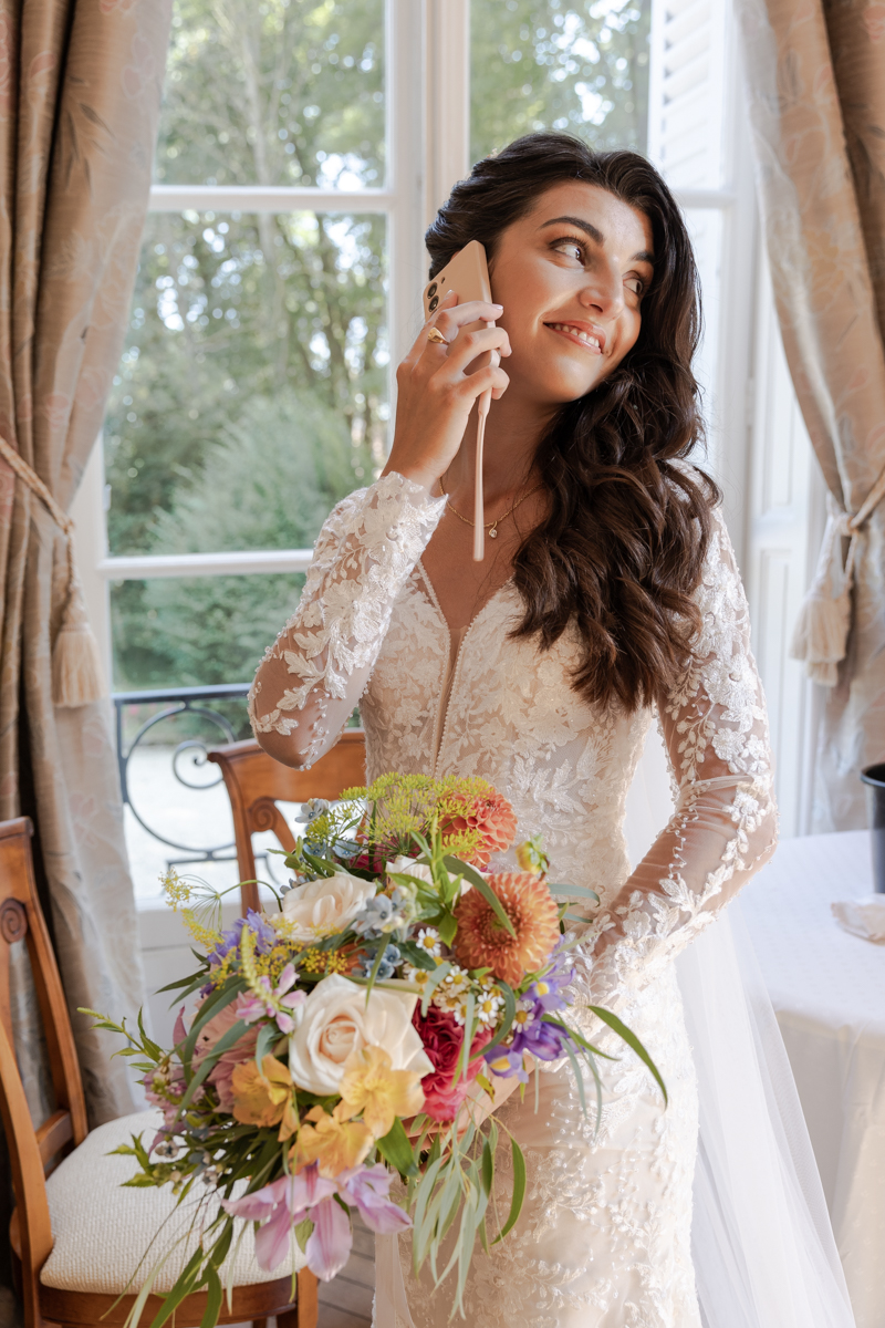 Le temps a passé, et puis, « comme une évidence » selon ses propres dires – elle m’a demandé d’immortaliser cette journée dont elle rêvait depuis tellement longtemps. Le très beau et lumineux Château de Santeny, prêté par son patron, constituait un décor de rêve pour celle qui y voit défiler des mariées et shootings toutes les semaines, tandis que le prêtre de l’église toute proche avait fait une cérémonie religieuse pleine de surprises. Bref, ce fut une journée inoubliable!