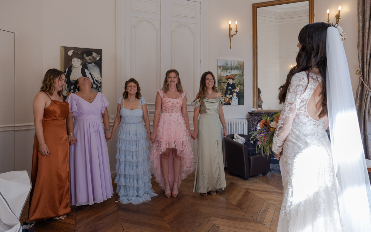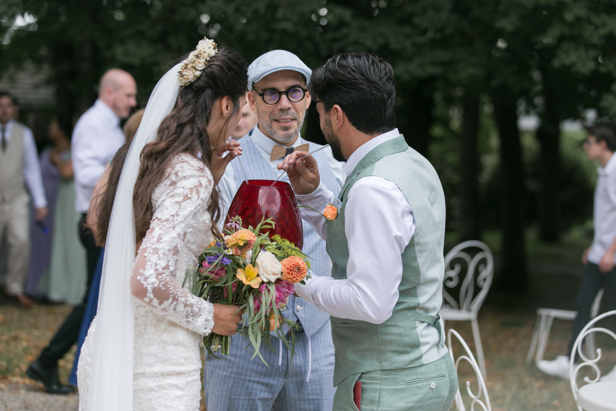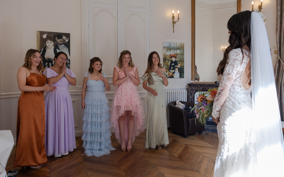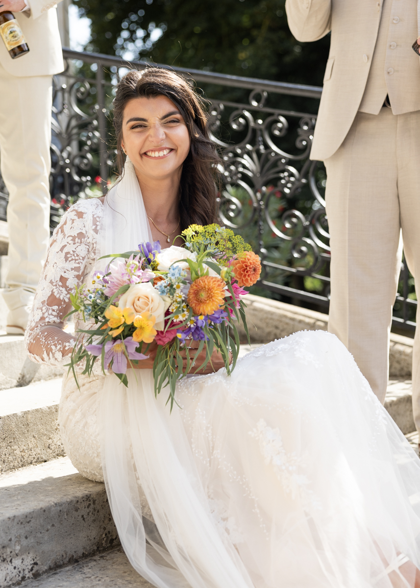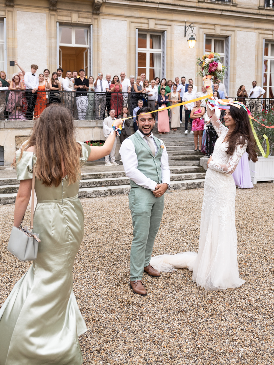Le temps a passé, et puis, « comme une évidence » selon ses propres dires – elle m’a demandé d’immortaliser cette journée dont elle rêvait depuis tellement longtemps. Le très beau et lumineux Château de Santeny, prêté par son patron, constituait un décor de rêve pour celle qui y voit défiler des mariées et shootings toutes les semaines, tandis que le prêtre de l’église toute proche avait fait une cérémonie religieuse pleine de surprises. Bref, ce fut une journée inoubliable!