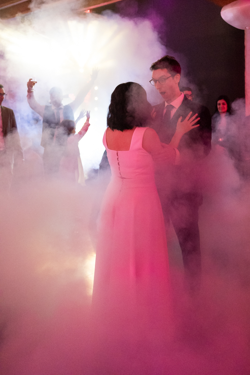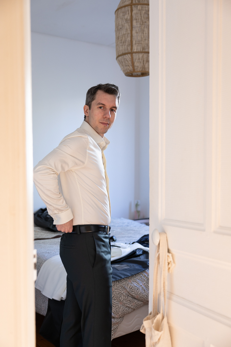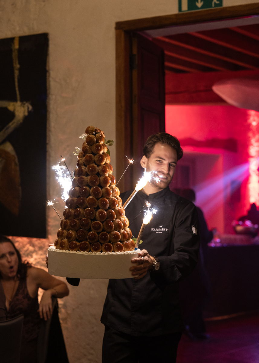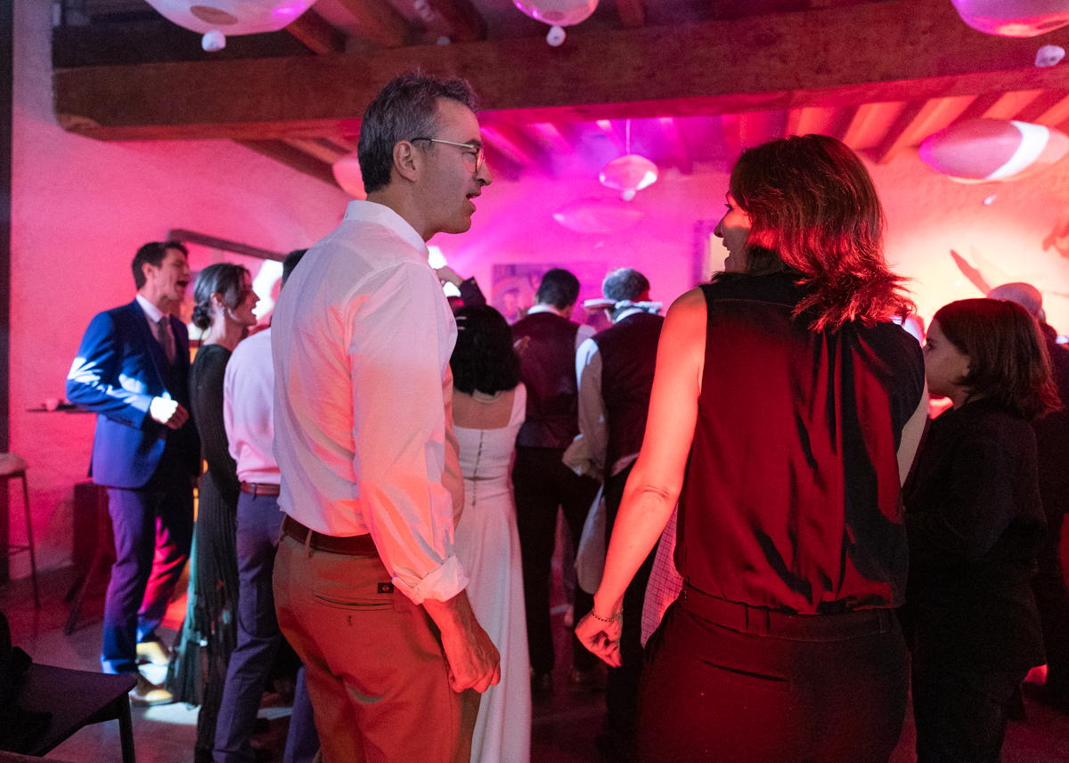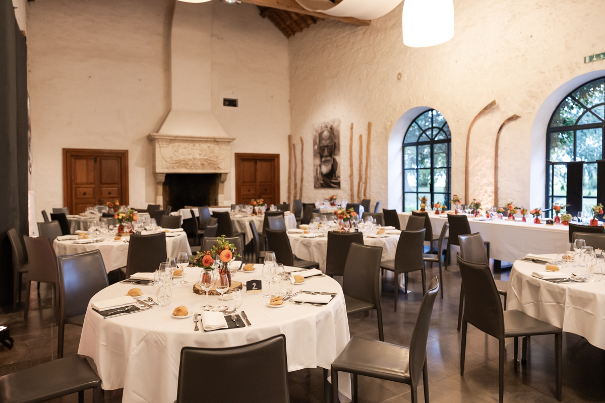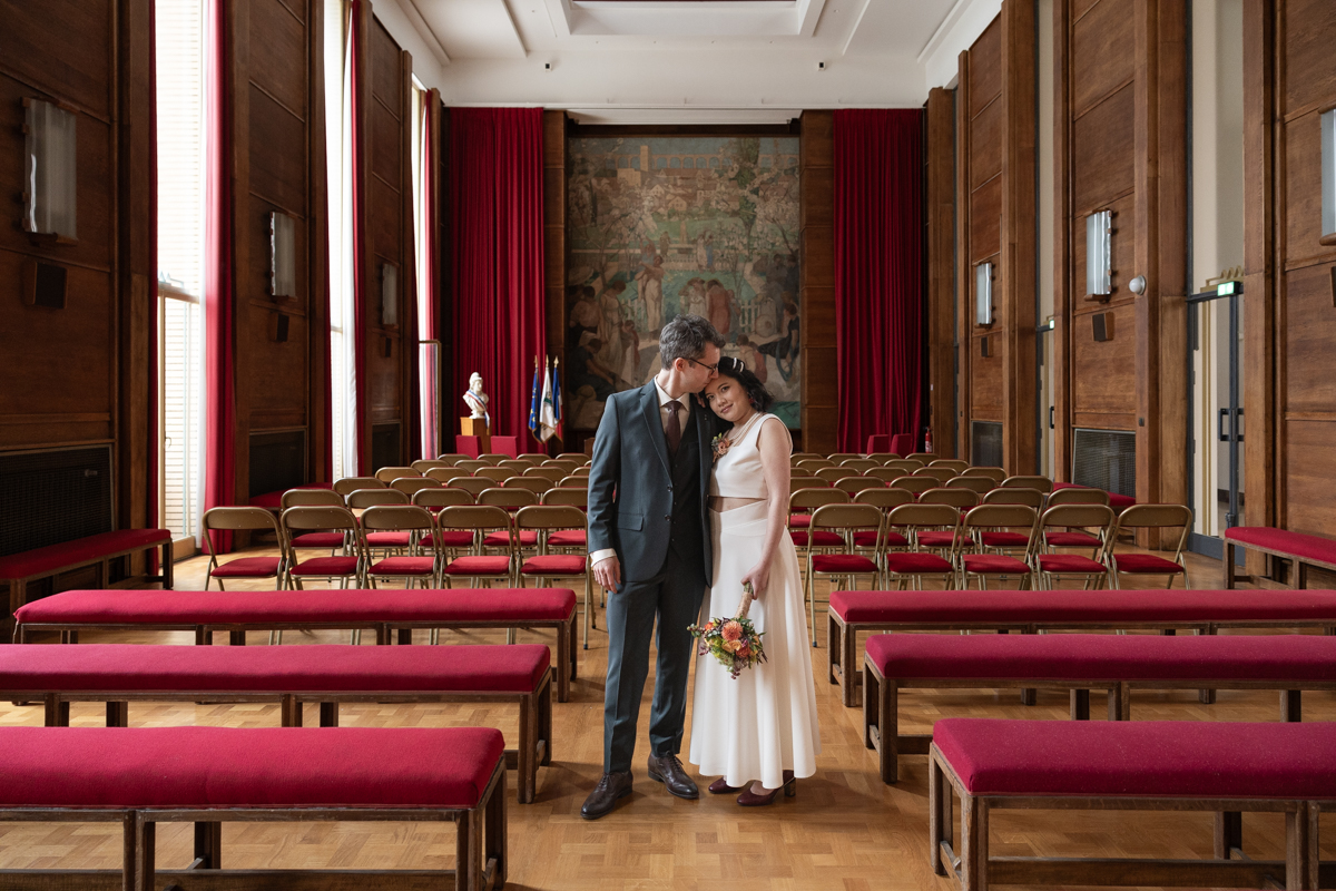 Kim-Mai et Sébastien ont retrouvé leurs nombreux amis à la mairie de Cachan, à quelques pas à peine de leur domicile, à l’occasion de leur mariage civil, avant de continuer les festivités au Domaine de Quincampoix. Kim-Mai portait un ensemble en crêpe fermé par des boutons en nacre, qui faisaient écho au superbe collier de famille, composé de plusieurs rangs de perles retenus par un magnifique boucle en forme de fleur. Leur petite fille arborait une tenue blanche également pour l’occasion. Pendant la réception et le dîner les animations se sont succédé au grand plaisir des invités, qui se sont ensuite déchainés sur la piste de danse!