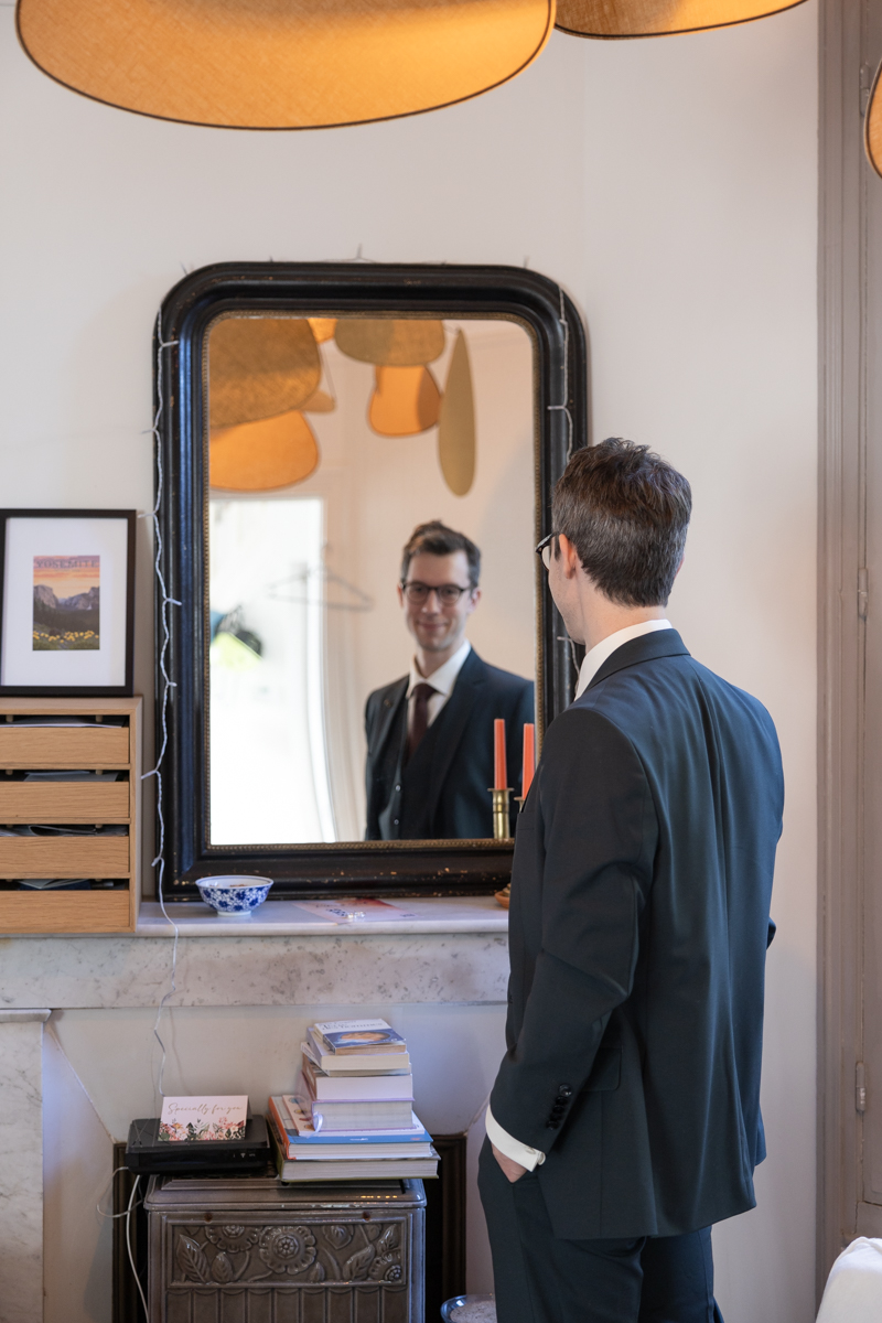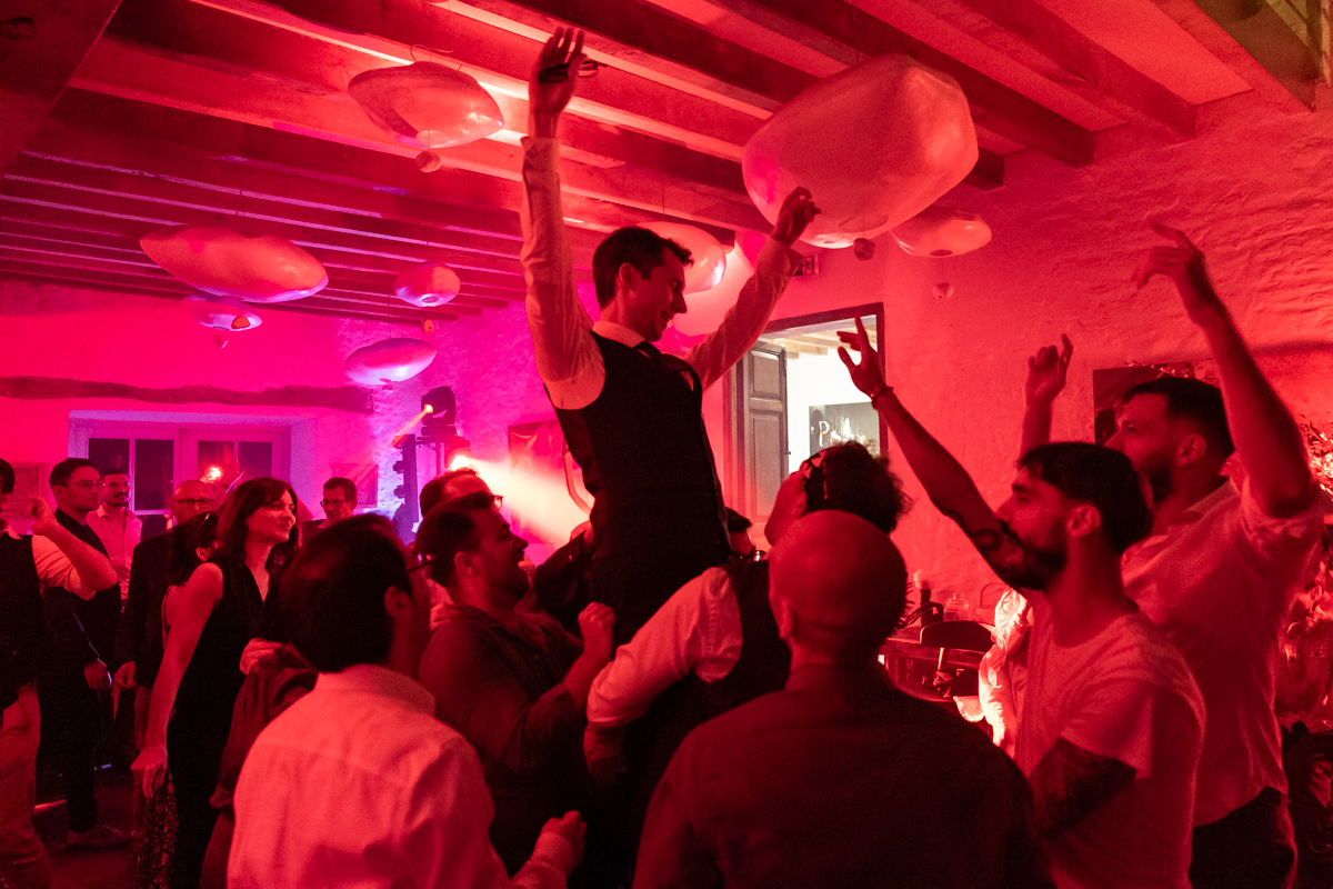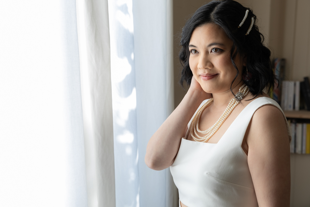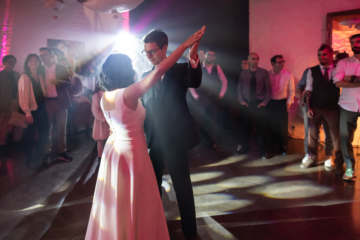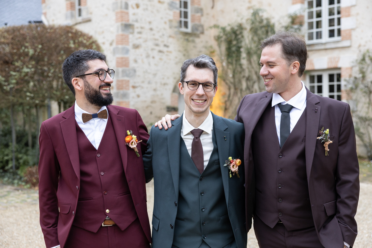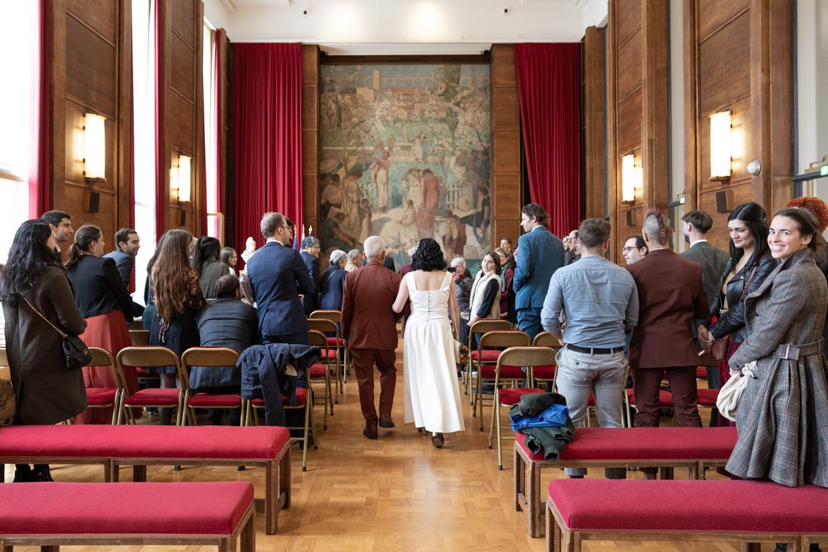 Kim-Mai et Sébastien ont retrouvé leurs nombreux amis à la mairie de Cachan, à quelques pas à peine de leur domicile, à l’occasion de leur mariage civil, avant de continuer les festivités au Domaine de Quincampoix. Kim-Mai portait un ensemble en crêpe fermé par des boutons en nacre, qui faisaient écho au superbe collier de famille, composé de plusieurs rangs de perles retenus par un magnifique boucle en forme de fleur. Leur petite fille arborait une tenue blanche également pour l’occasion. Pendant la réception et le dîner les animations se sont succédé au grand plaisir des invités, qui se sont ensuite déchainés sur la piste de danse!