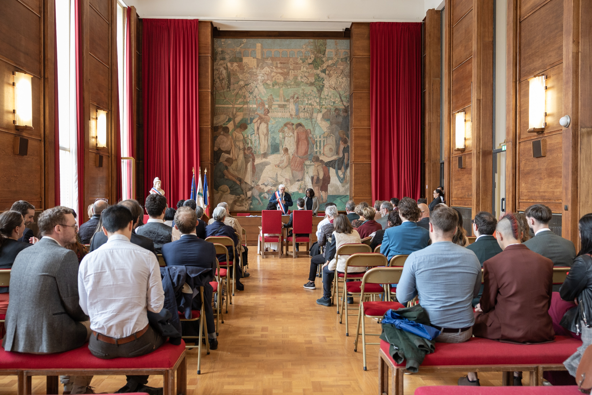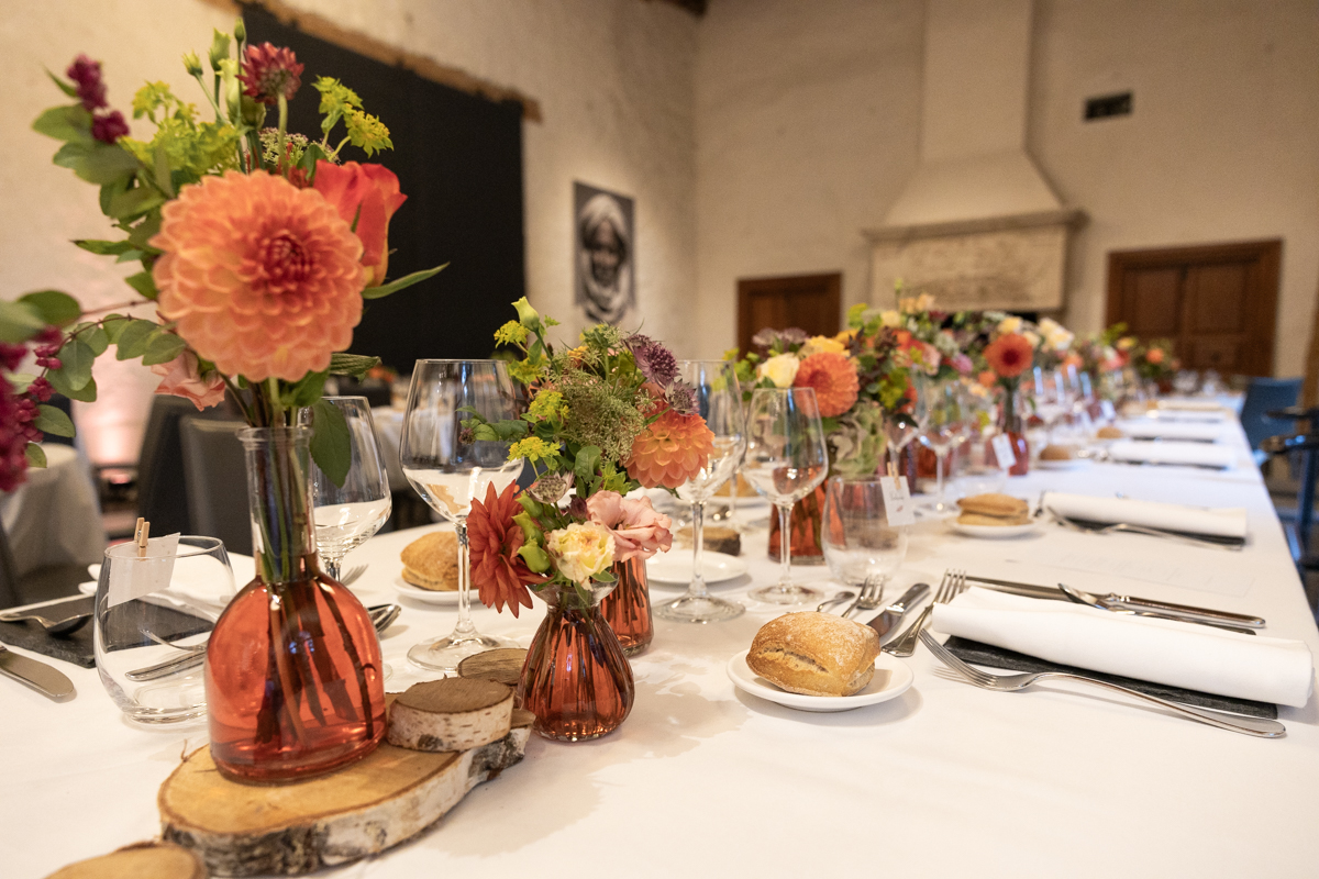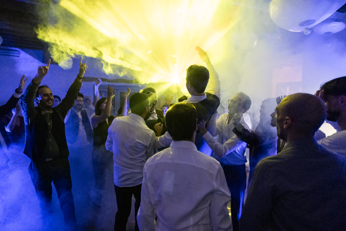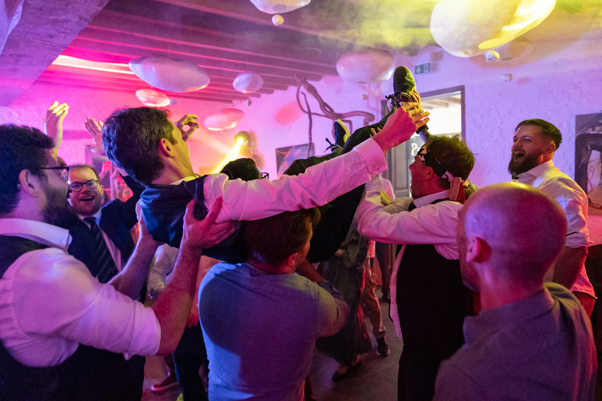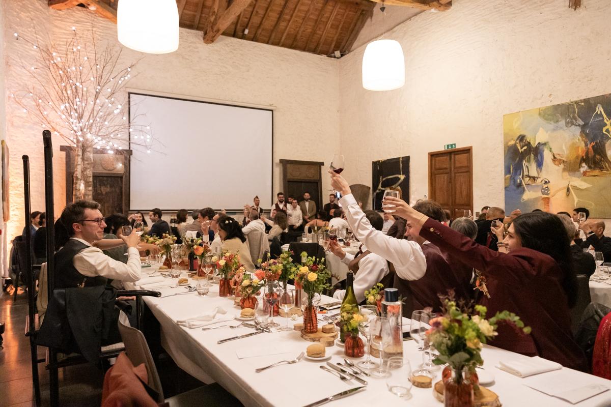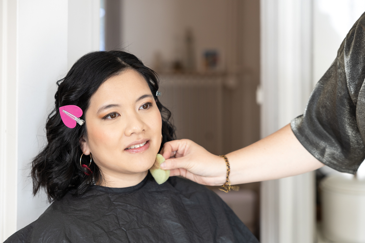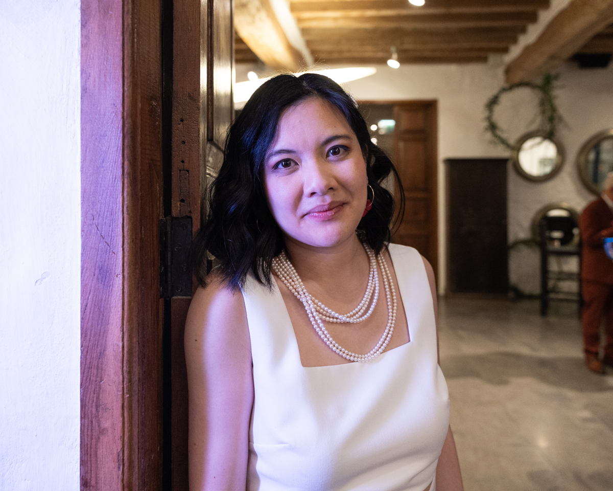 Kim-Mai et Sébastien ont retrouvé leurs nombreux amis à la mairie de Cachan, à quelques pas à peine de leur domicile, à l’occasion de leur mariage civil, avant de continuer les festivités au Domaine de Quincampoix. Kim-Mai portait un ensemble en crêpe fermé par des boutons en nacre, qui faisaient écho au superbe collier de famille, composé de plusieurs rangs de perles retenus par un magnifique boucle en forme de fleur. Leur petite fille arborait une tenue blanche également pour l’occasion. Pendant la réception et le dîner les animations se sont succédé au grand plaisir des invités, qui se sont ensuite déchainés sur la piste de danse!