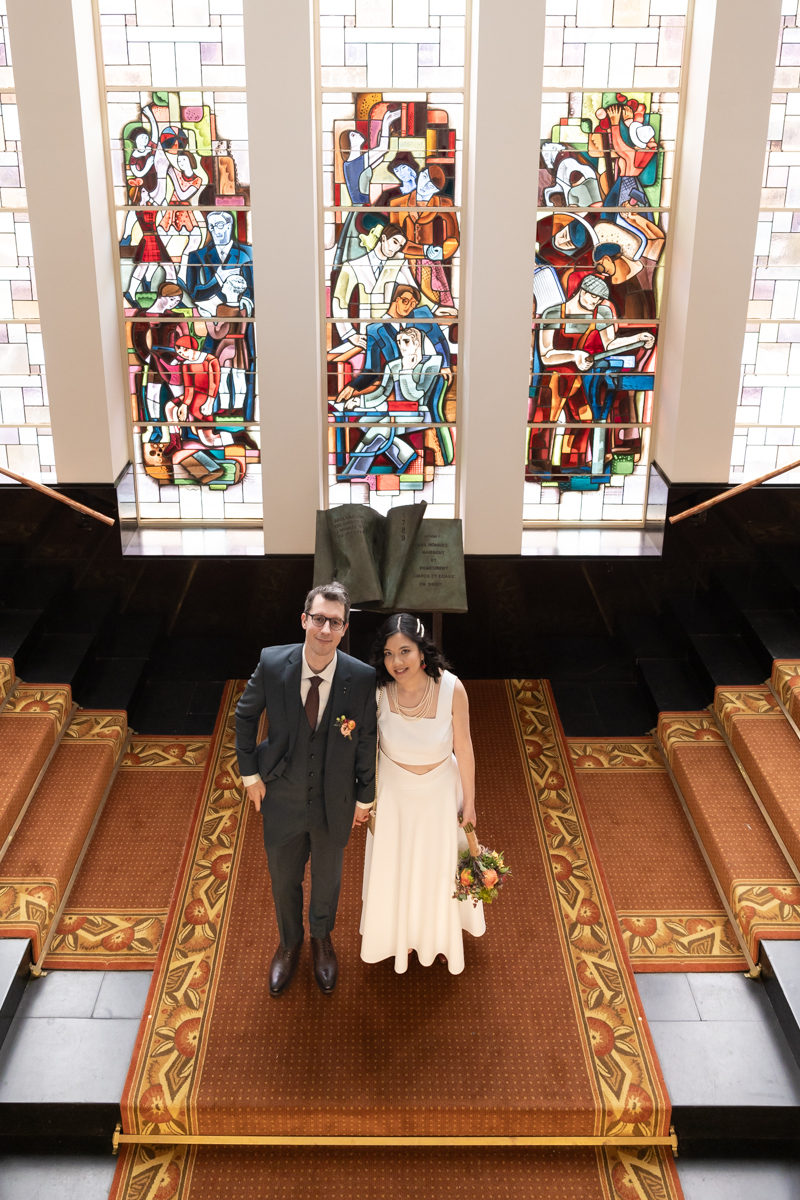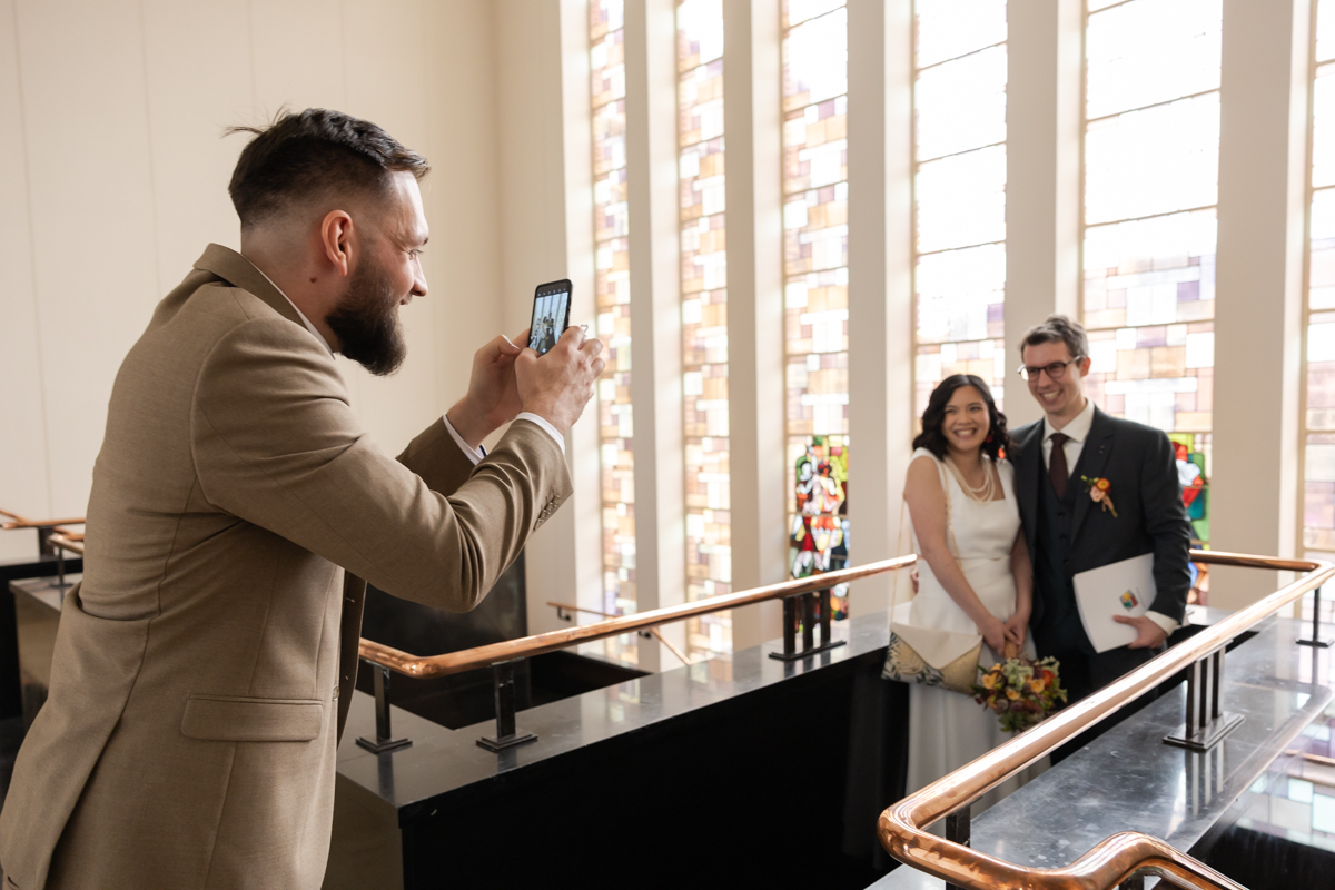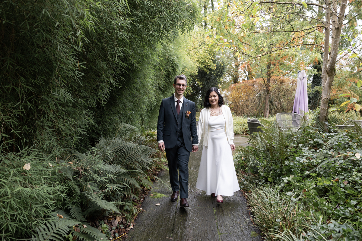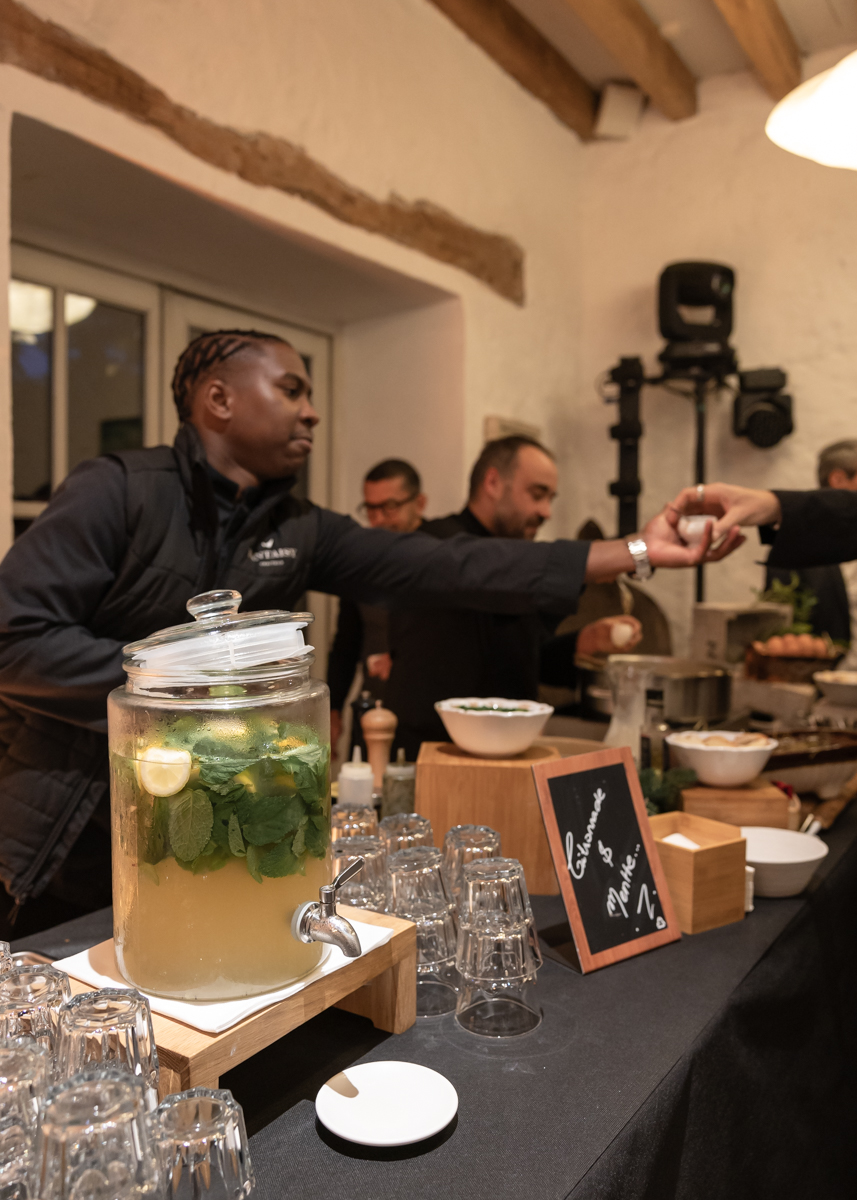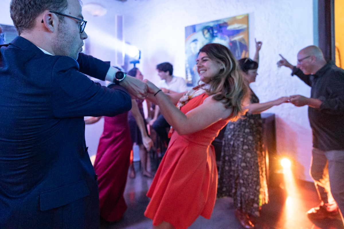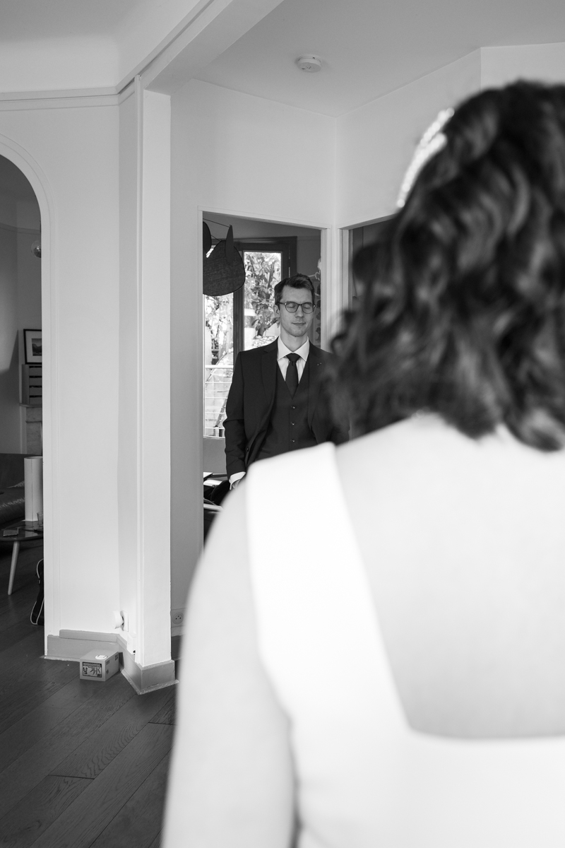 Kim-Mai et Sébastien ont retrouvé leurs nombreux amis à la mairie de Cachan, à quelques pas à peine de leur domicile, à l’occasion de leur mariage civil, avant de continuer les festivités au Domaine de Quincampoix. Kim-Mai portait un ensemble en crêpe fermé par des boutons en nacre, qui faisaient écho au superbe collier de famille, composé de plusieurs rangs de perles retenus par un magnifique boucle en forme de fleur. Leur petite fille arborait une tenue blanche également pour l’occasion. Pendant la réception et le dîner les animations se sont succédé au grand plaisir des invités, qui se sont ensuite déchainés sur la piste de danse!