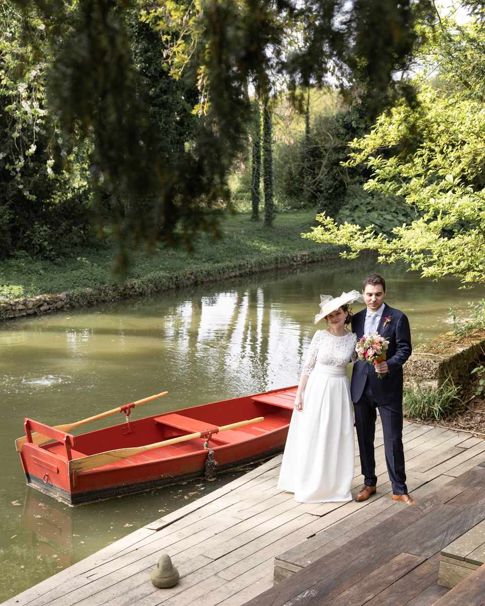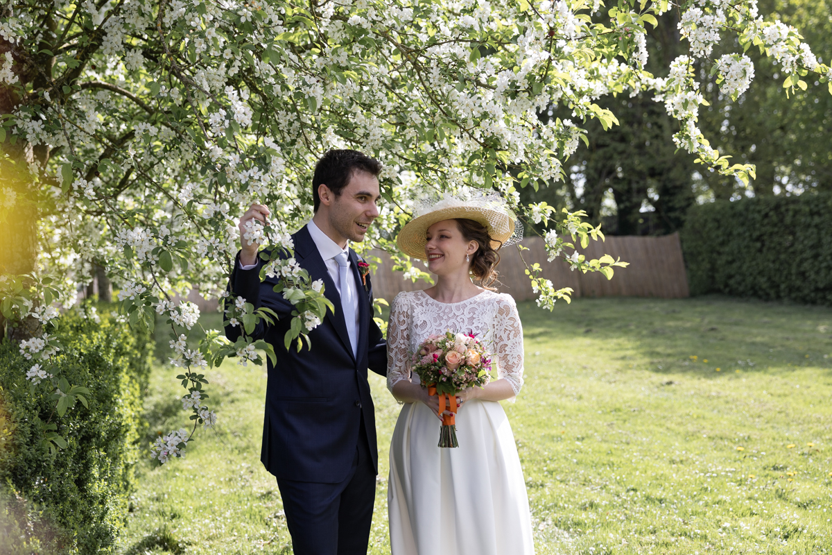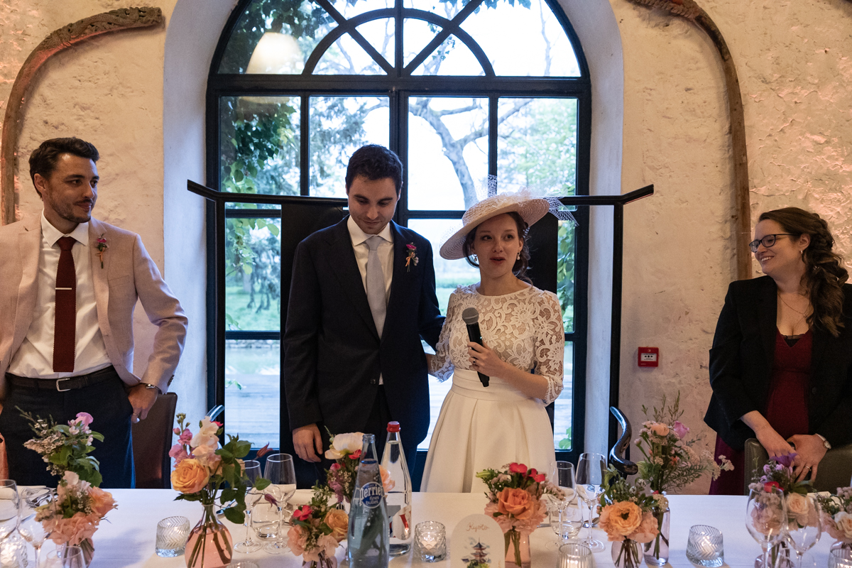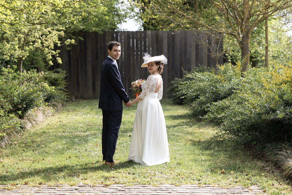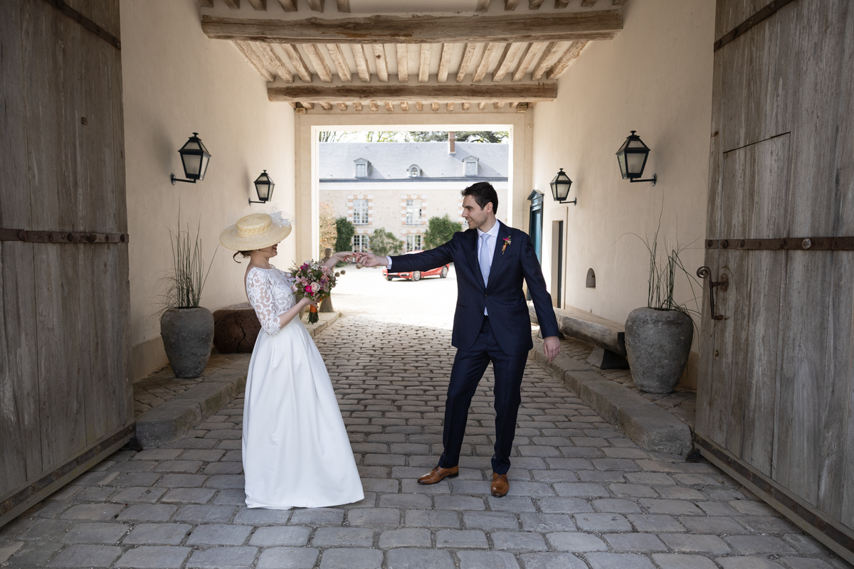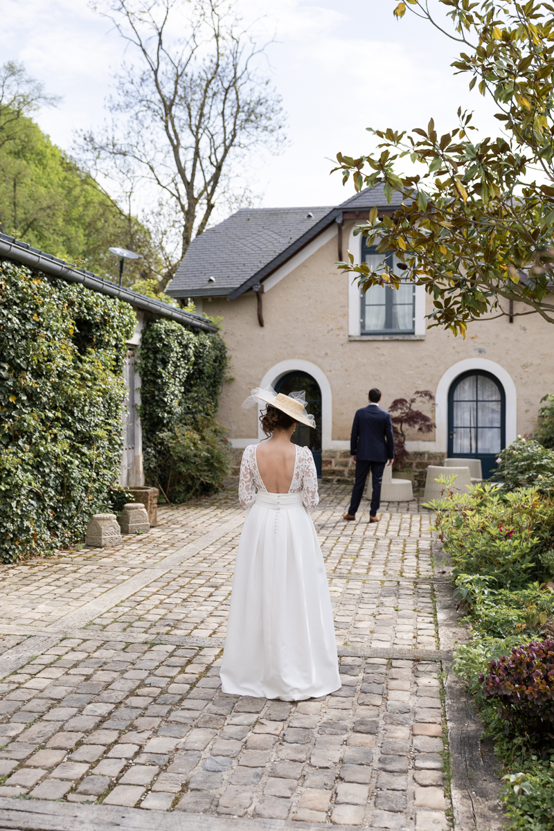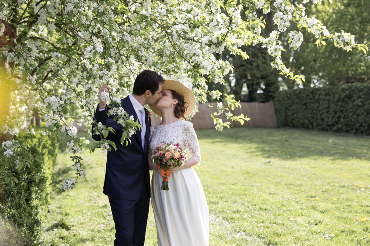 Robe et chapeau de mariée: Victoire – Chaussures : Jonak – Costume du marié : Chaussures : – Alliances et bague de fiançailles: Naravi – Fleurs: Le Fleuriste du Coin – Traiteur: Le Grand Chemin – Papeterie illustrée par Estelle B – DJ Marko – Lieu de réception: Domaine de Quincampoix (91)