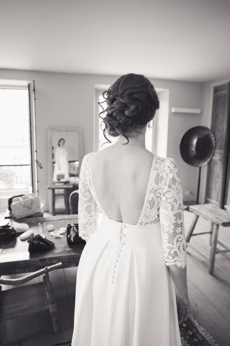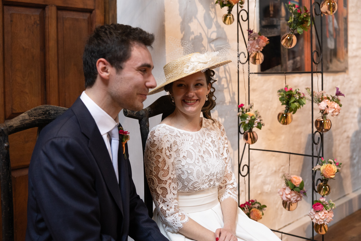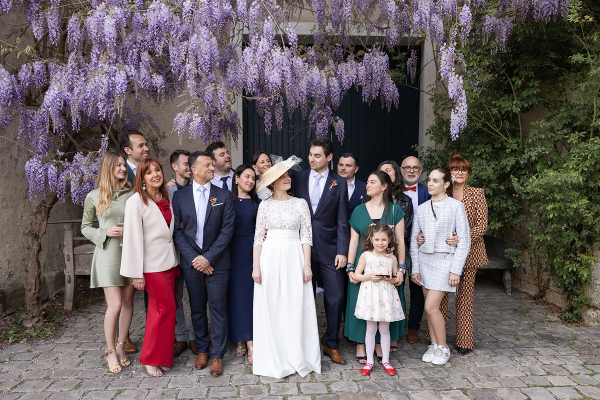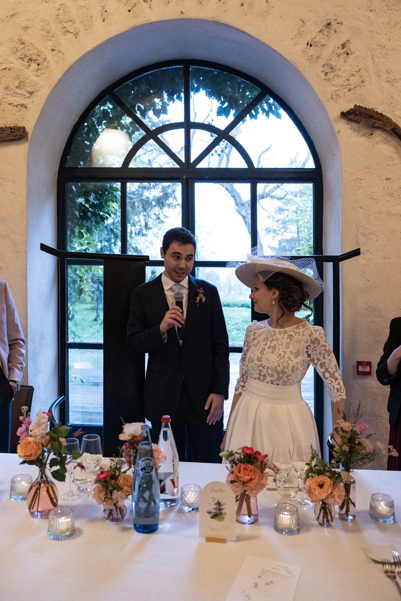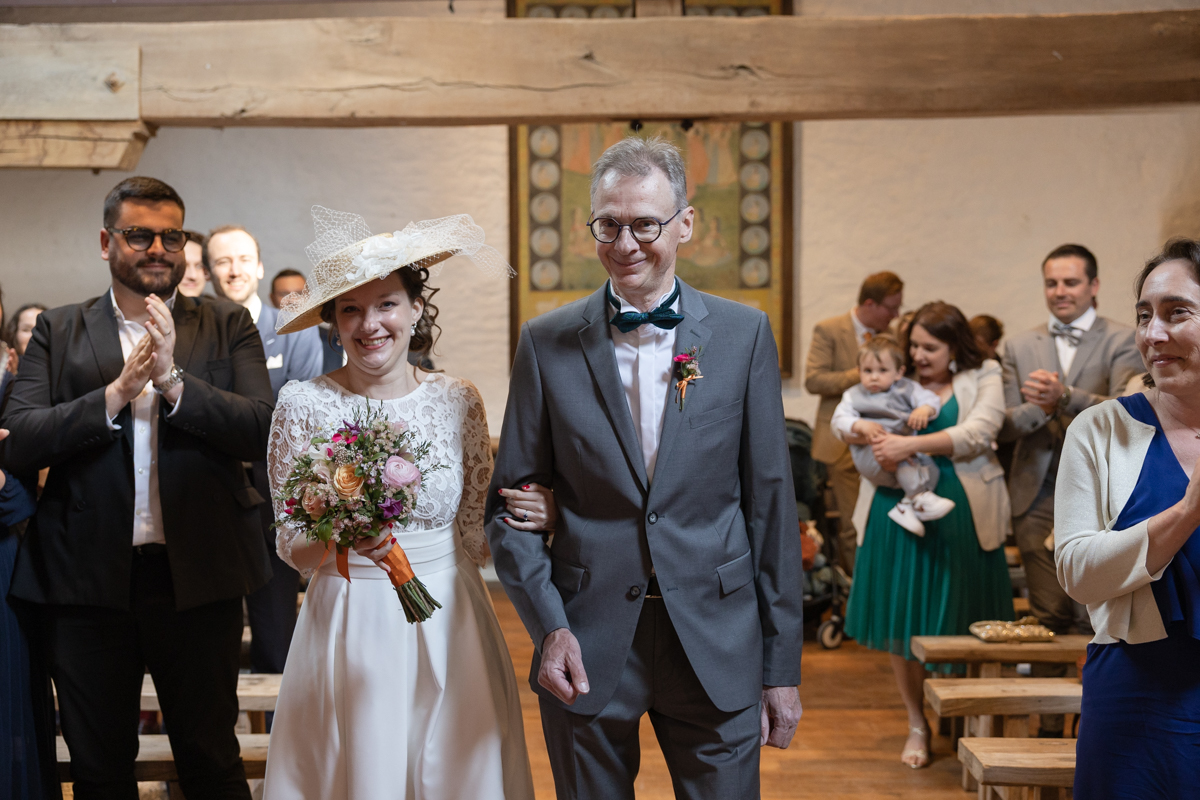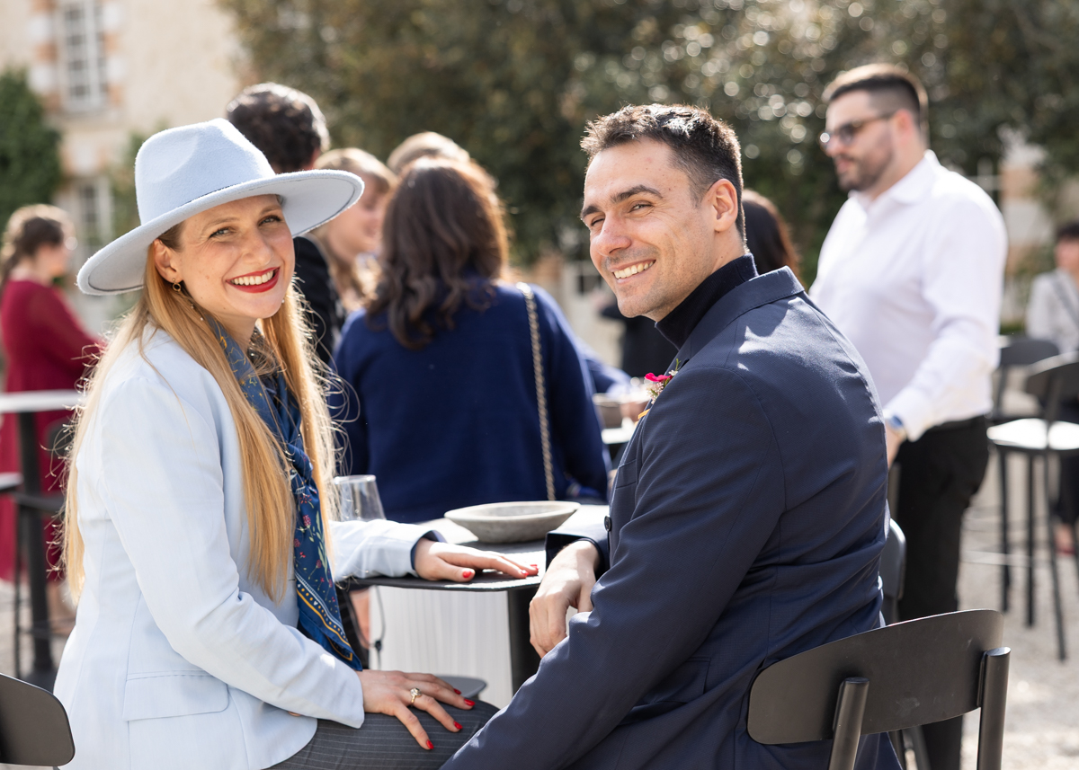 Robe et chapeau de mariée: Victoire – Chaussures : Jonak – Costume du marié : Chaussures : – Alliances et bague de fiançailles: Naravi – Fleurs: Le Fleuriste du Coin – Traiteur: Le Grand Chemin – Papeterie illustrée par Estelle B – DJ Marko – Lieu de réception: Domaine de Quincampoix (91)