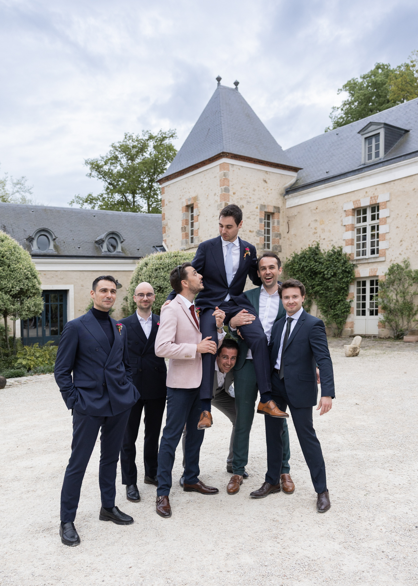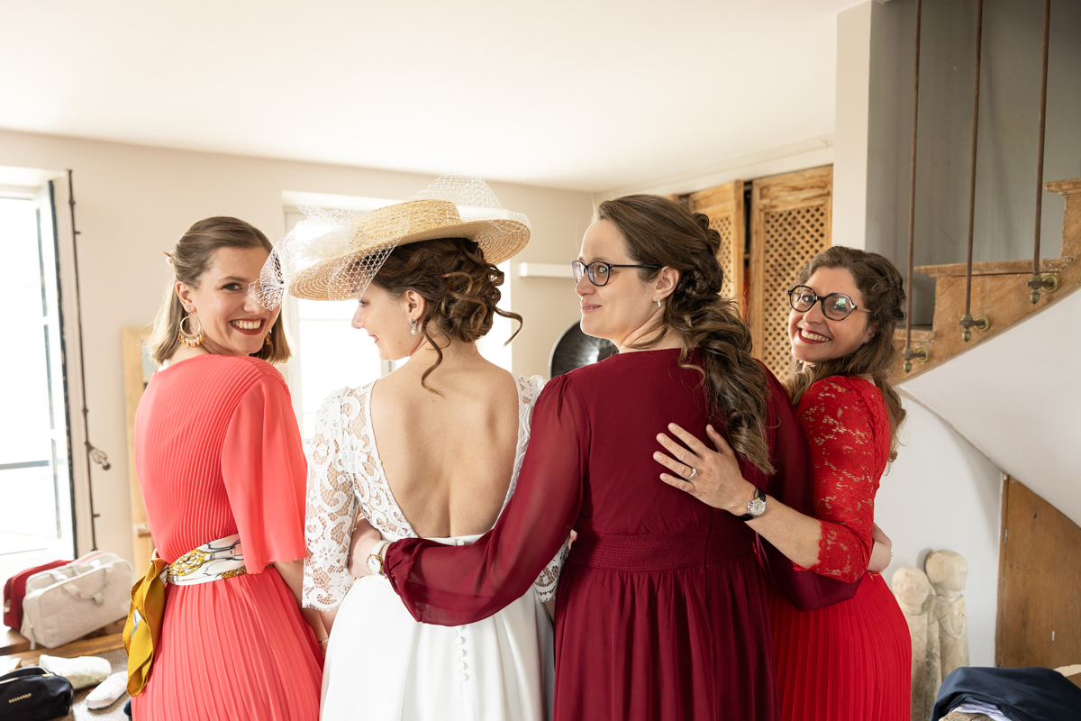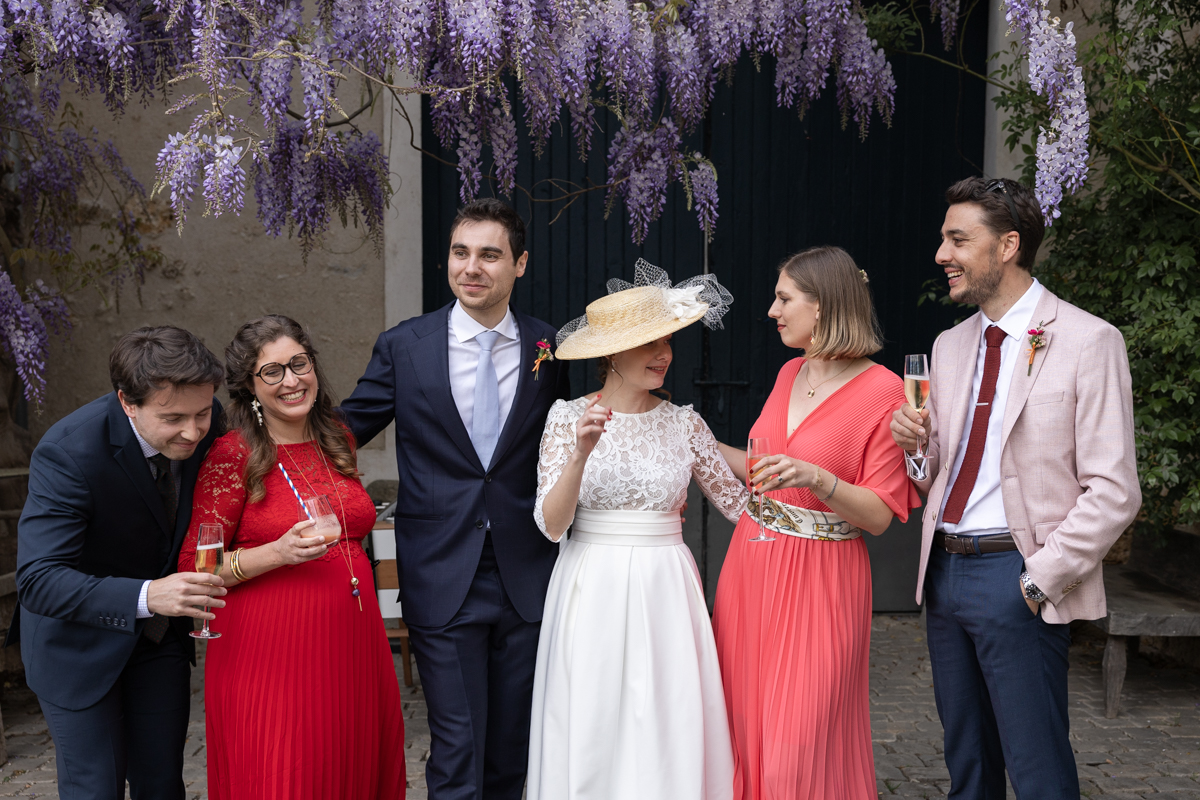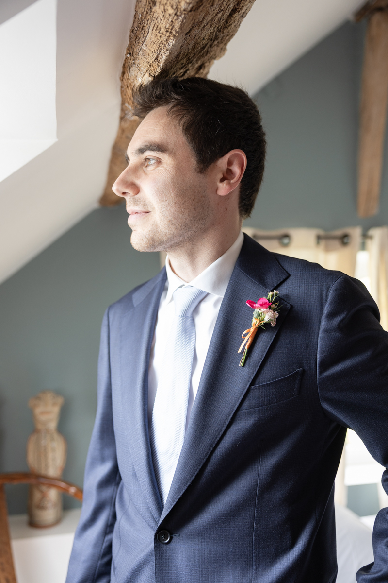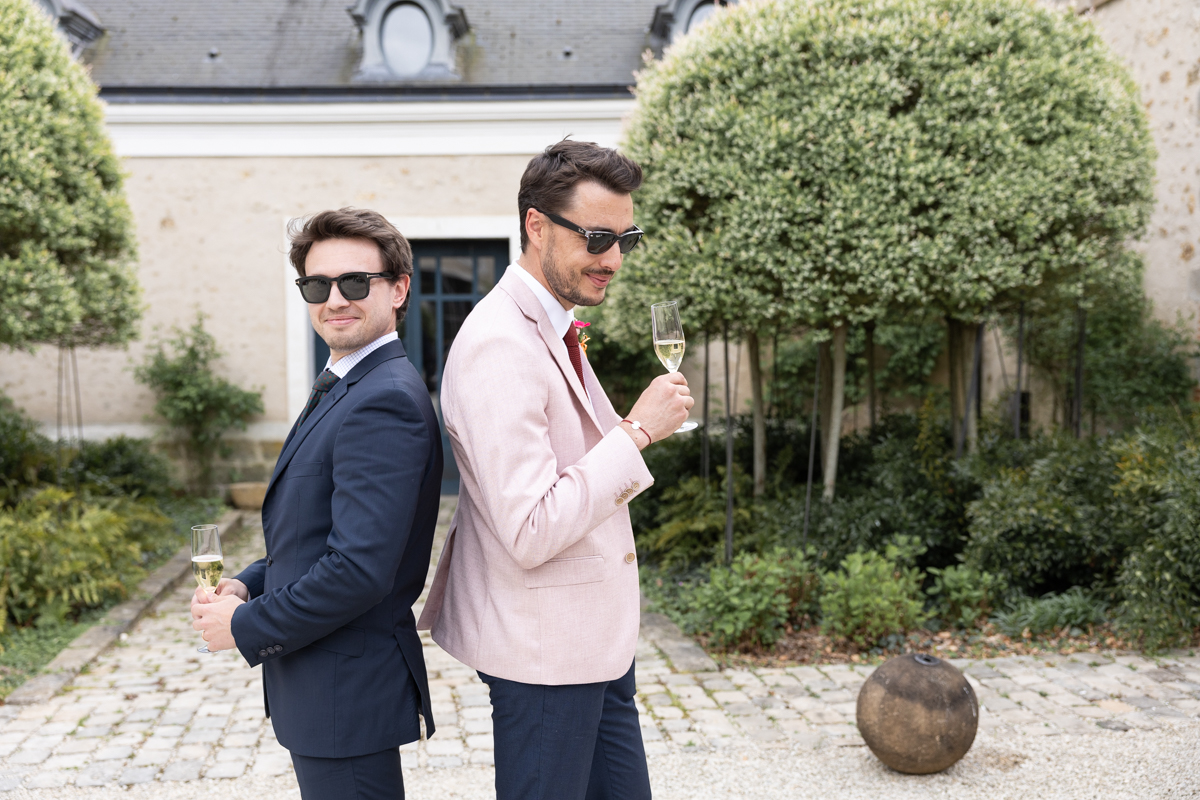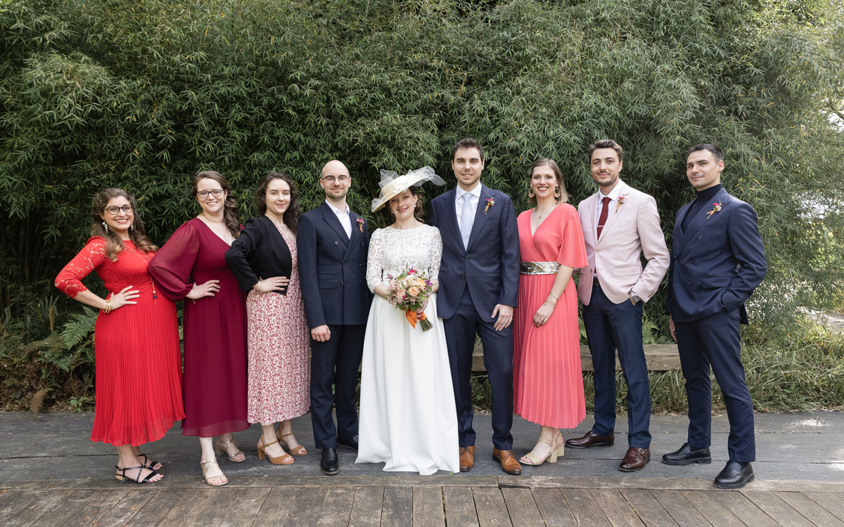 Robe et chapeau de mariée: Victoire – Chaussures : Jonak – Costume du marié : Chaussures : – Alliances et bague de fiançailles: Naravi – Fleurs: Le Fleuriste du Coin – Traiteur: Le Grand Chemin – Papeterie illustrée par Estelle B – DJ Marko – Lieu de réception: Domaine de Quincampoix (91)