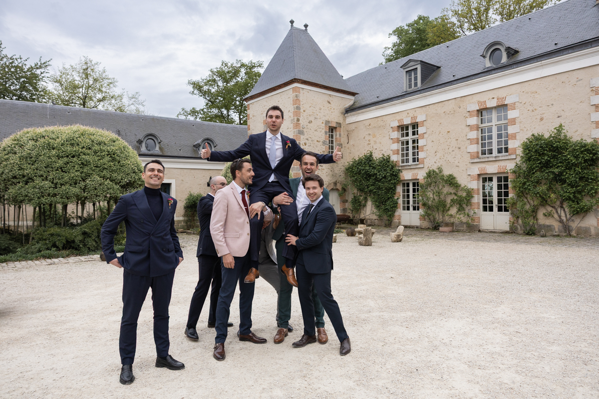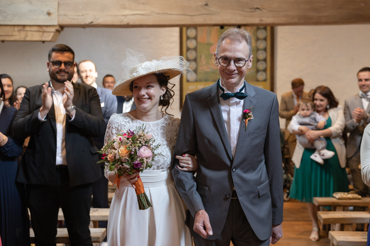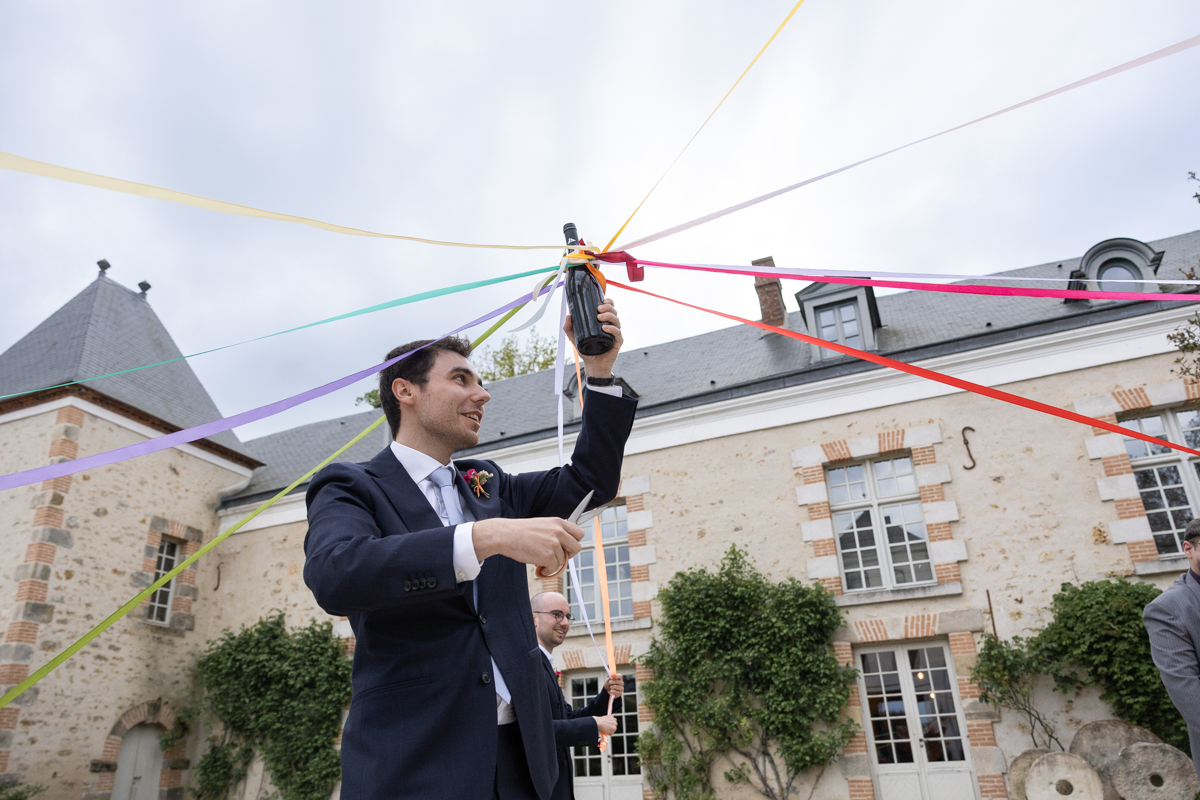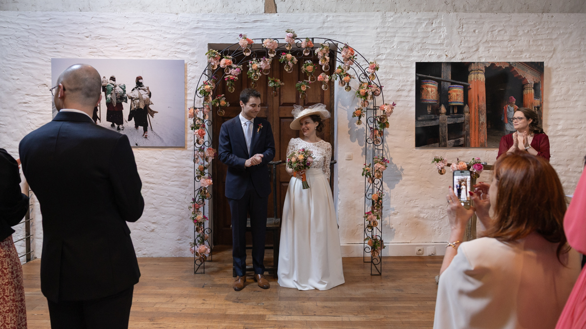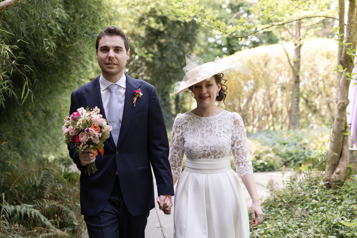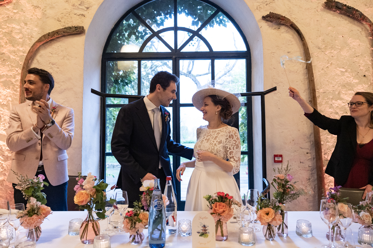 Robe et chapeau de mariée: Victoire – Chaussures : Jonak – Costume du marié : Chaussures : – Alliances et bague de fiançailles: Naravi – Fleurs: Le Fleuriste du Coin – Traiteur: Le Grand Chemin – Papeterie illustrée par Estelle B – DJ Marko – Lieu de réception: Domaine de Quincampoix (91)