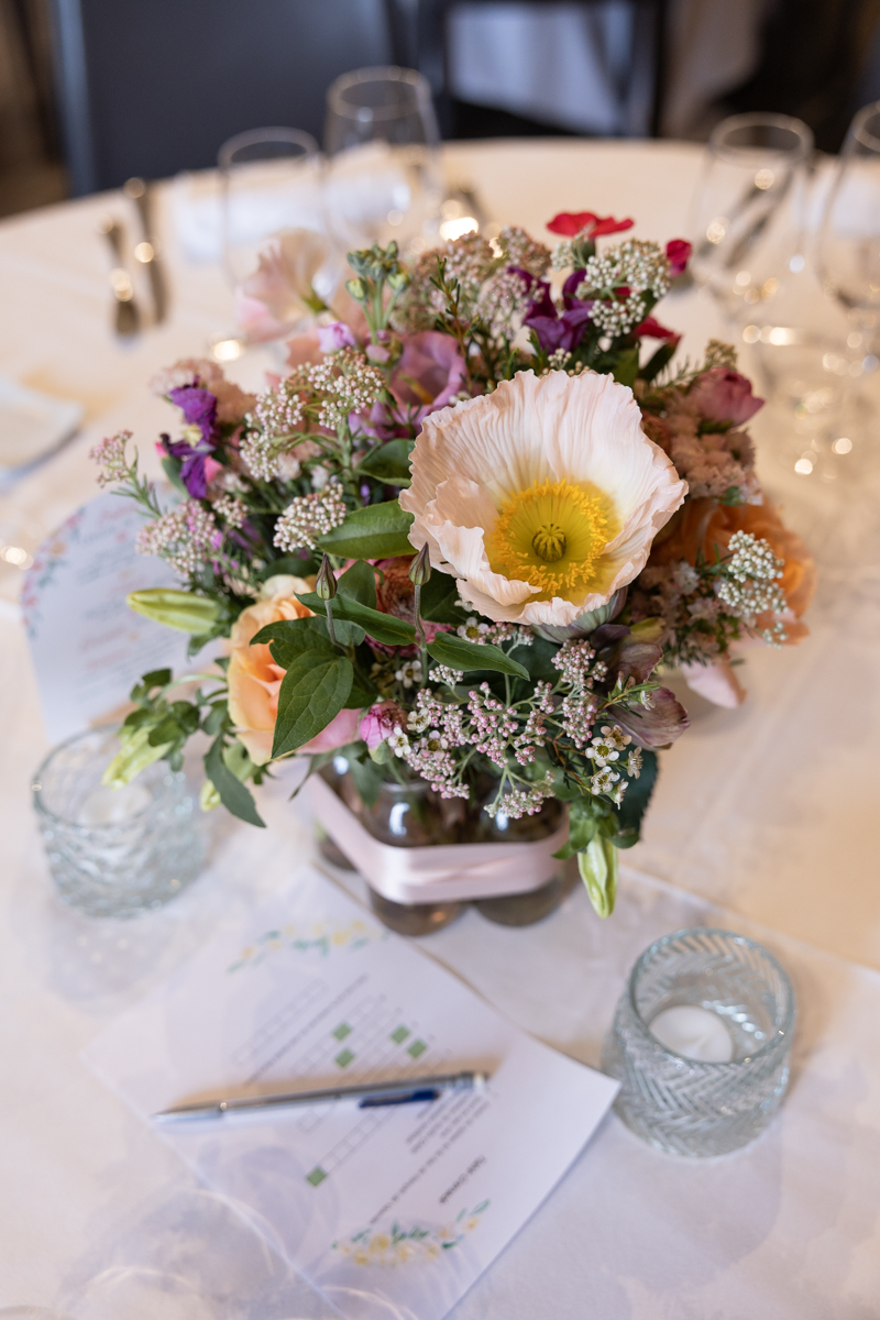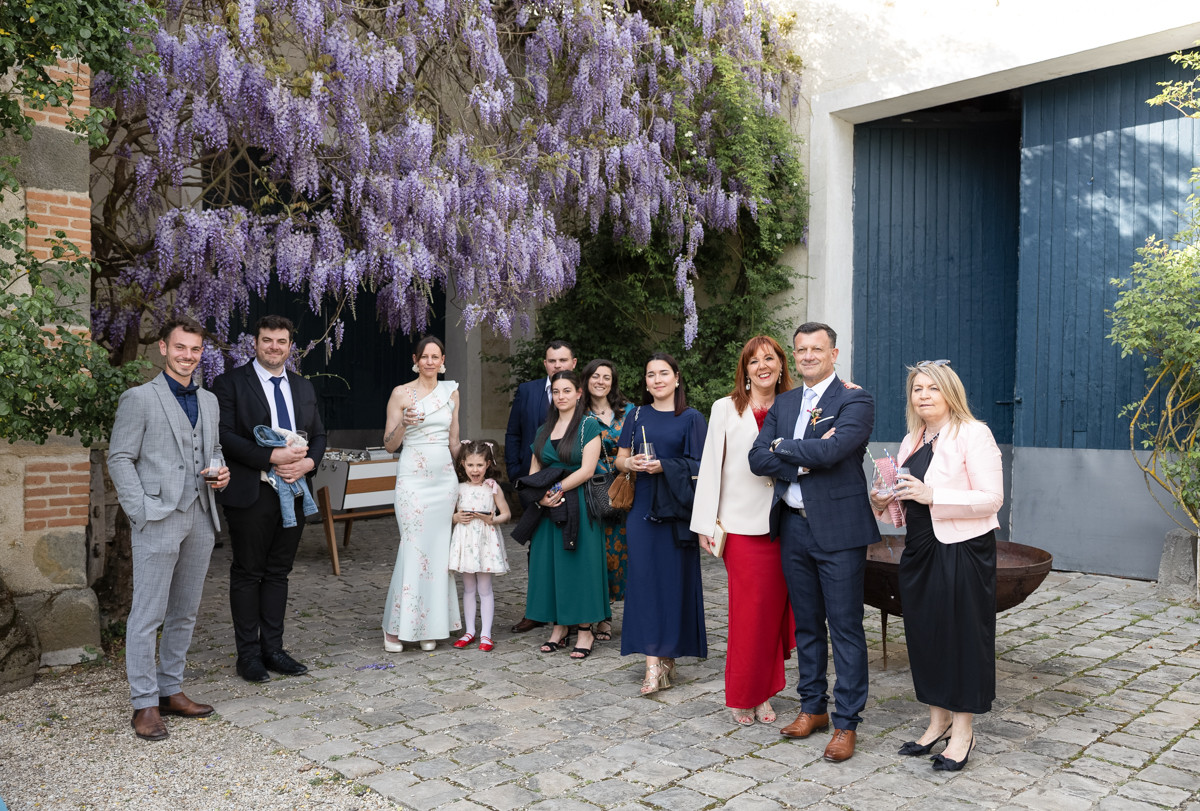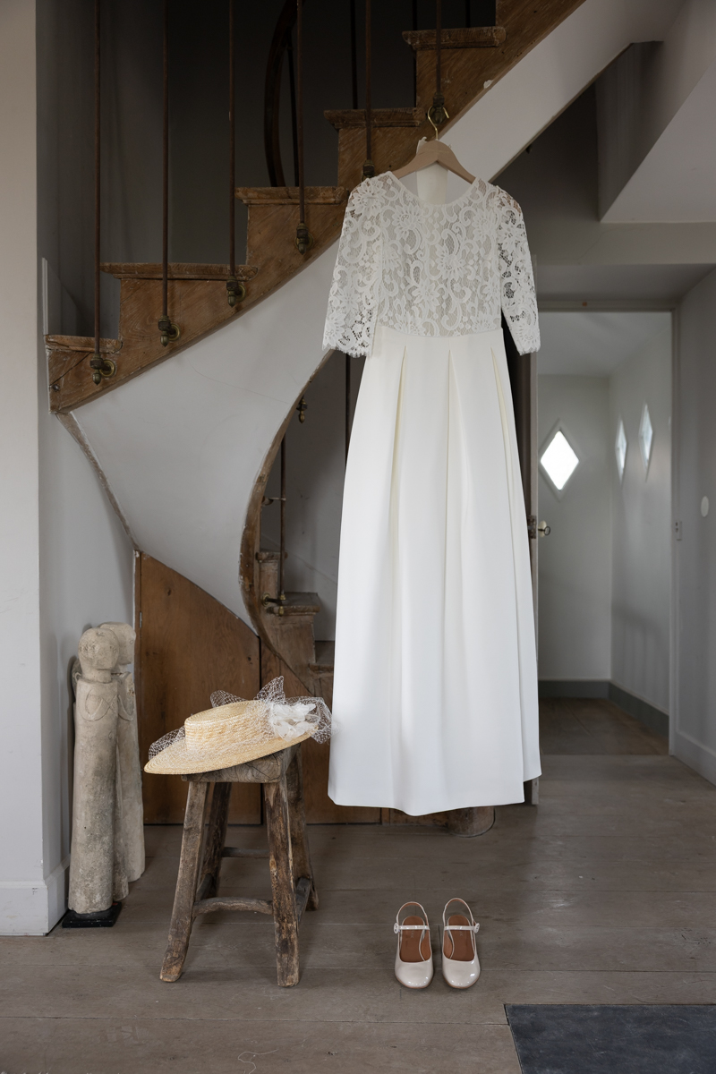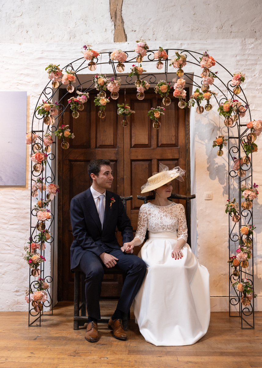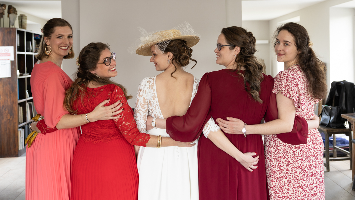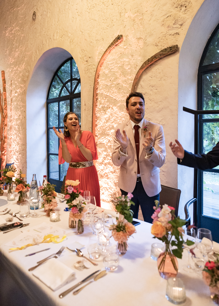 Robe et chapeau de mariée: Victoire – Chaussures : Jonak – Costume du marié : Chaussures : – Alliances et bague de fiançailles: Naravi – Fleurs: Le Fleuriste du Coin – Traiteur: Le Grand Chemin – Papeterie illustrée par Estelle B – DJ Marko – Lieu de réception: Domaine de Quincampoix (91)