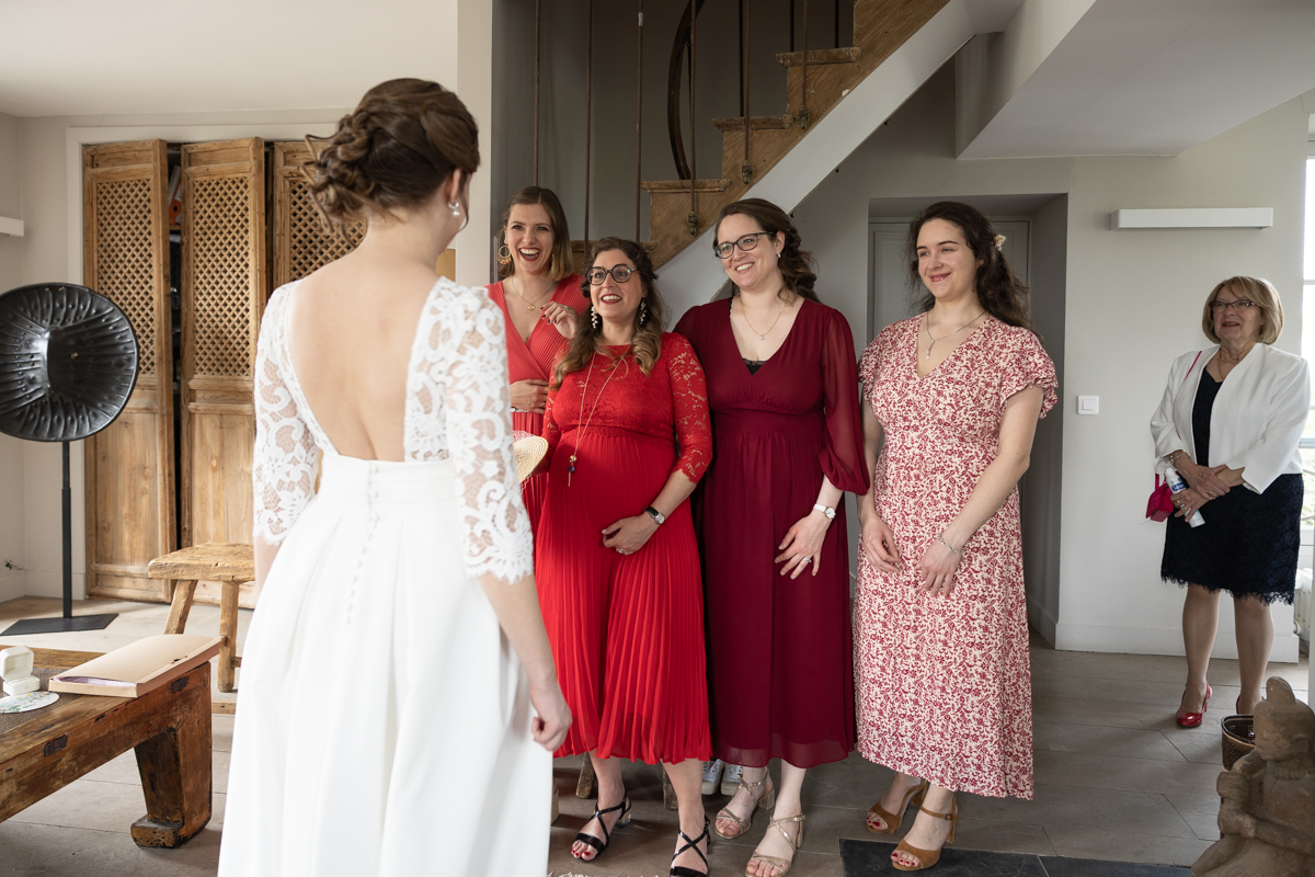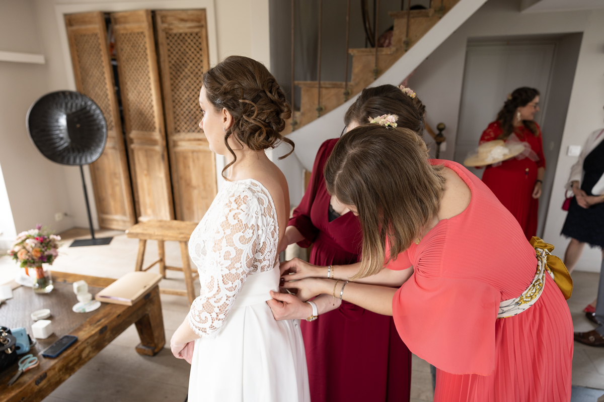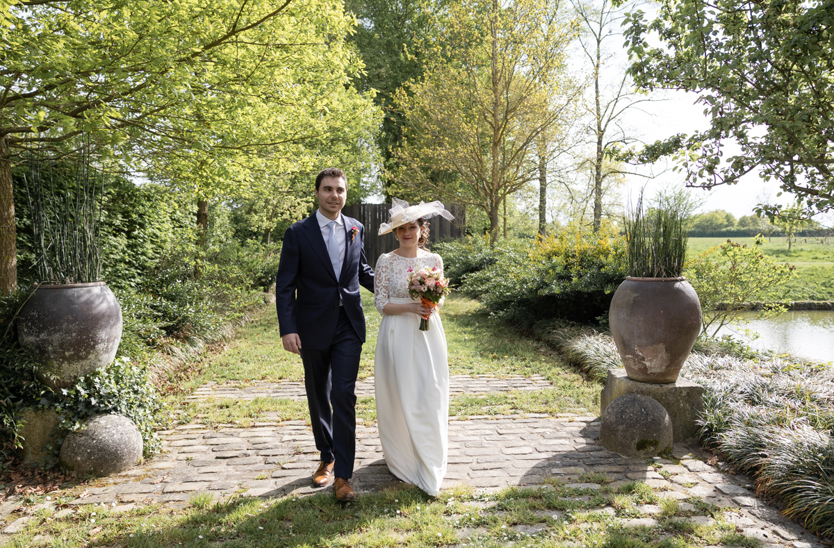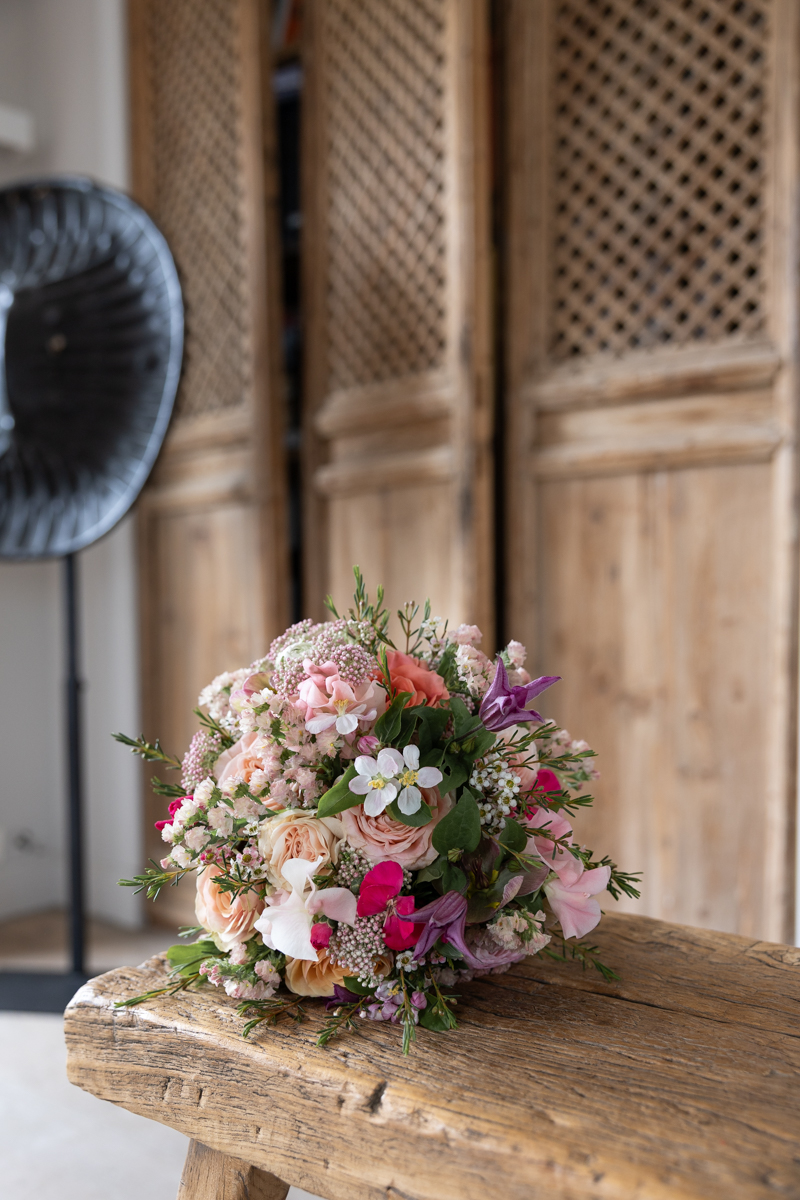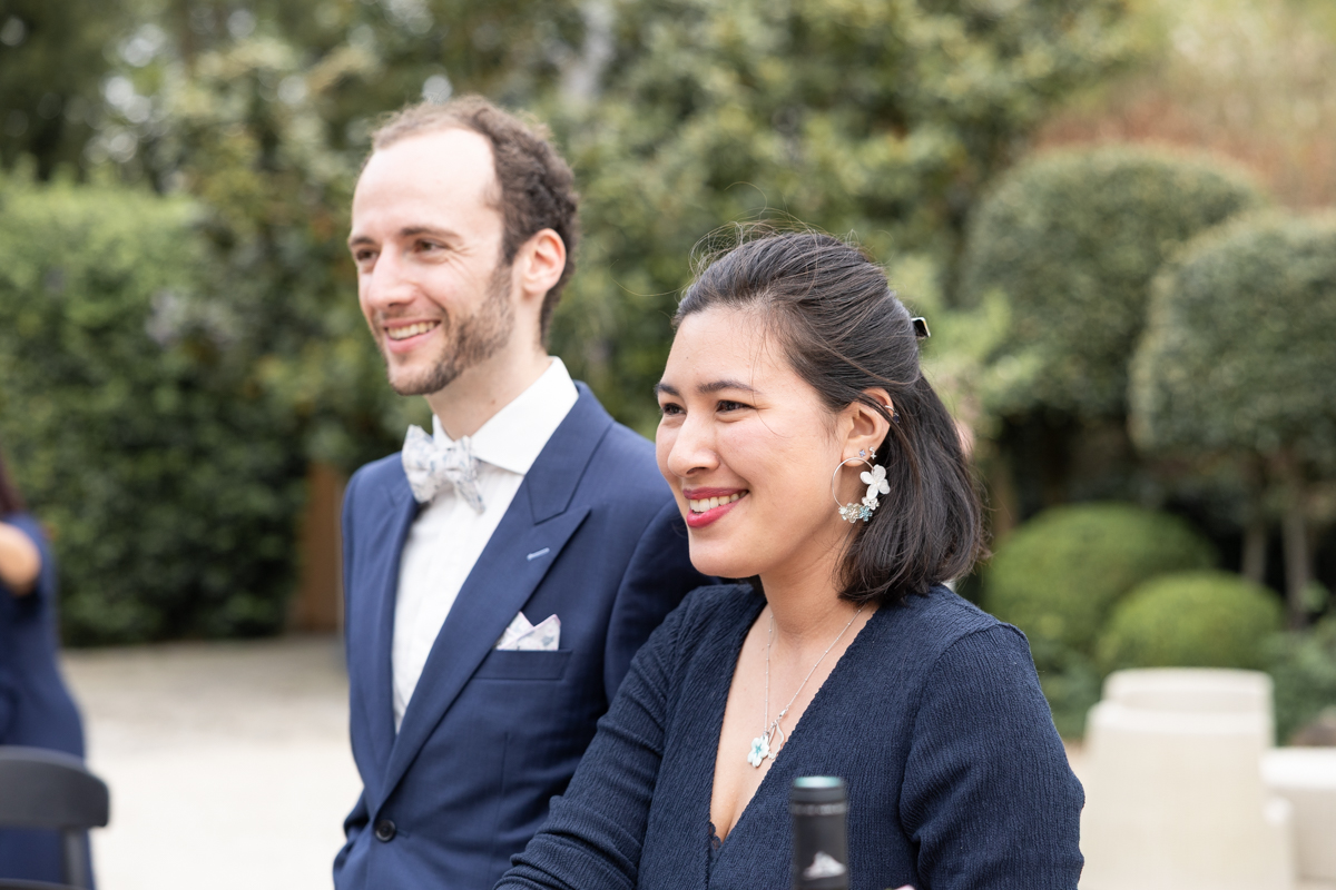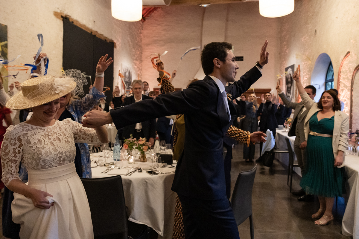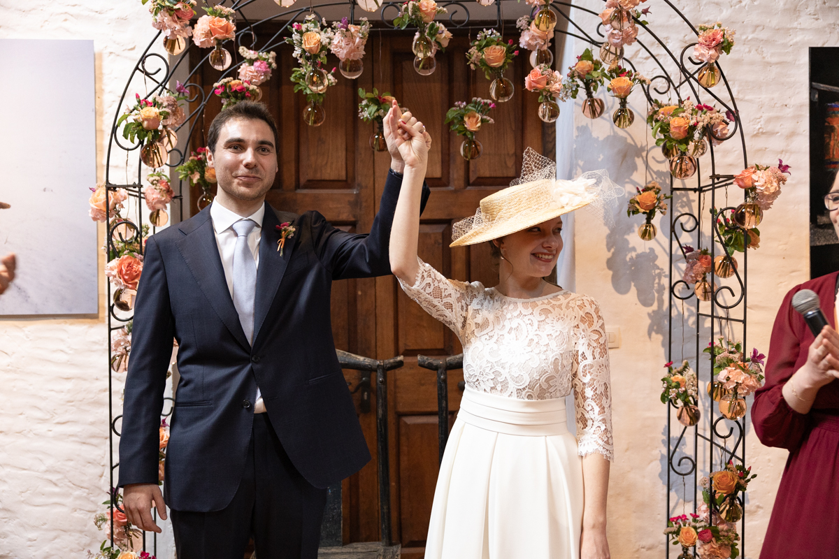 Robe et chapeau de mariée: Victoire – Chaussures : Jonak – Costume du marié : Chaussures : – Alliances et bague de fiançailles: Naravi – Fleurs: Le Fleuriste du Coin – Traiteur: Le Grand Chemin – Papeterie illustrée par Estelle B – DJ Marko – Lieu de réception: Domaine de Quincampoix (91)