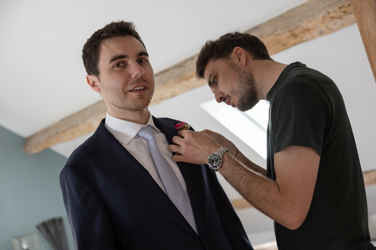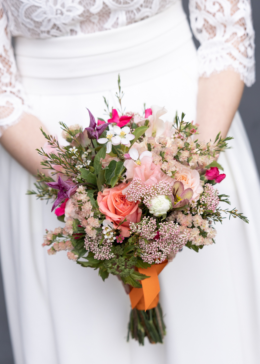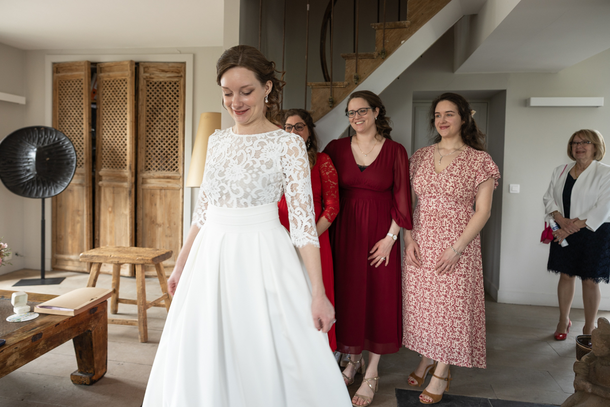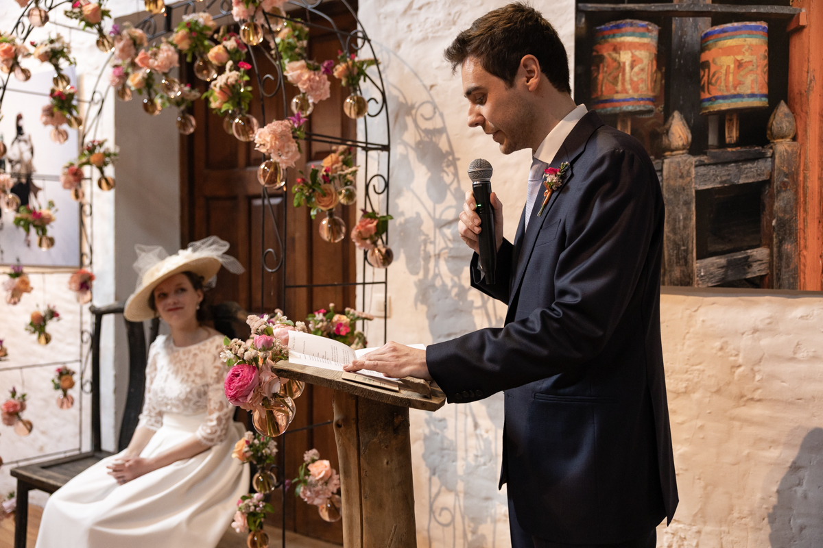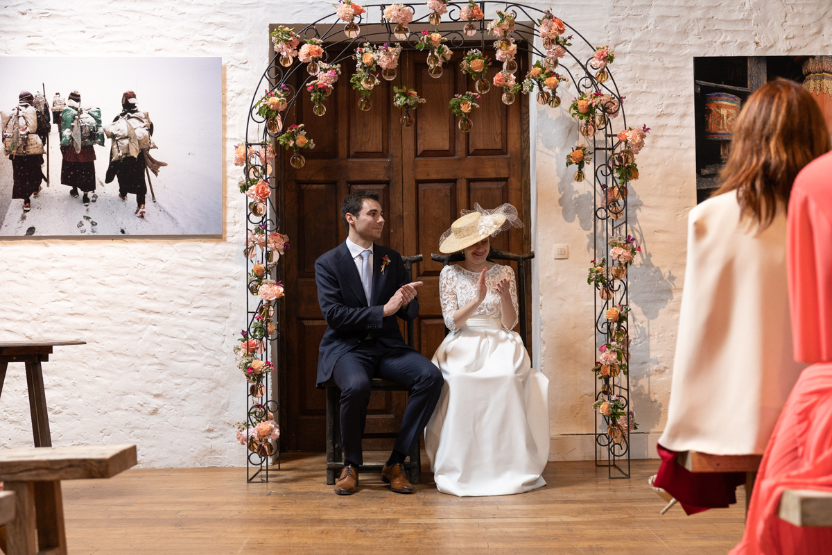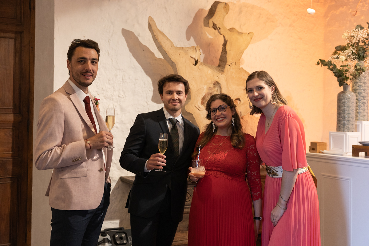 Robe et chapeau de mariée: Victoire – Chaussures : Jonak – Costume du marié : Chaussures : – Alliances et bague de fiançailles: Naravi – Fleurs: Le Fleuriste du Coin – Traiteur: Le Grand Chemin – Papeterie illustrée par Estelle B – DJ Marko – Lieu de réception: Domaine de Quincampoix (91)