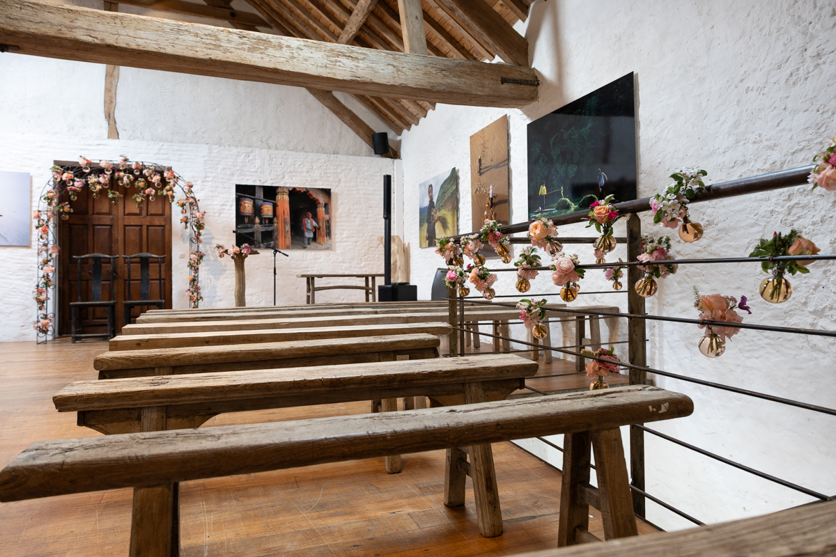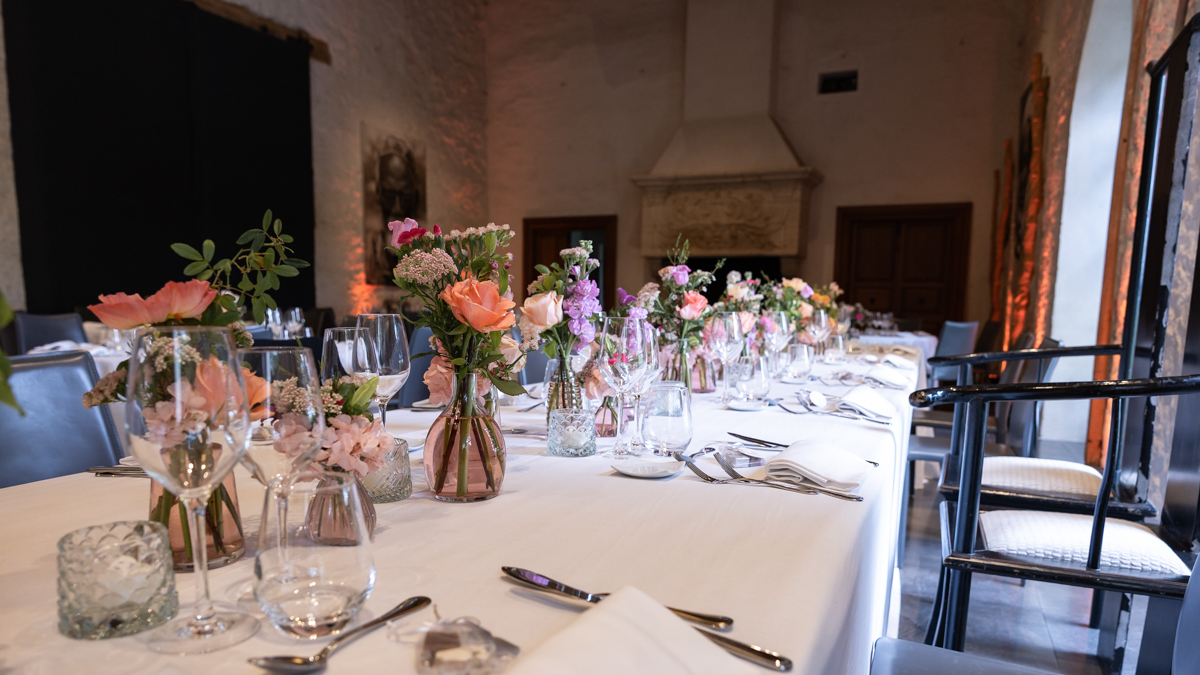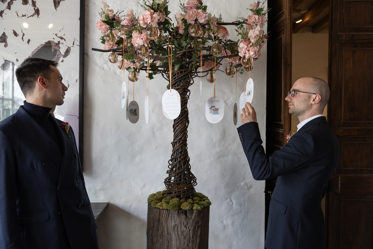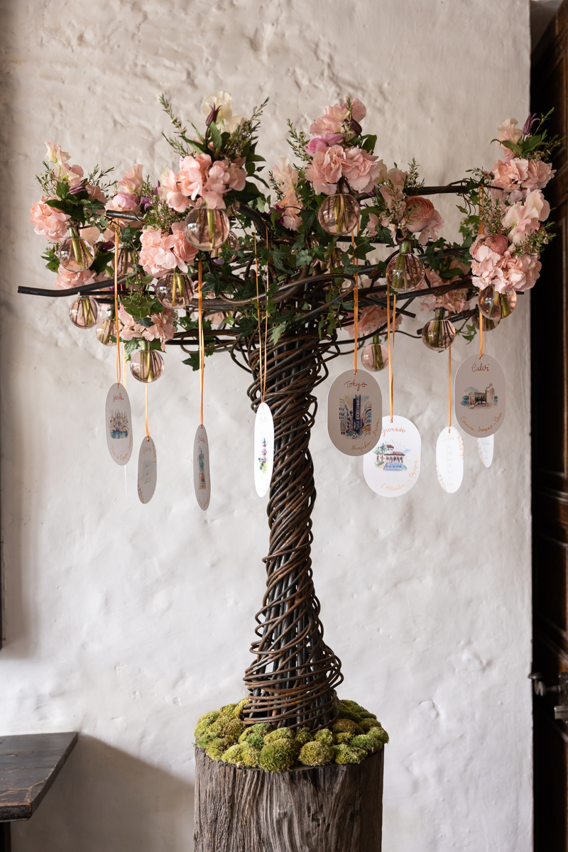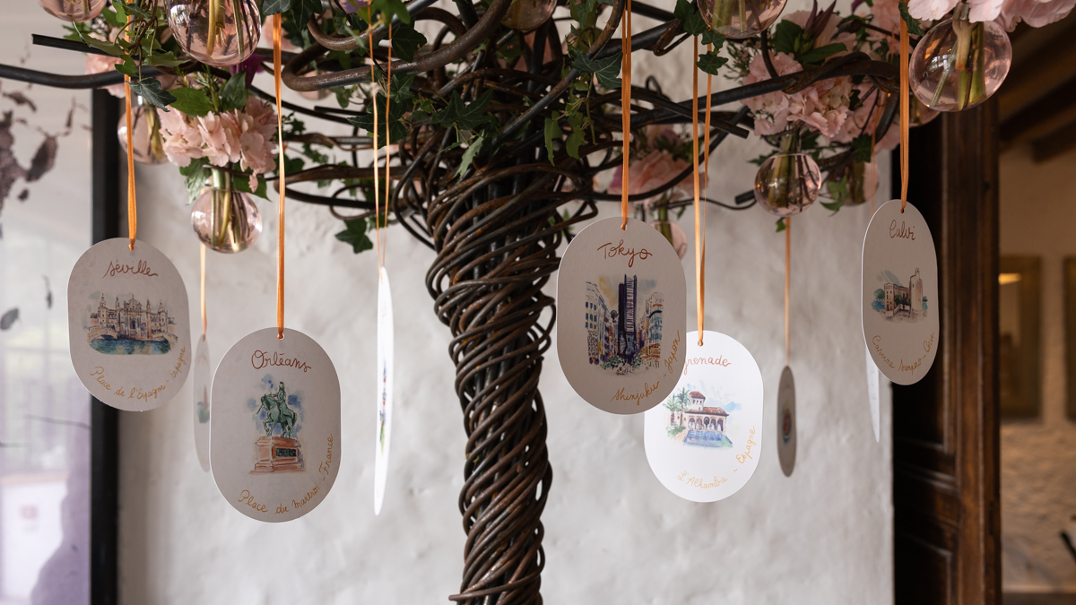 Plusieurs mois après leur mariage civil Astrid et Valentin retrouvaient leurs proches au Domaine de Quincampoix à l’occasion de leur cérémonie laïque, pour laquelle une amie avait dessiné les superbes nombreux motifs qui ornaient le plan des tables, le faire-part, l’affiche de bienvenue.