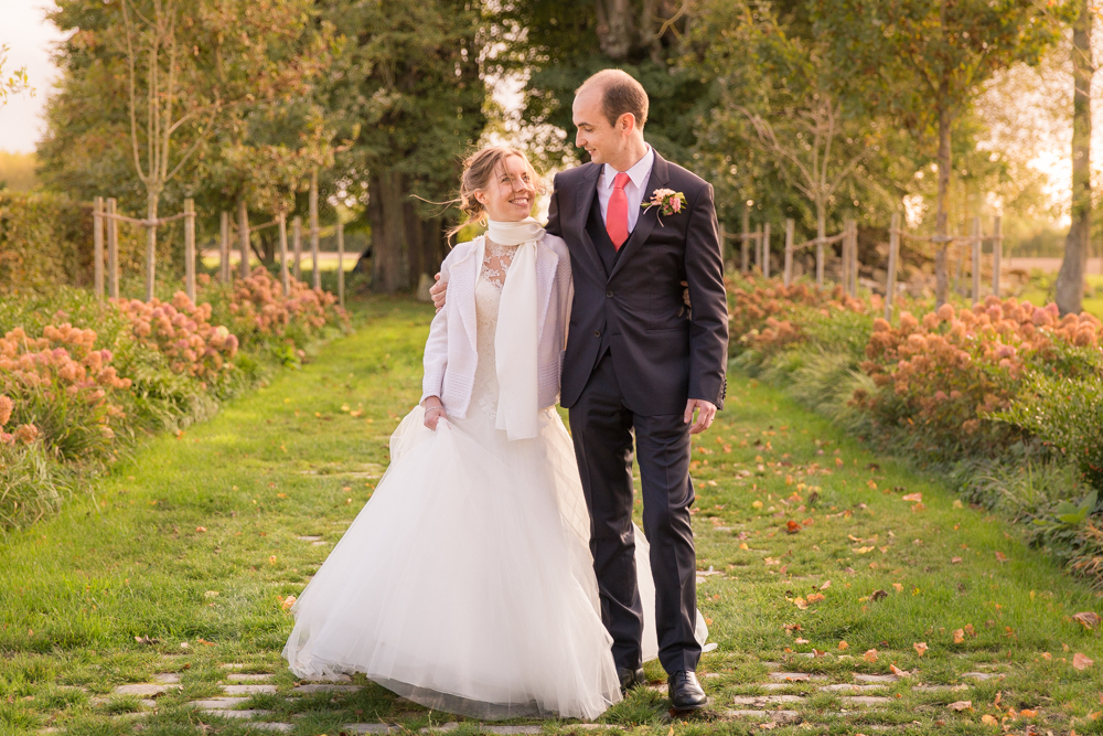 Pleuvera, pleuvera pas? Cette question nous a taraudés pendant la semaine – très ensoleillée – qui précédait le mariage de S & J… Au final il a plu le matin et entre la messe et le vin d’honneur, mais pas pendant! Un vent d’automne assez frais et fort avait chassé les nuages pour laisser la place à un soleil éclatant, et nous avons pu profiter d’une belle lumière dorée pour faire les photos d’extérieur.